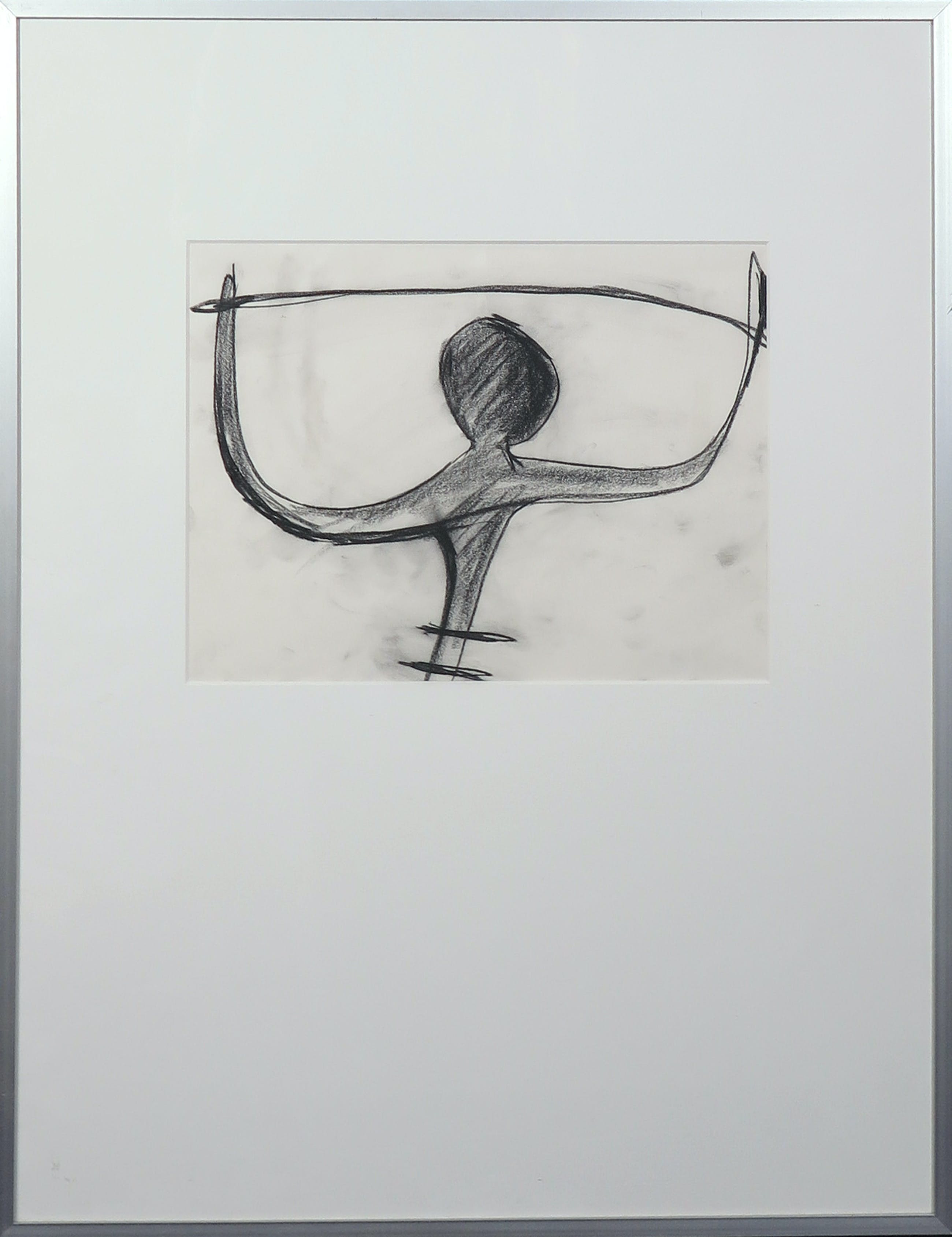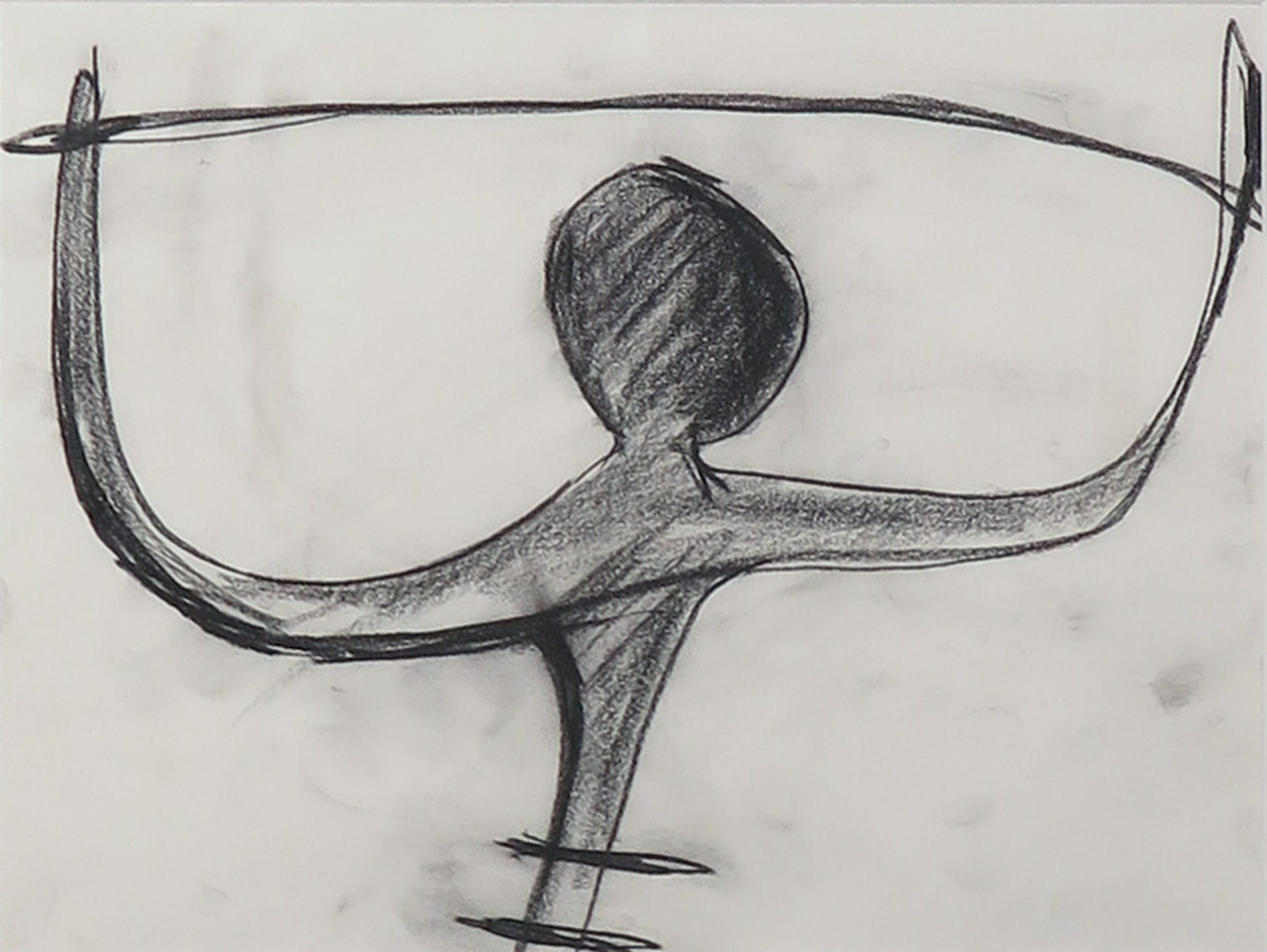 | Hier en daar lichte vlekken op het werk door wrijving van de houtskool. | |