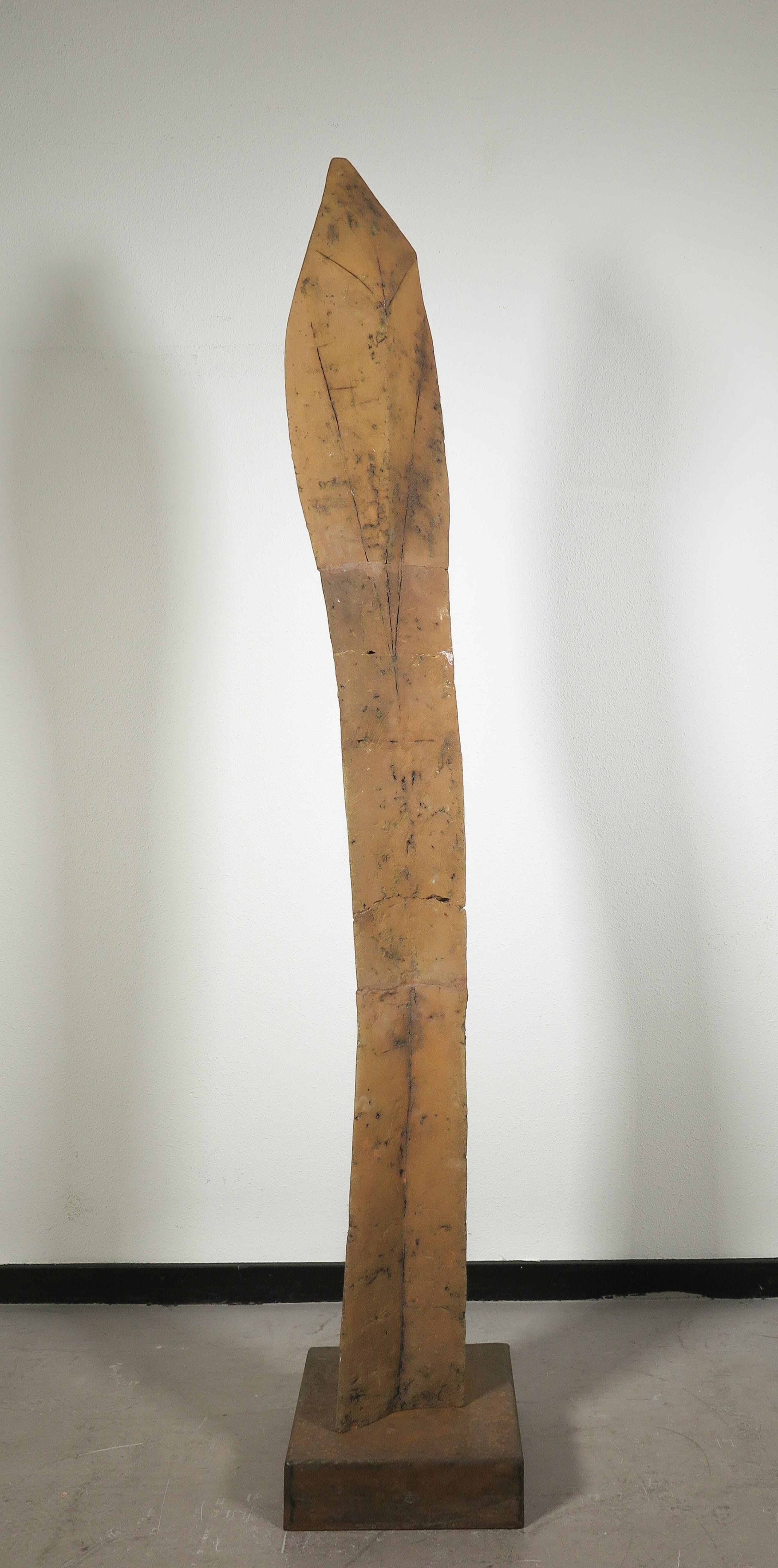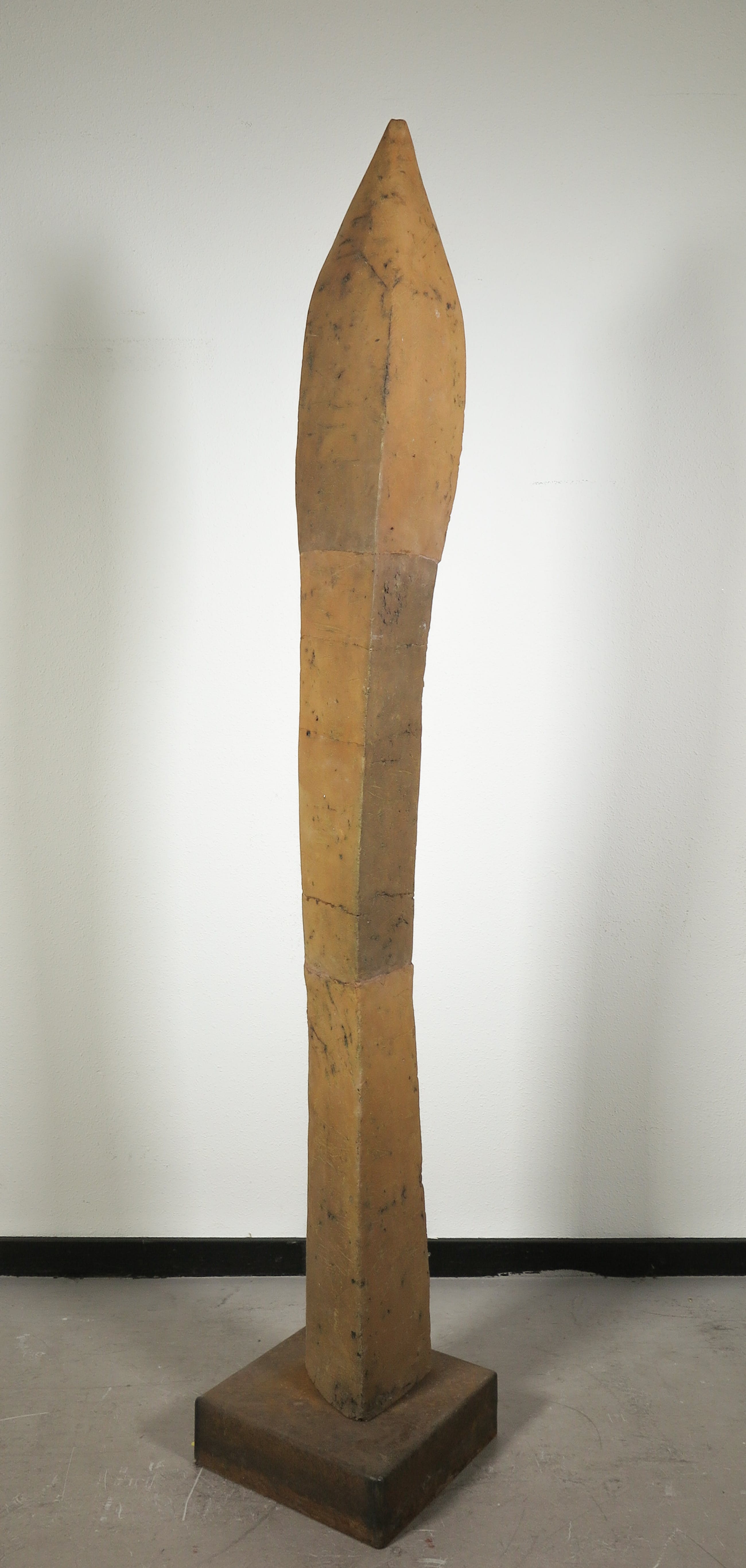 Het beeld zit niet vast aan de sokkel, maar staat op een pen.
