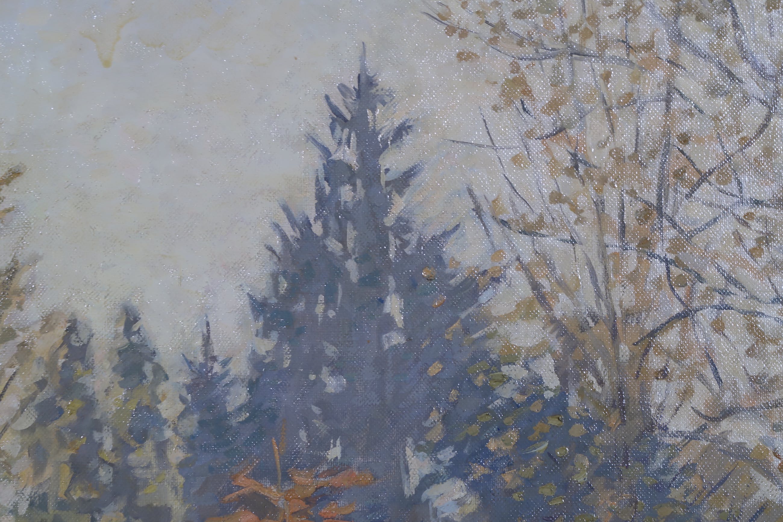 | licht vergeeld vernis. Doek zit niet stevig in de lijst | |
