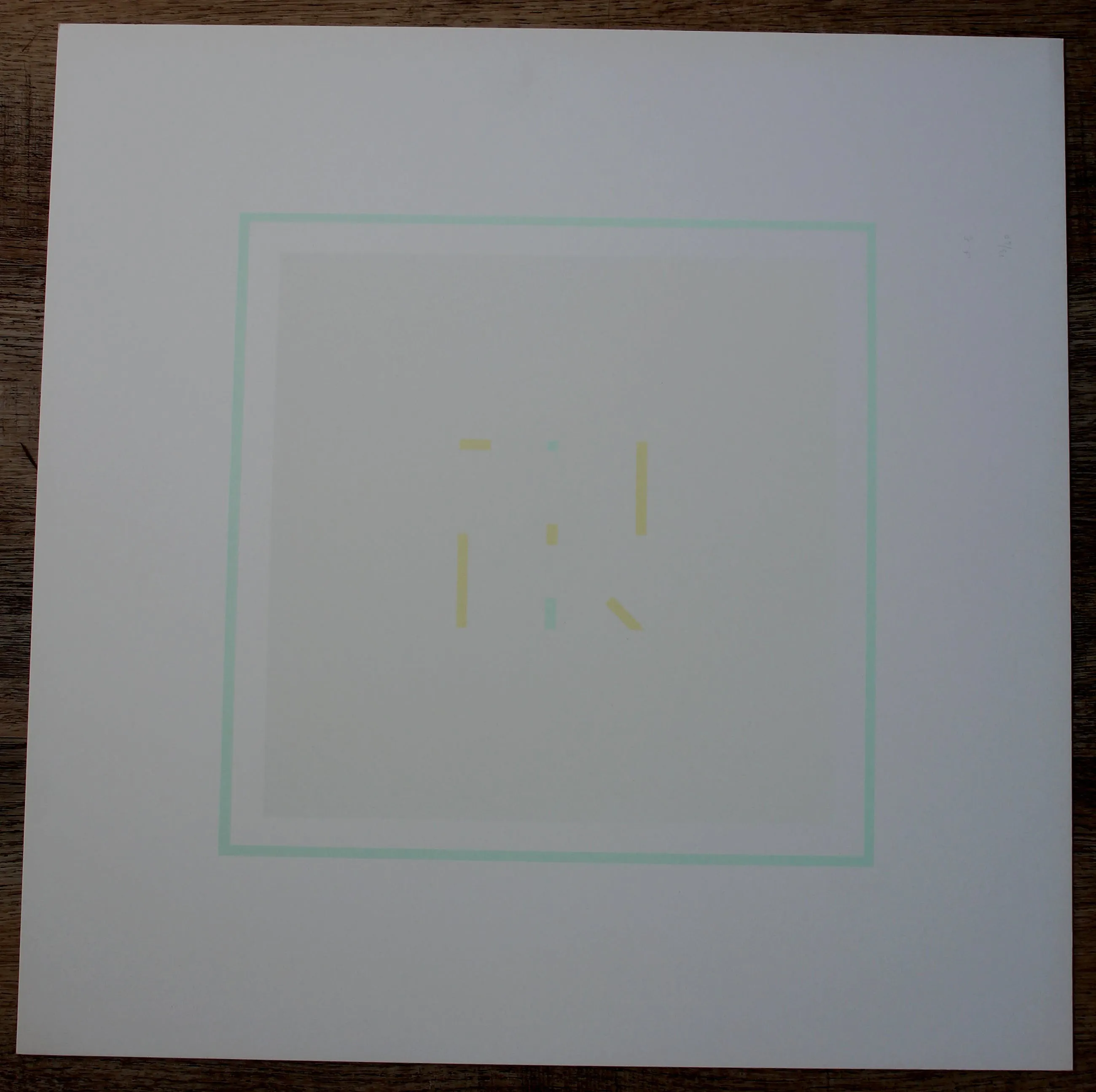 Subtiel werk van deze bekende Italiaanse kunstenaar. Zeefdruk uit de 18-delige serie "Tempo, Spazio, Luce" ("Tijd, Ruimte, Licht"). Oplagenummer: 13/40. Uitgave: Galerie Nouvelles Images, Den Haag. Jaar: 1975. Afmeting: H50 x b50 cm (blad); H31 x b31 cm (beeld).