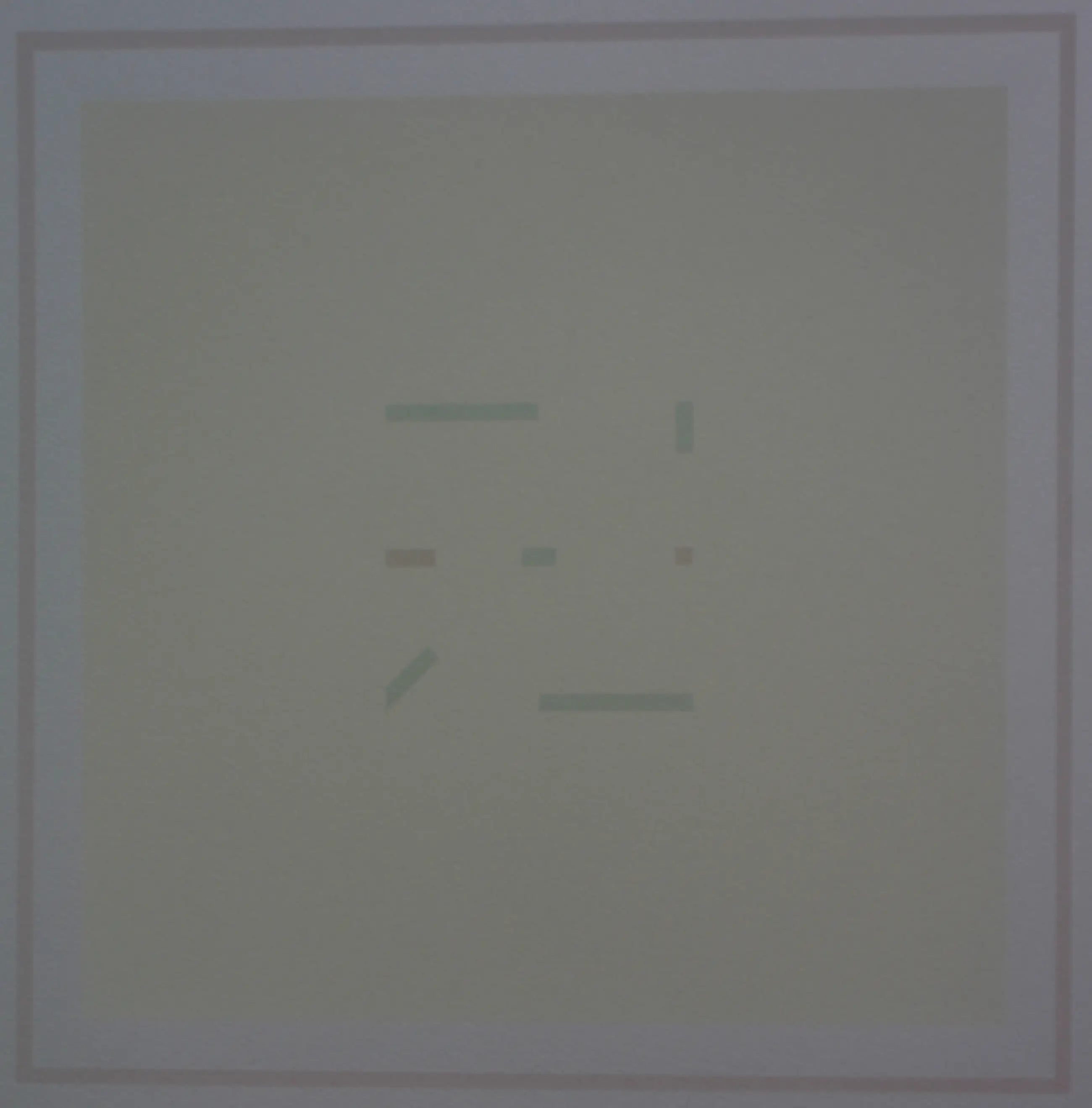 Kleurenzeefdruk van Antonio Calderara, en een Nederlandse introductie door Rudi Fuchs. Titel: Tempo Spazio Luce. Jaar: Uitgeven in 1975 door Galerie nouvelles. Oplage: 8/40. Afmetingen blad: H50 x b50cm. Afmetingen voorstelling: H32 x b31cm. Het werk is met potlood gesigneerd in initialen door de kunstenaar. De authenticiteit van het aangeboden werk wordt volledig gegarandeerd. Een certificaat van echtheid kan, op aanvraag, worden gemaild. Herkomst: Galerie Nouvelles Images, Den Haag.