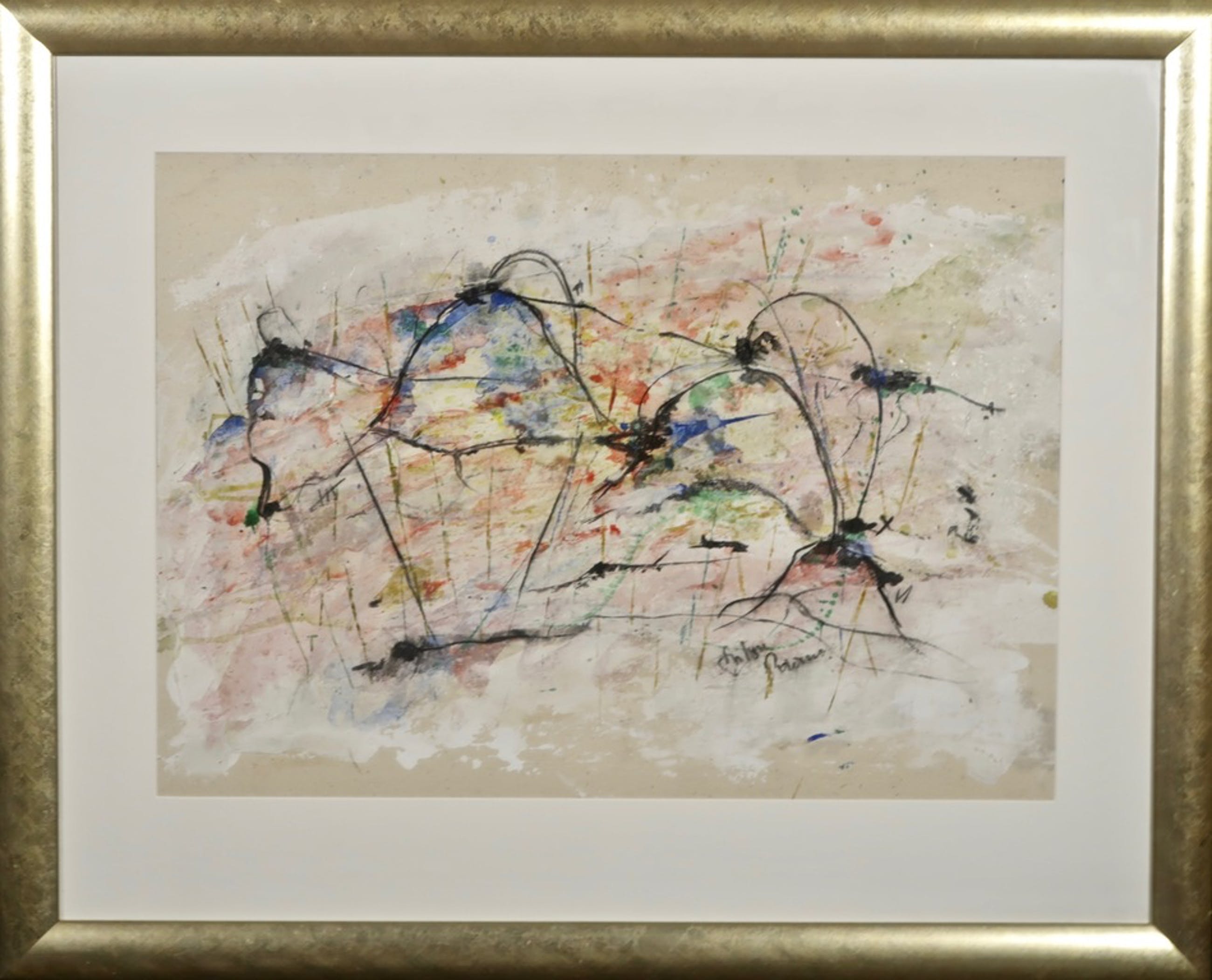 Materiaal: Gemengde techniek op papier, o.a. acryl, krijt, aquarel op handgeschept papier