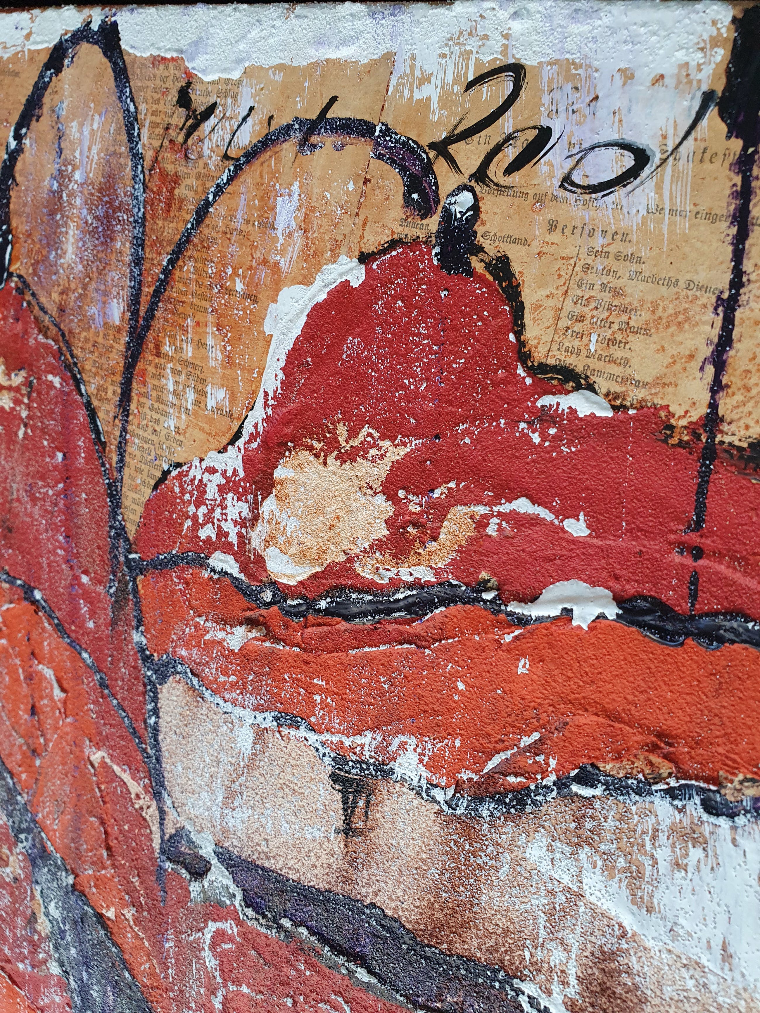 Schilderij van Antonio Poioumen met de titel: 'Pure Red'. Het werk is rechtsonder met de hand gesigneerd door de kunstenaar.