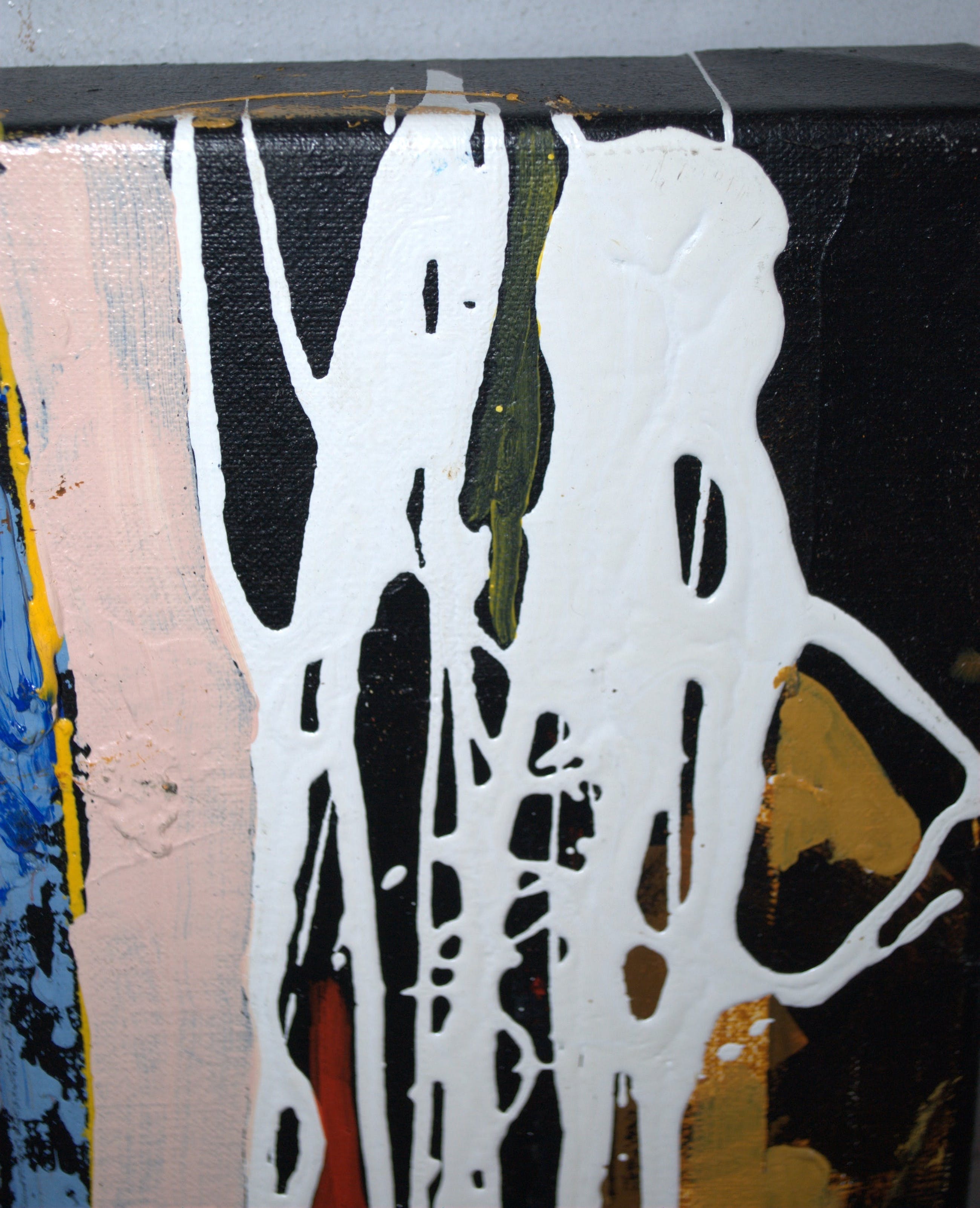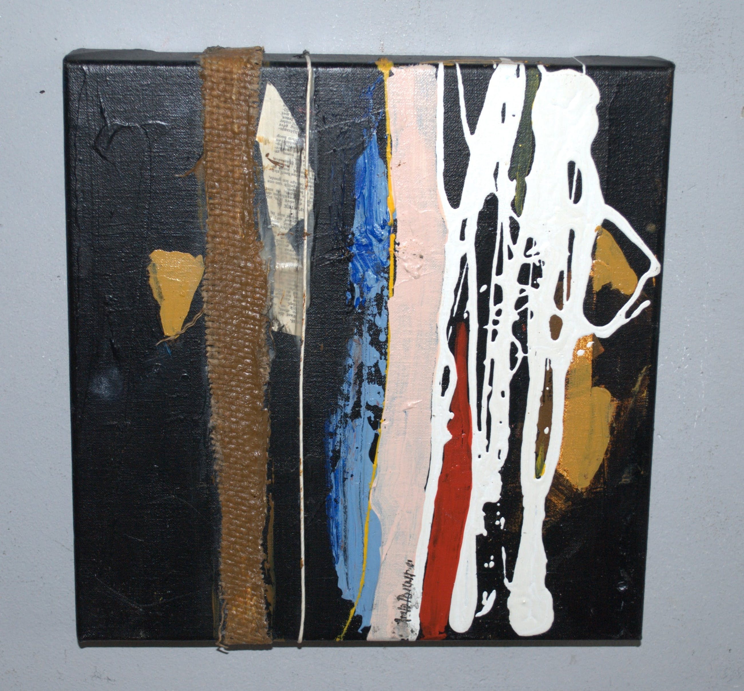 Acrylverf met stof en papier op linnen op een hoge kwaliteit houten/aluminium spieraam.