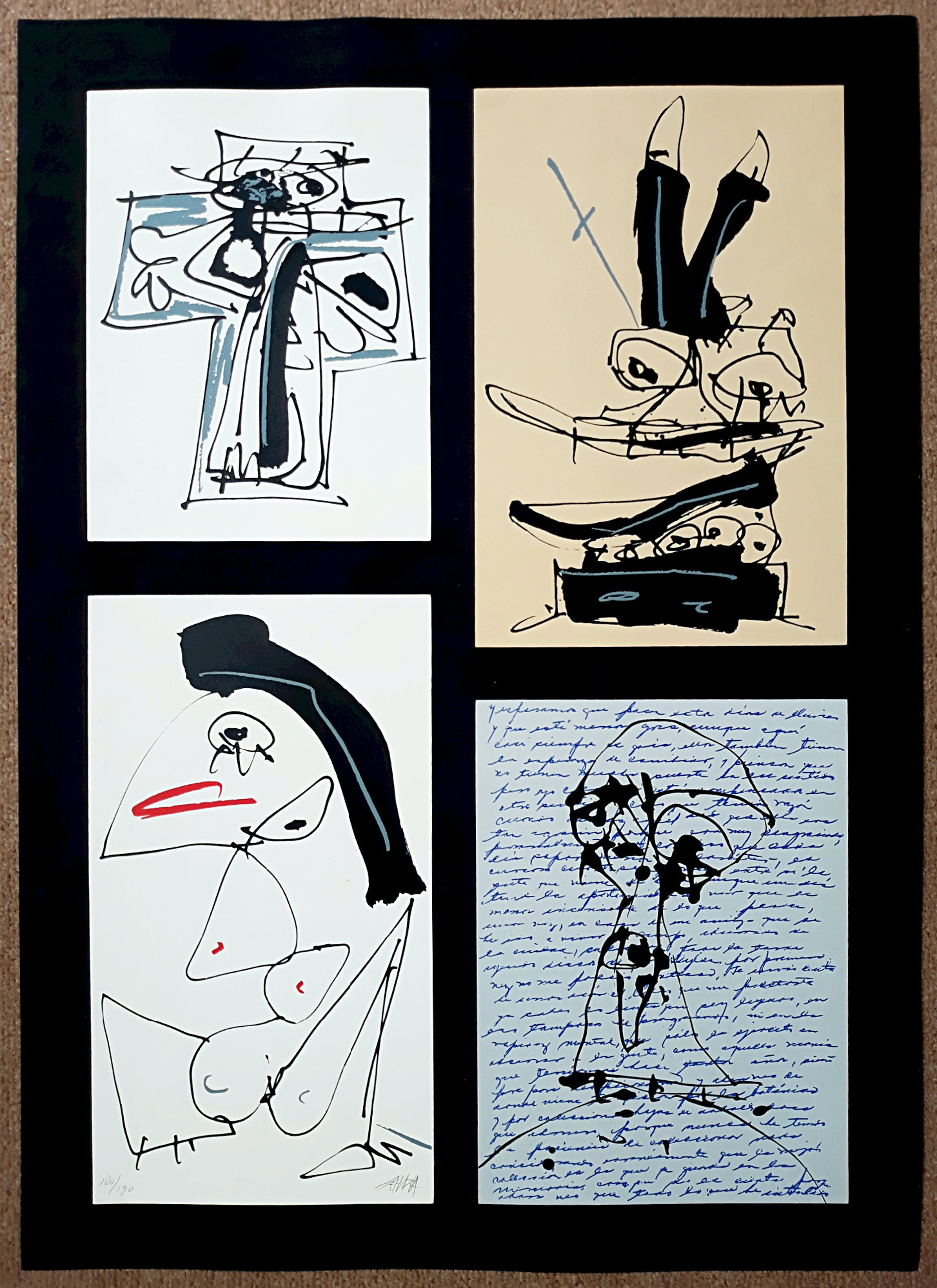 Karakteristiek en bekend werk van de Spaanse kunstenaar Antonio Saura. Dit is een van de werken uit de Triptico de Amsterdam die Saura in 1975 voor Print 190 maakte. Zeefdruk op papier, gesigneerd en genummerd in potlood (180/190). In zeer goede staat. Dit werk is te vinden in Saura's oeuvrecatalogus onder nummer 196.
