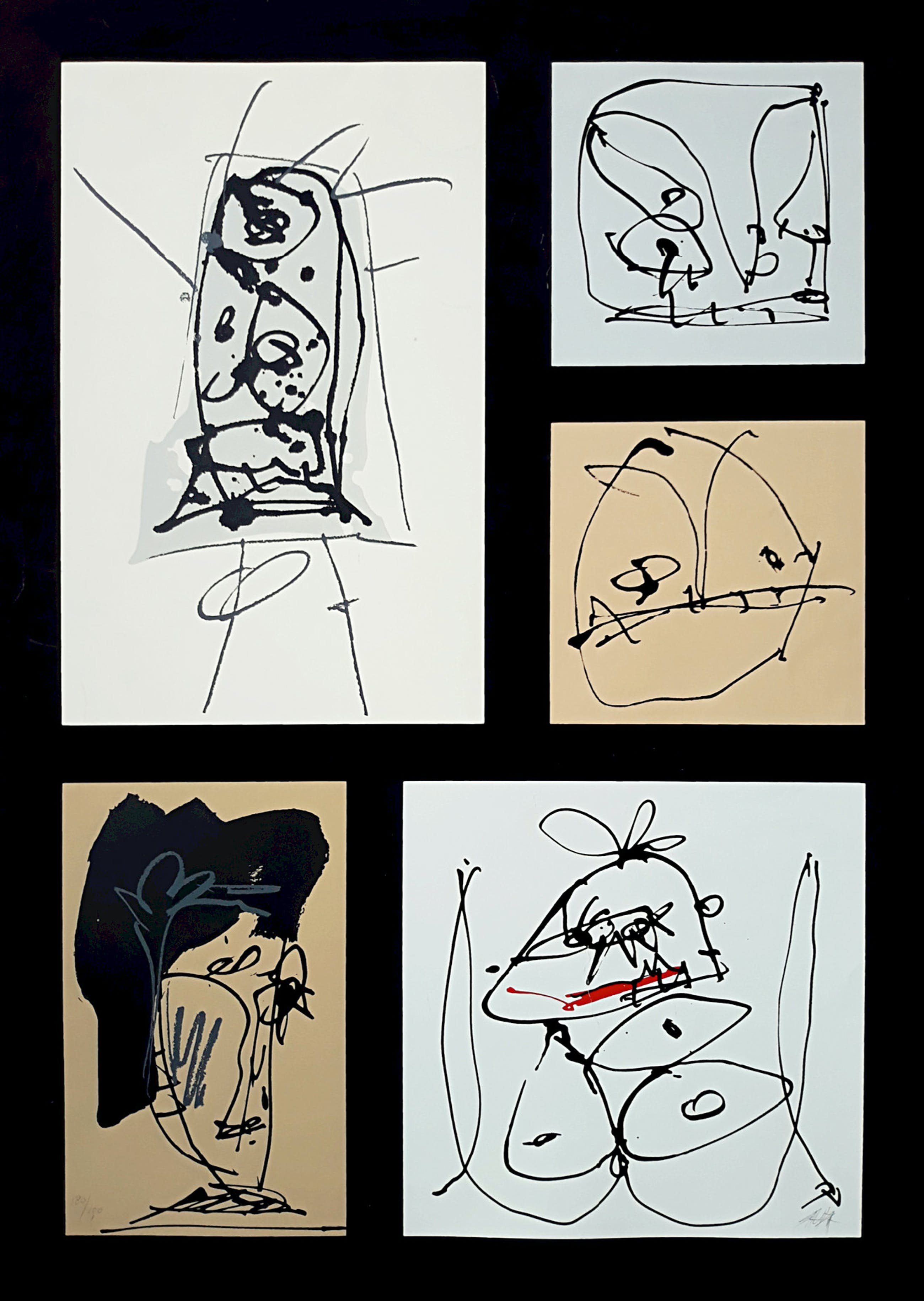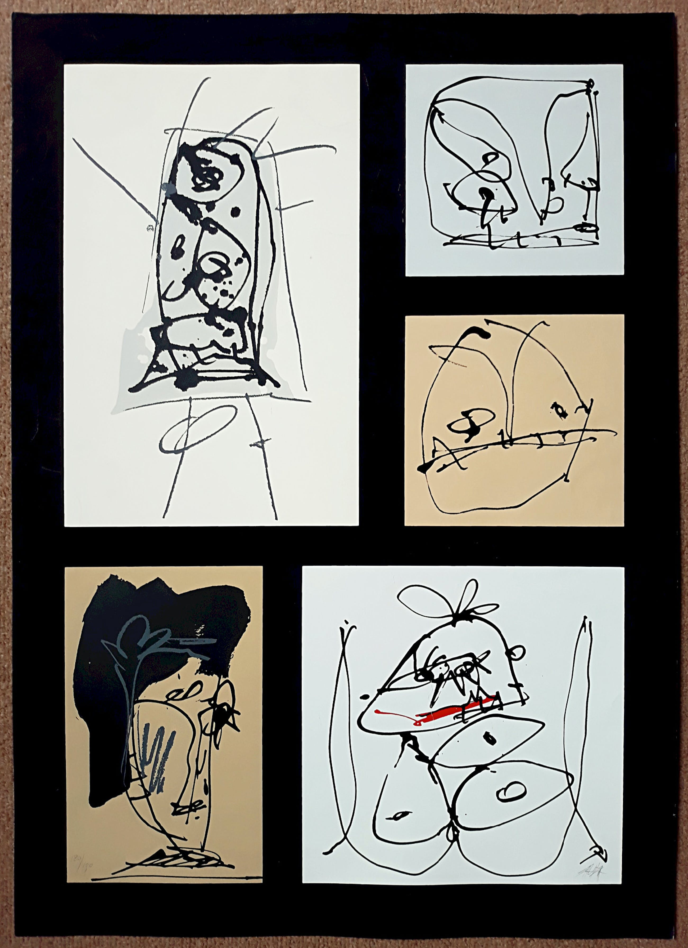 Karakteristiek en bekend werk van de Spaanse kunstenaar Antonio Saura. Dit is één van de werken uit de Triptico de Amsterdam die Saura in 1975 voor Prent 190 maakte. Zeefdruk op papier, met potlood gesigneerd en genummerd (180/190). In goede conditie; er zit een vijf- tot tiental kreukjes in het blad, de meeste geprononceerde zit in het beeld rechtsonder (zie foto). Daarom een lagere openingsprijs voor deze zeefdruk.