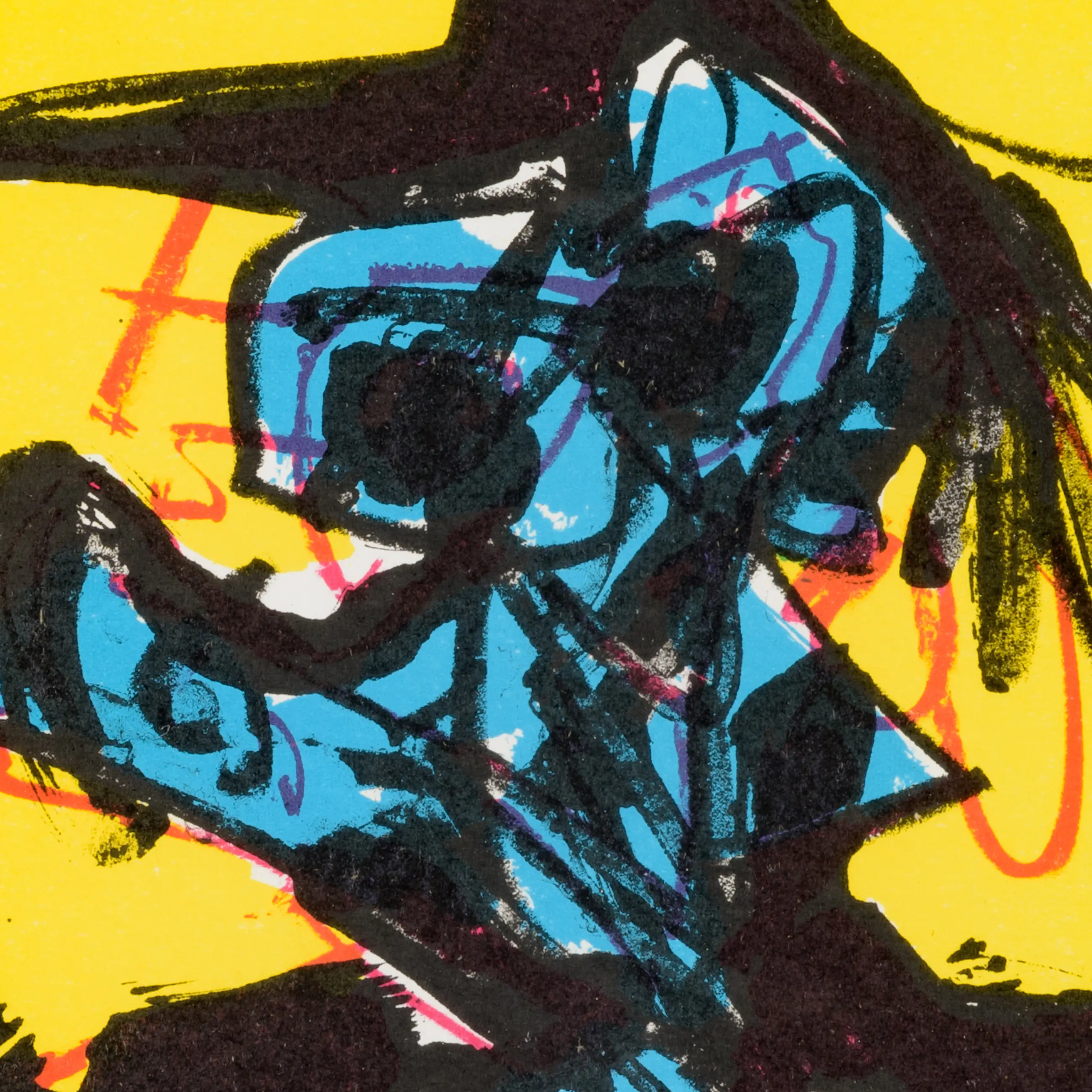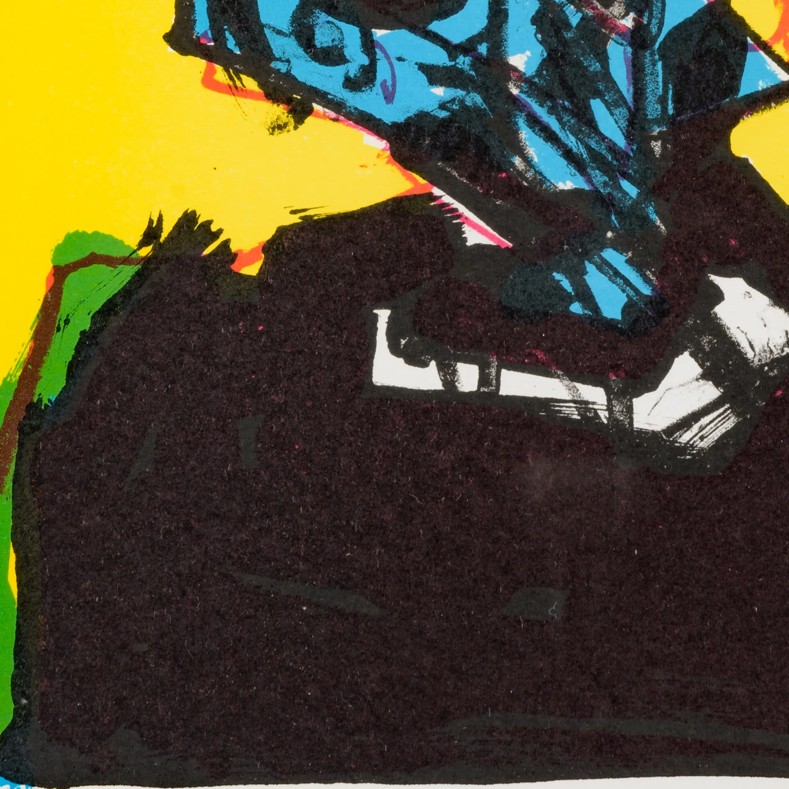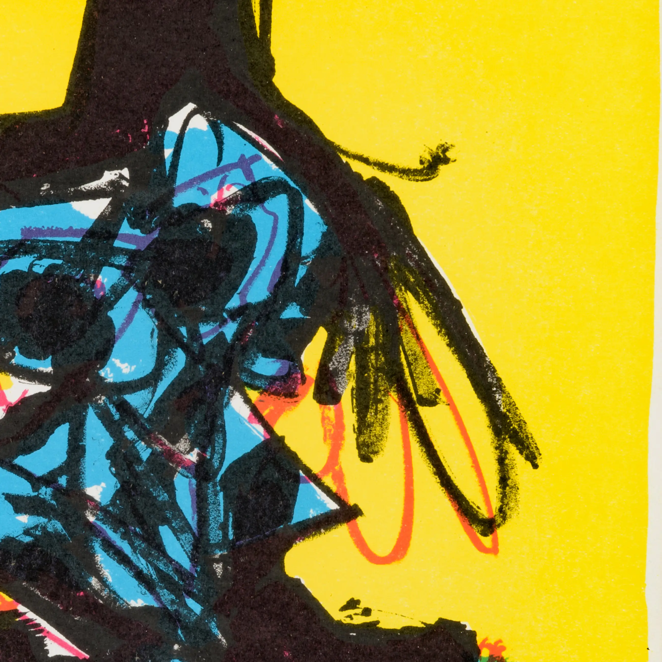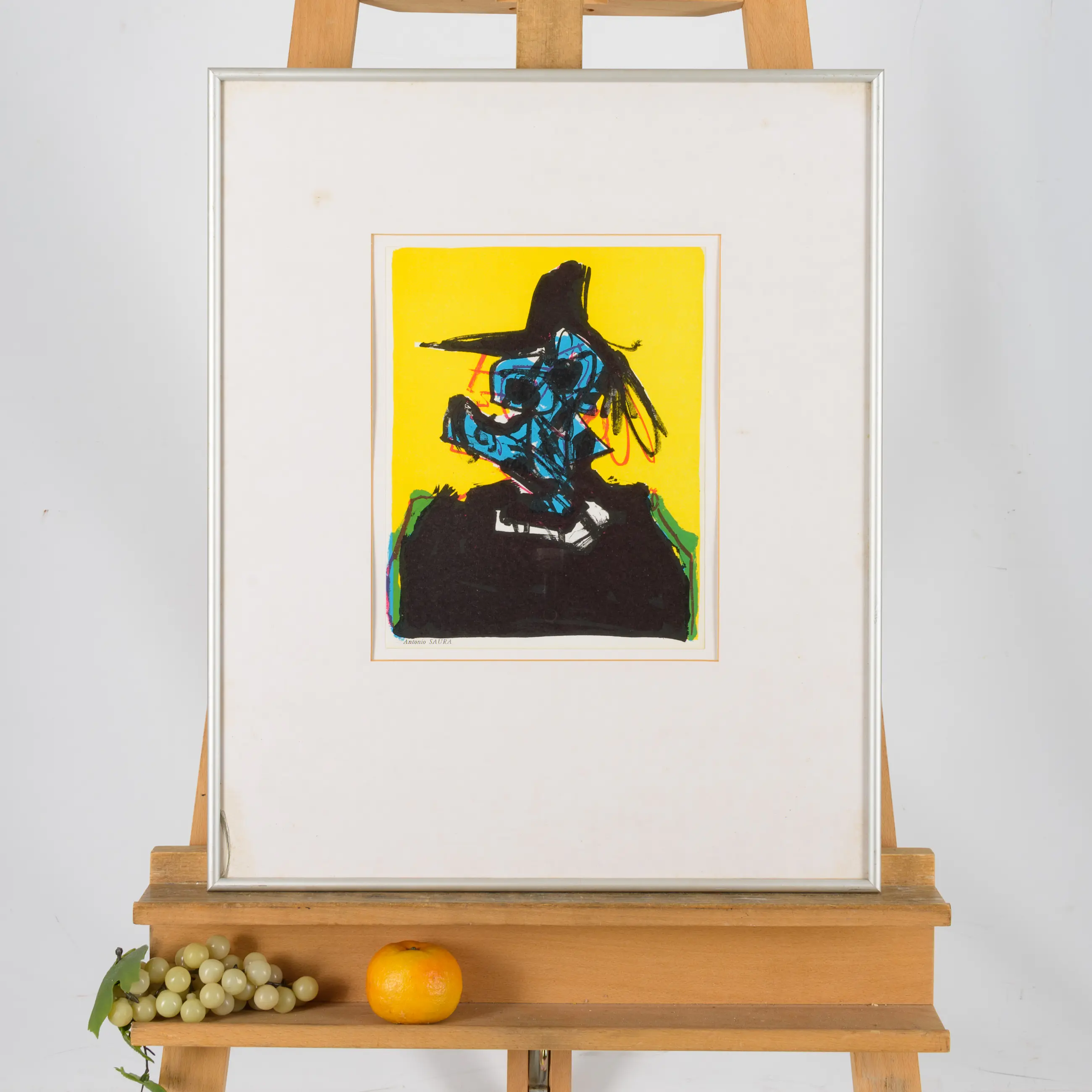 Dit betreft een lithografie van Antonio Saura (Huesca, 22 september 1930 – Cuenca, 22 juli 1998). Saura was een Spaans kunstschilder, graficus en auteur en geldt als een van de belangrijkste Spaanse kunstenaars van de generatie na de Tweede Wereldoorlog. Met zijn publicaties oefende hij grote invloed uit op zowel zijn eigen generatie als op latere kunstenaars. Daarnaast was hij de broer van de filmregisseur Carlos Saura.