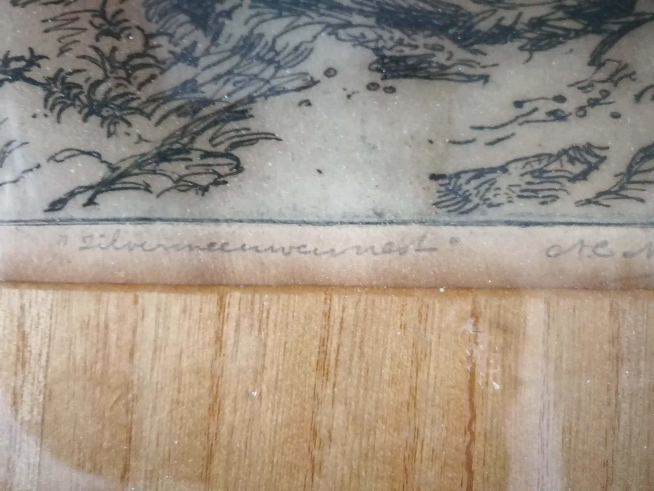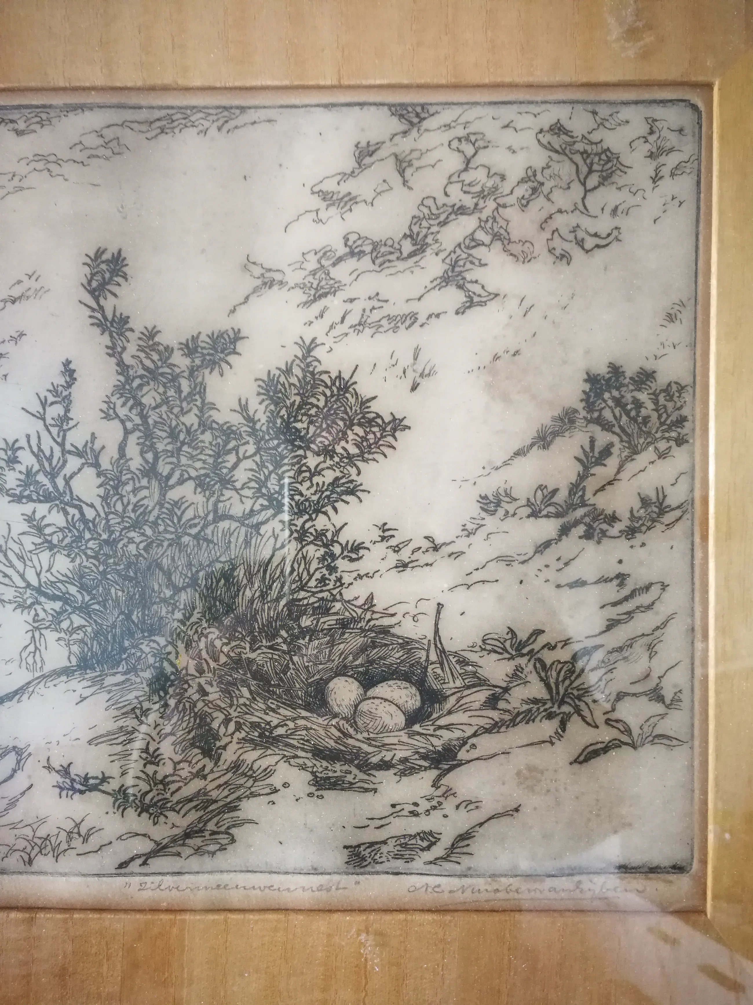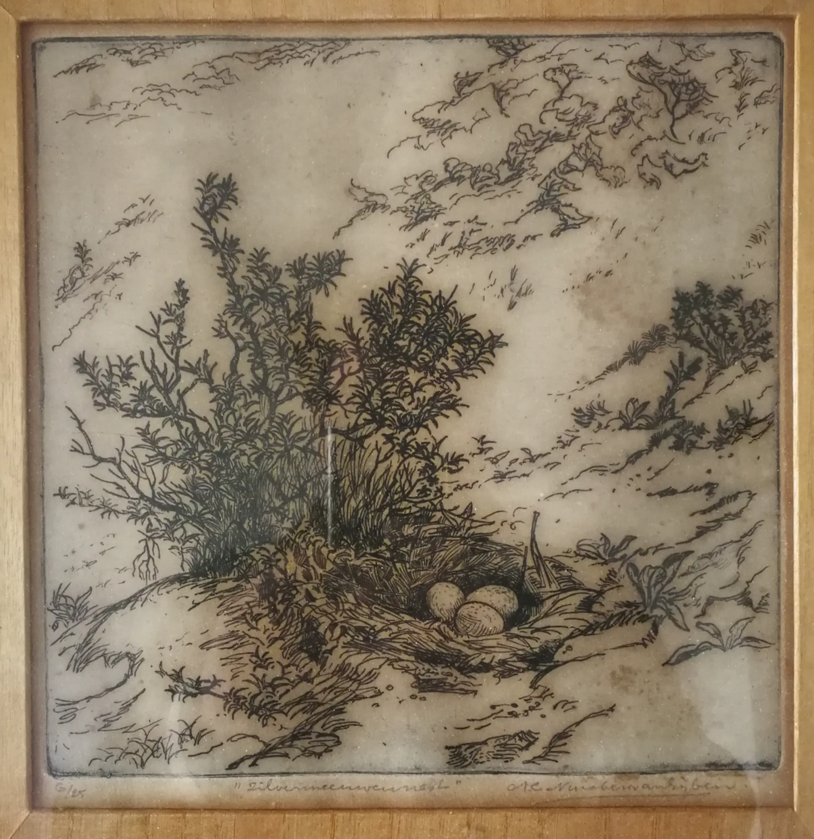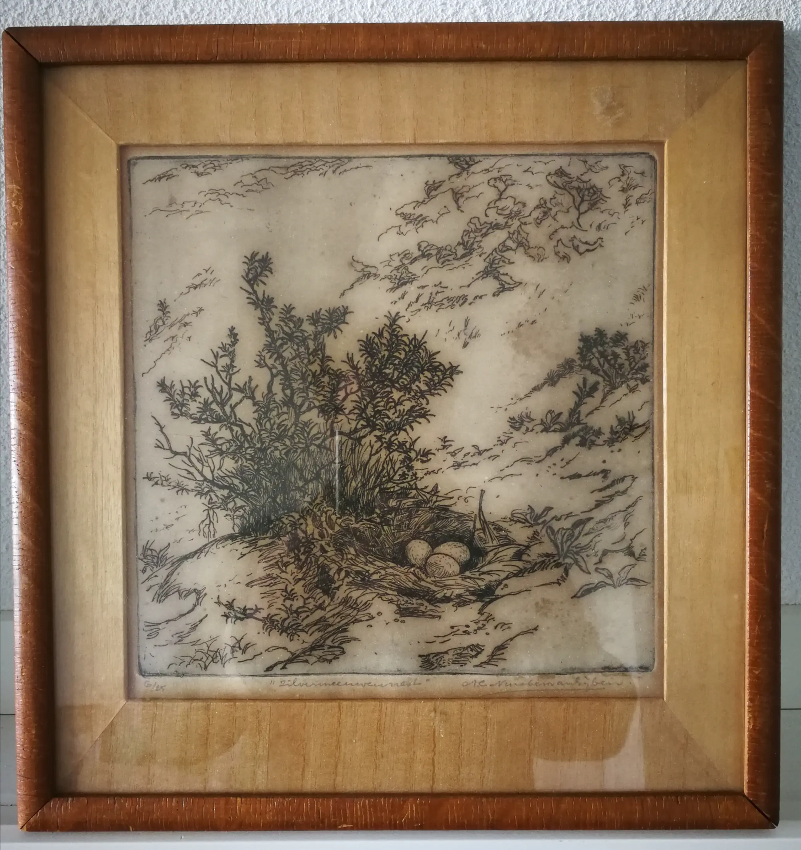 Ik denk op Japans papier. Achter glas beoordeeld. Originele lijst.