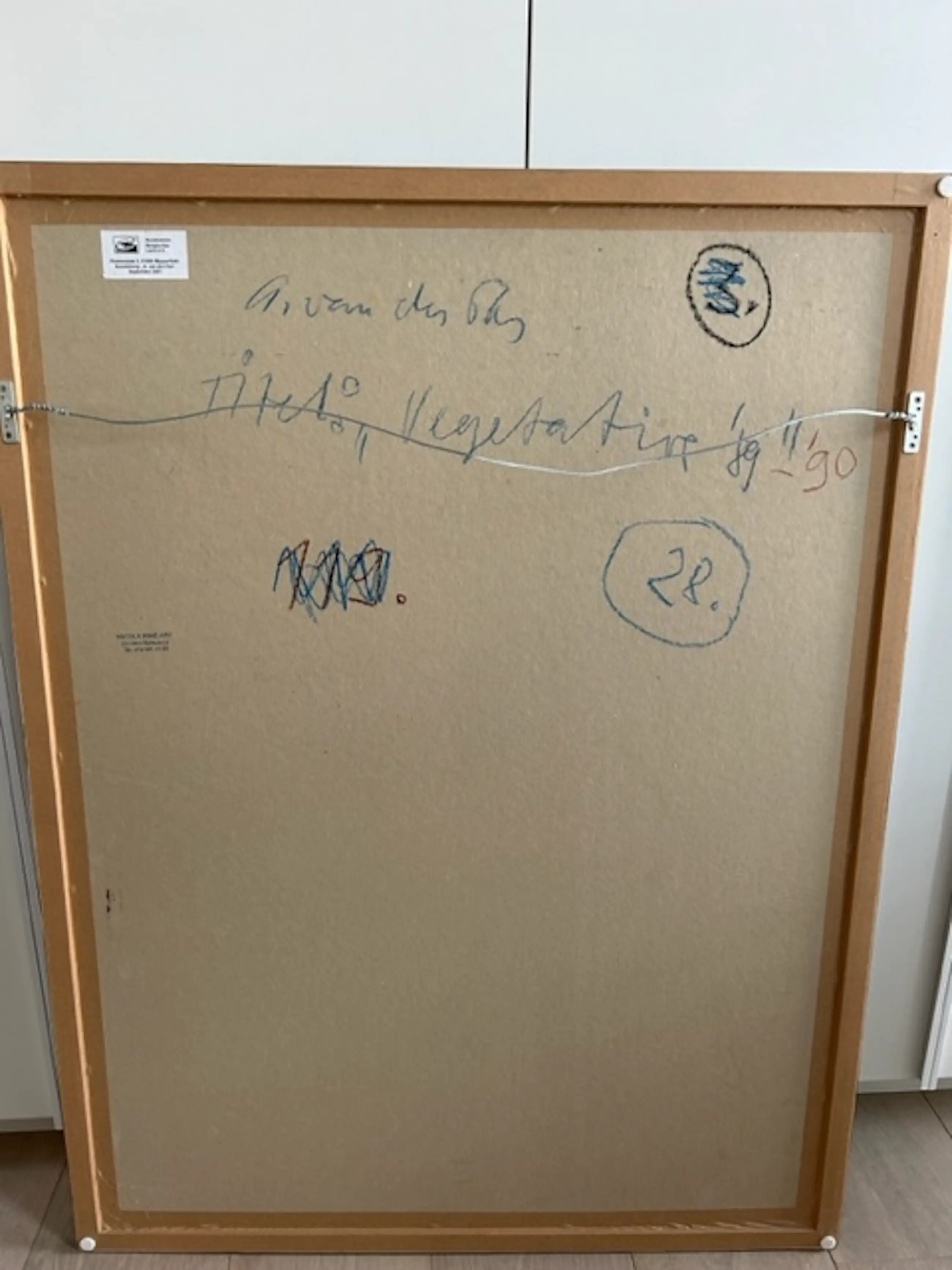het Kunstwerk is aangeschaft in een galerie in Switzerland, De titel staat op de achterkant en het schilderij is door de schilder gesigneerd en gedateerd ,op de voorkant staat zijn monogram. We zijn ook in het bezit van twee boeken van de schilder waar alle tentoonstellingen in vermeld staan waar zijn werk is ten toon gesteld tussen 1951 en 2000 (hoofdzakelijk in Duitsland ge-exposeert) . In het boek is ook zijn biografie vermeld. wij zijn in het bezit van de originele aankoop factuur ter waarde van CHF 1800 aangekocht op 20 Februari, 2021. Wij zijn onlangs verhuisd naar Belgie en hebben helaas geen plaats meer voor dit kunstwerk
