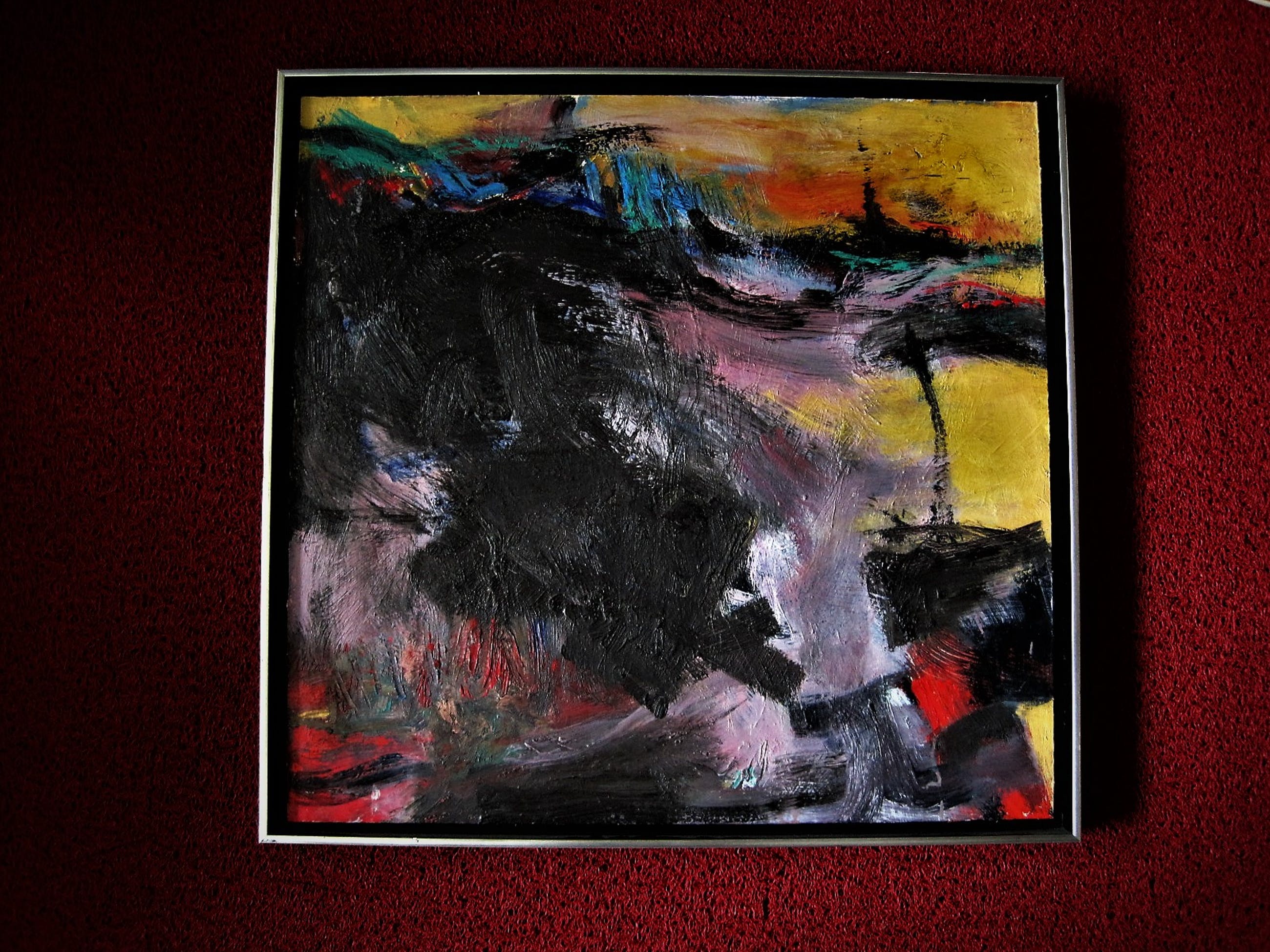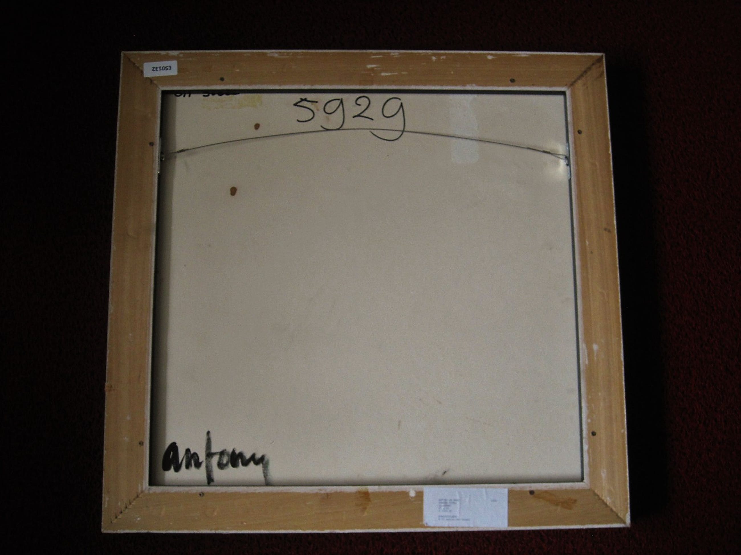 Titel: zonder titel Jaartal: Onbekend Afmetingen lijst: 62 cm x 64 cm Gesigneerd: Ja, handgeschreven (achterzijde) Materiaal: Olieverf op doek Ingelijst: Ja, in houten baklijst. Conditie: In zeer goede staat Oorspronkelijke galerieprijs: €1500