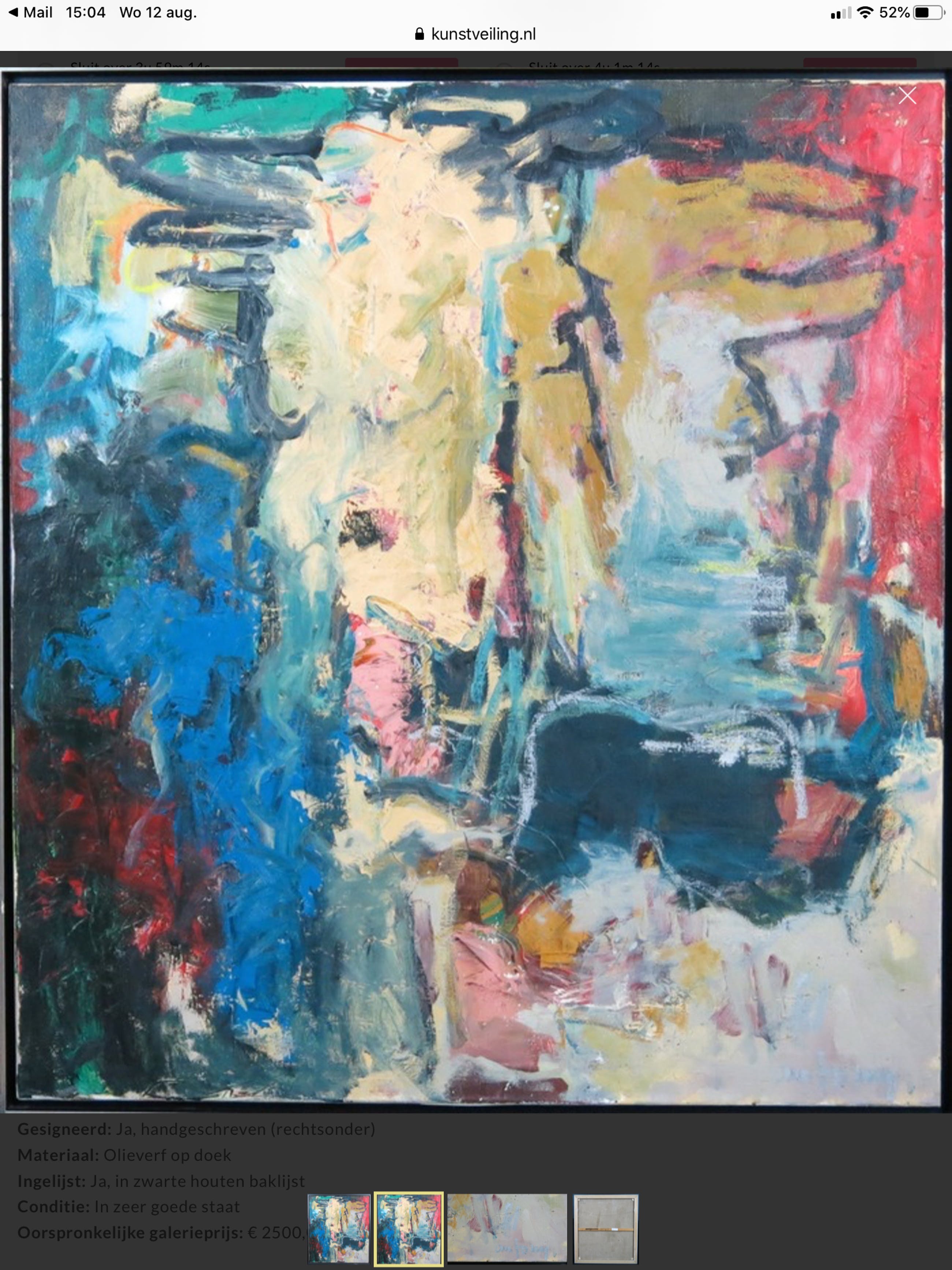Het kunstwerk is rechtsonder gesigneerd. Schilderij is “indrukwekkend” door afmetingen en kleurschakering......een soortgelijk werk van dezelfde kunstenaar is ook in mijn bezit met titel “ koude oase” .......echte blikvanger op een wand met voldoende ruimte!