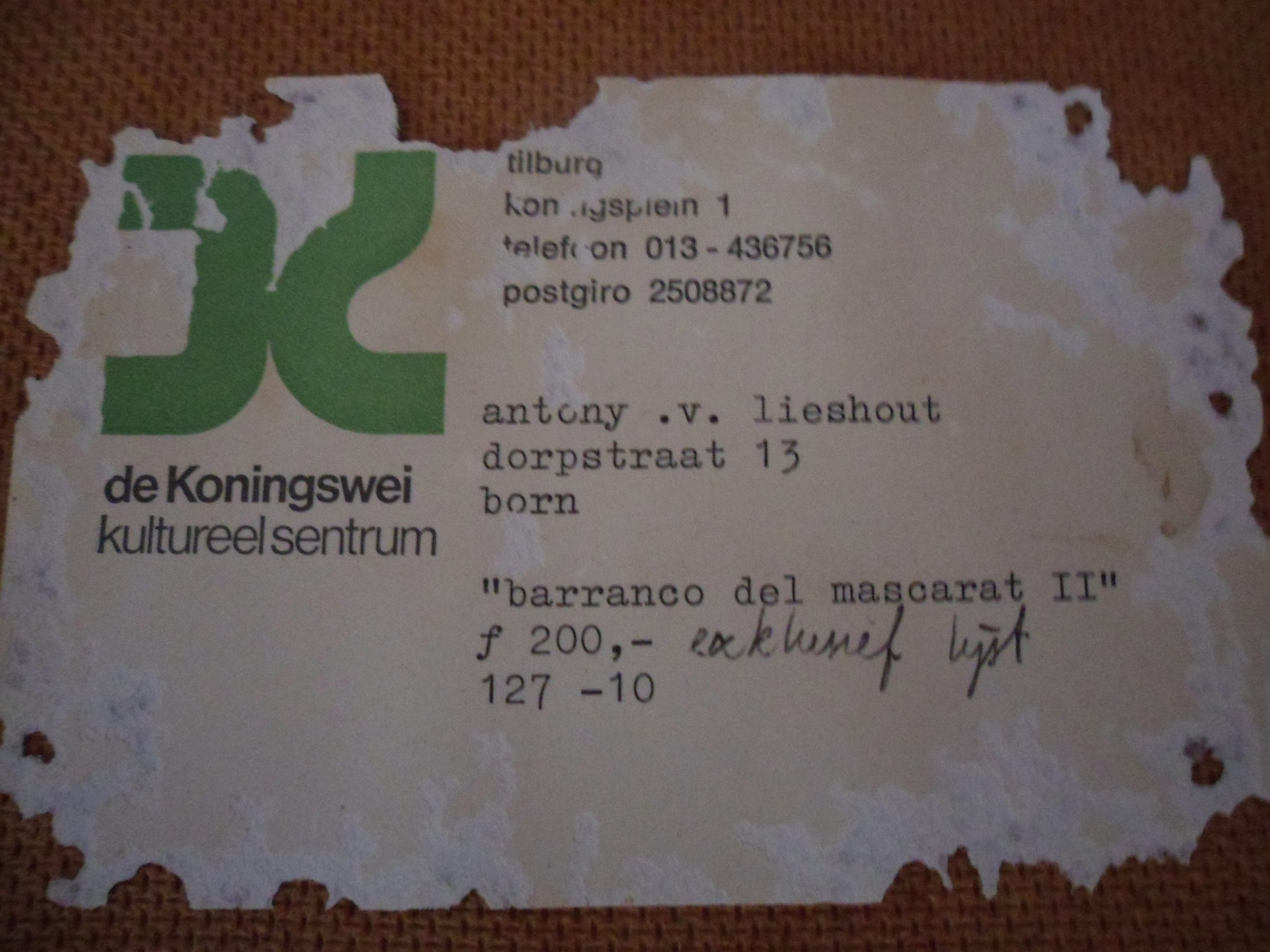 Antonius Adrianus Matheus Maria van Lieshout (‘Antony’) geb. Tilburg 5 november 1943. Woonde en werkte in Tilburg, Maastricht, Itteren; thans in Born. Leerling van de Academie v. B.K. te Tilburg o.l.v. Ru van Rossem en Nico Molenkamp en van de Jan van Eyck-academie te Maastricht o.l.v. K. Sarneel.