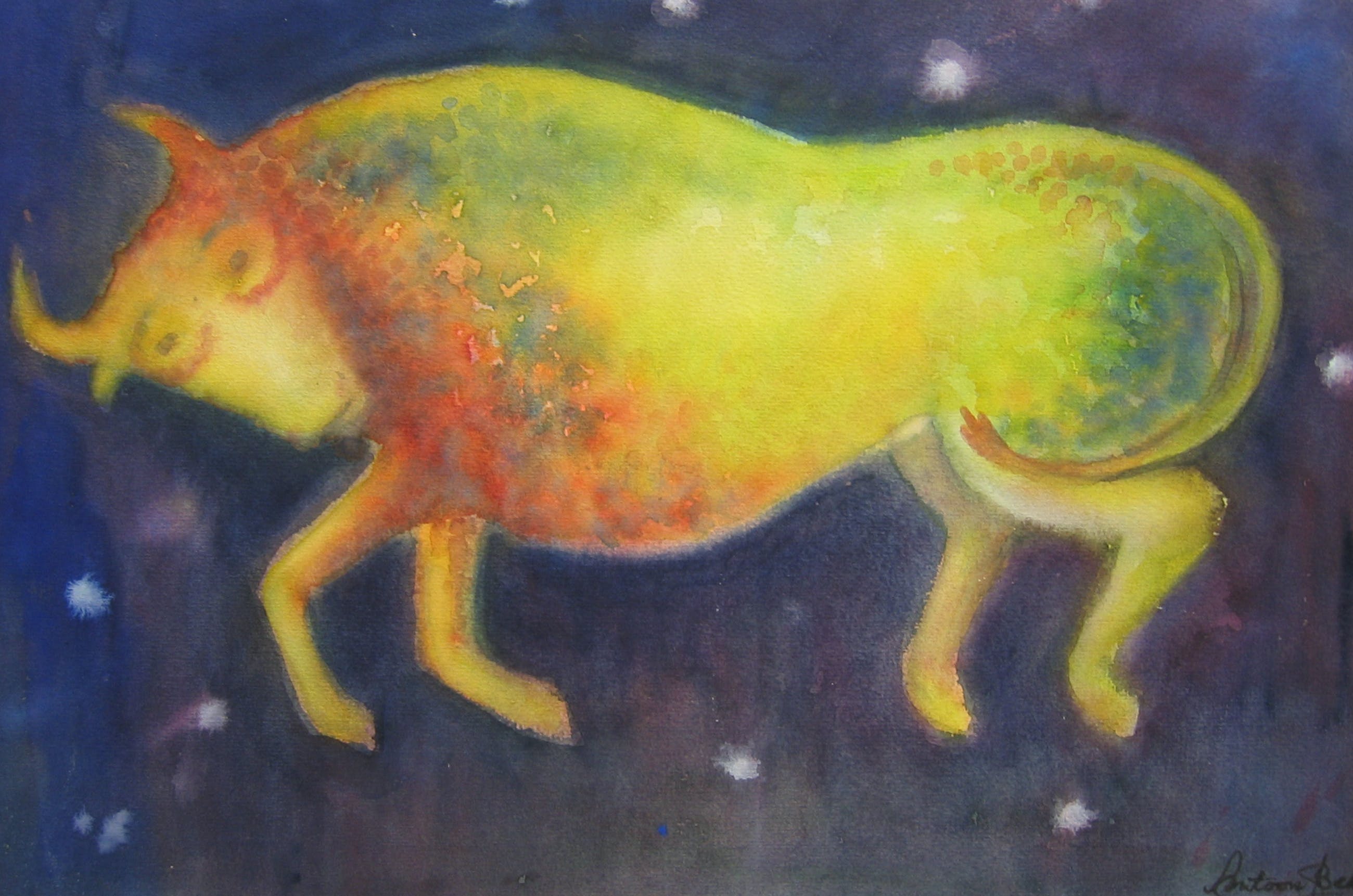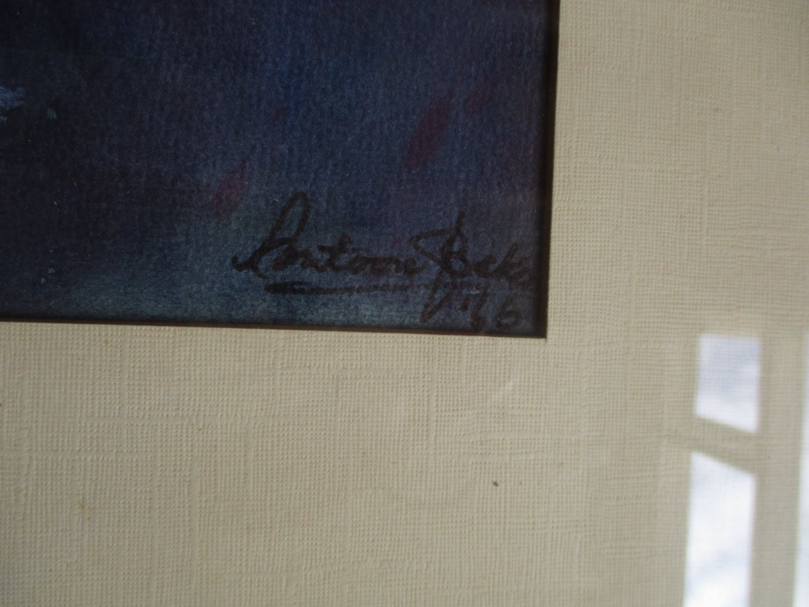 Deze gouache is rechtsonder gesigneerd. Het werk is ingelijst met passepartout.