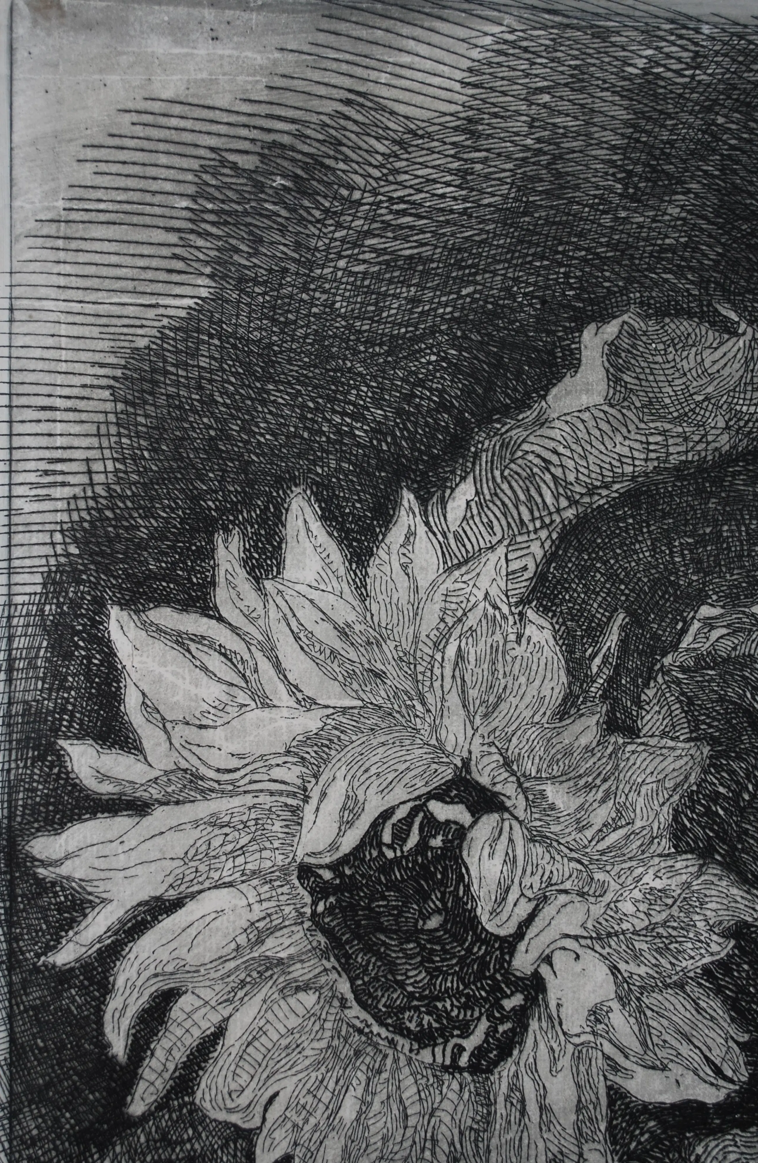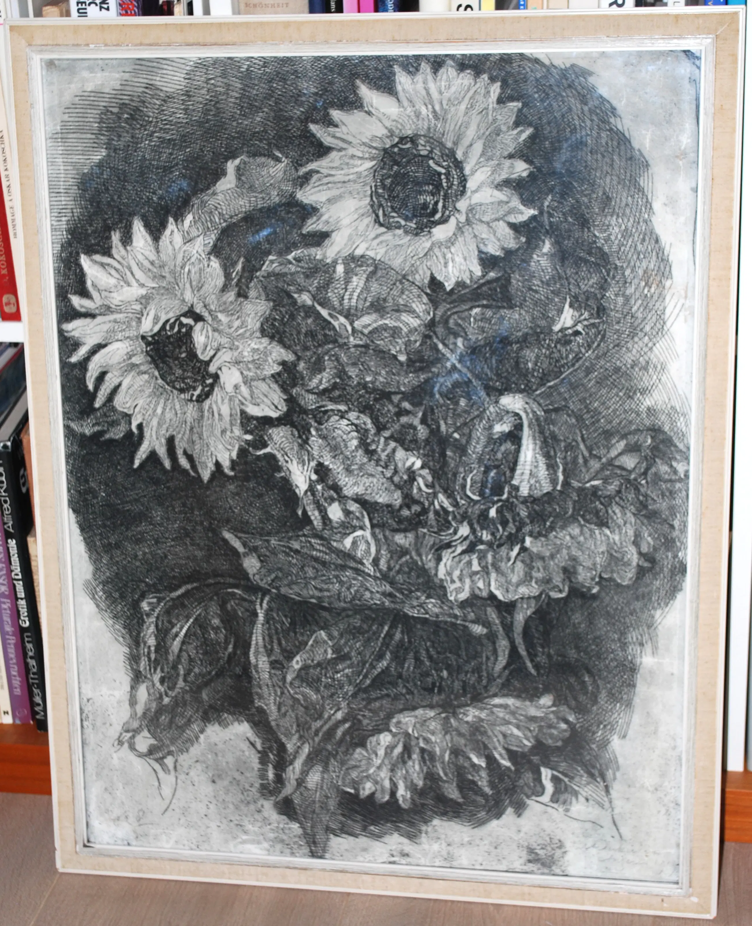 Antoon Derkzen van Angeren - grote ets - Zonnebloemen - mooi ingelijst