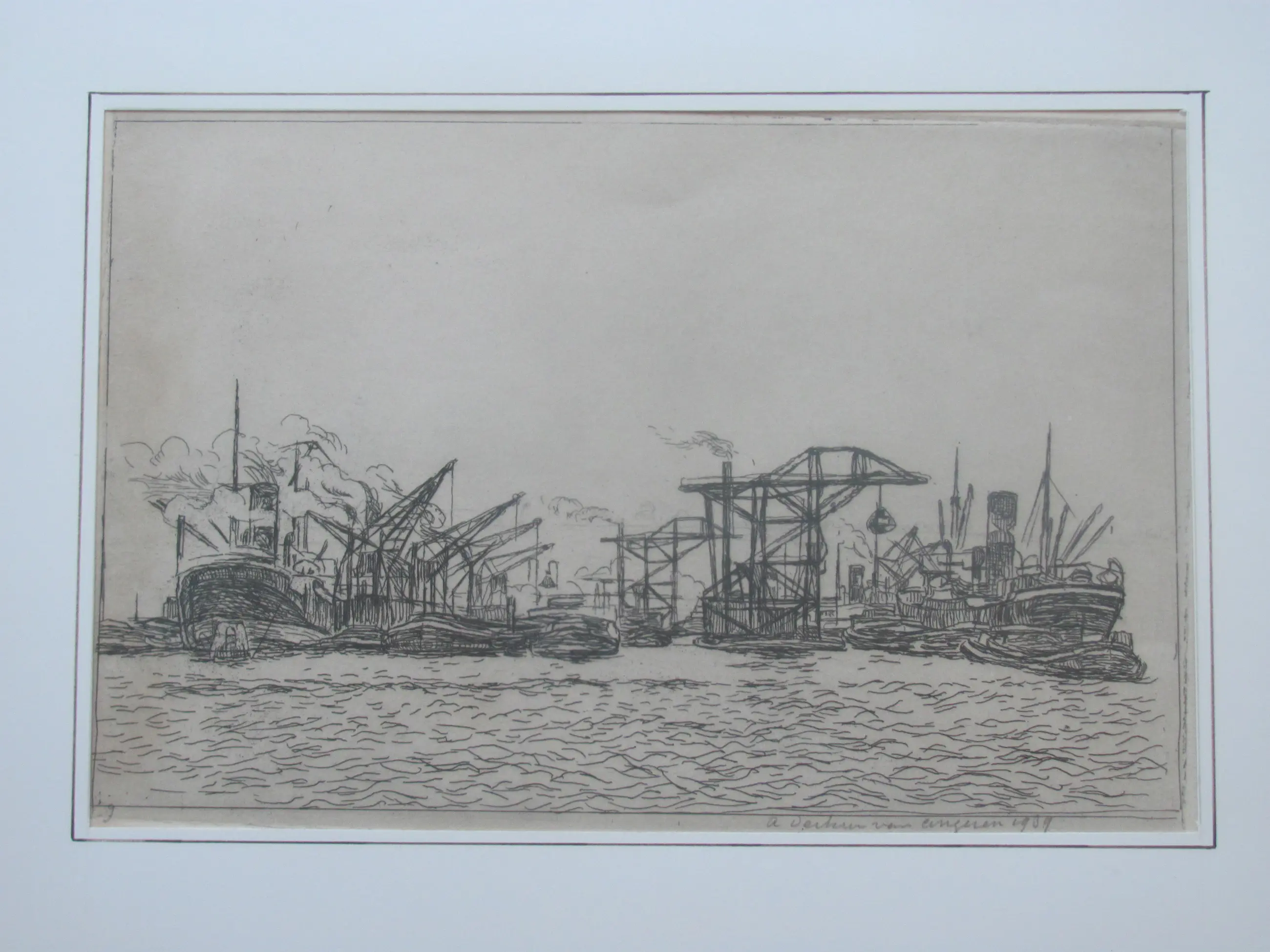 Ets van Antoon Derkzen van Angeren uit 1939. Met potlood gesigneerd en gedateerd.