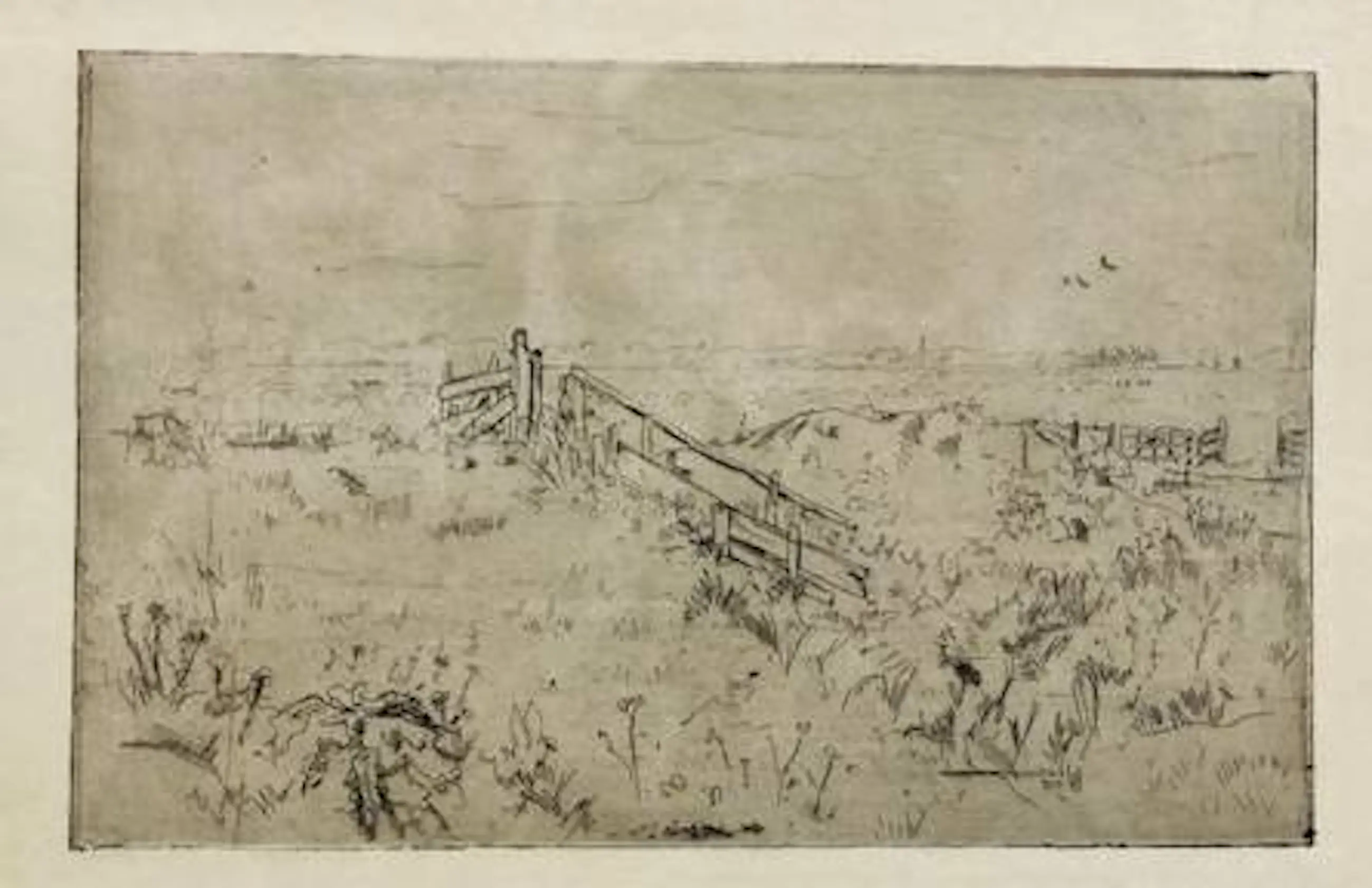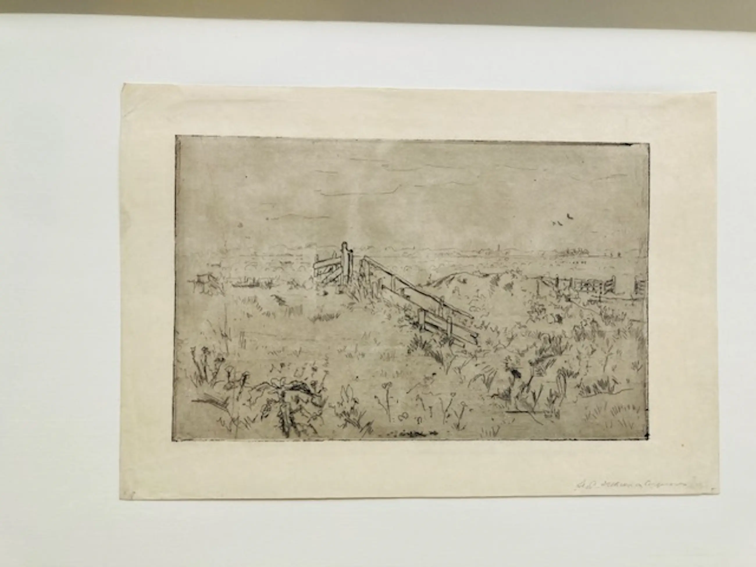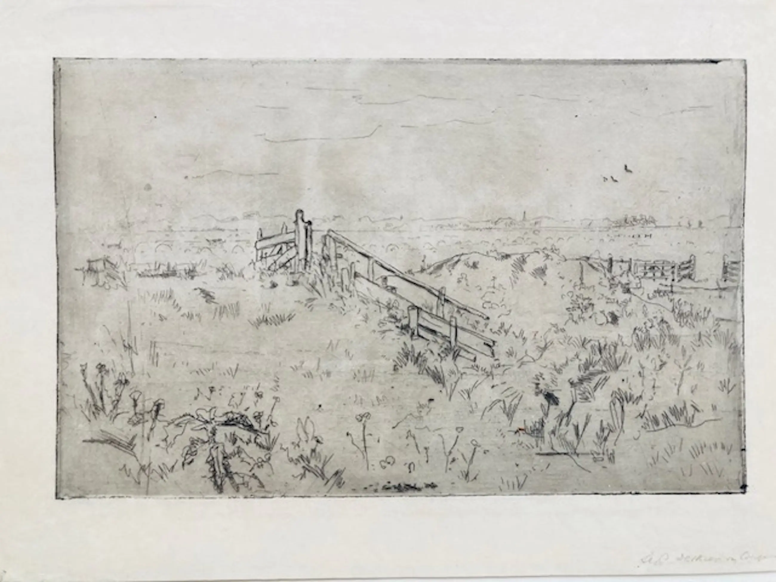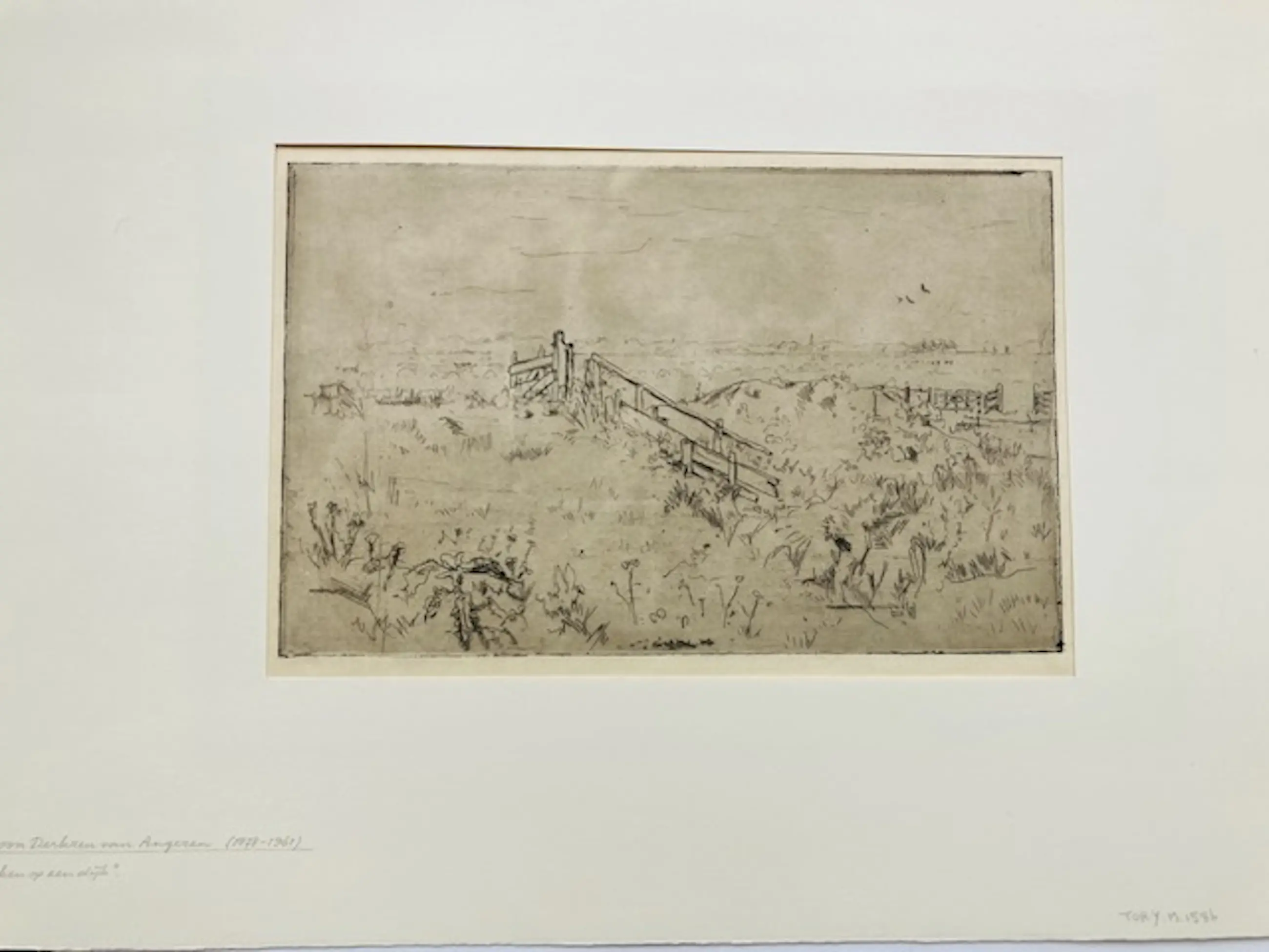 Fraaie drogenaald ets van de kunstenaar Antoon Derkzen van Angeren.