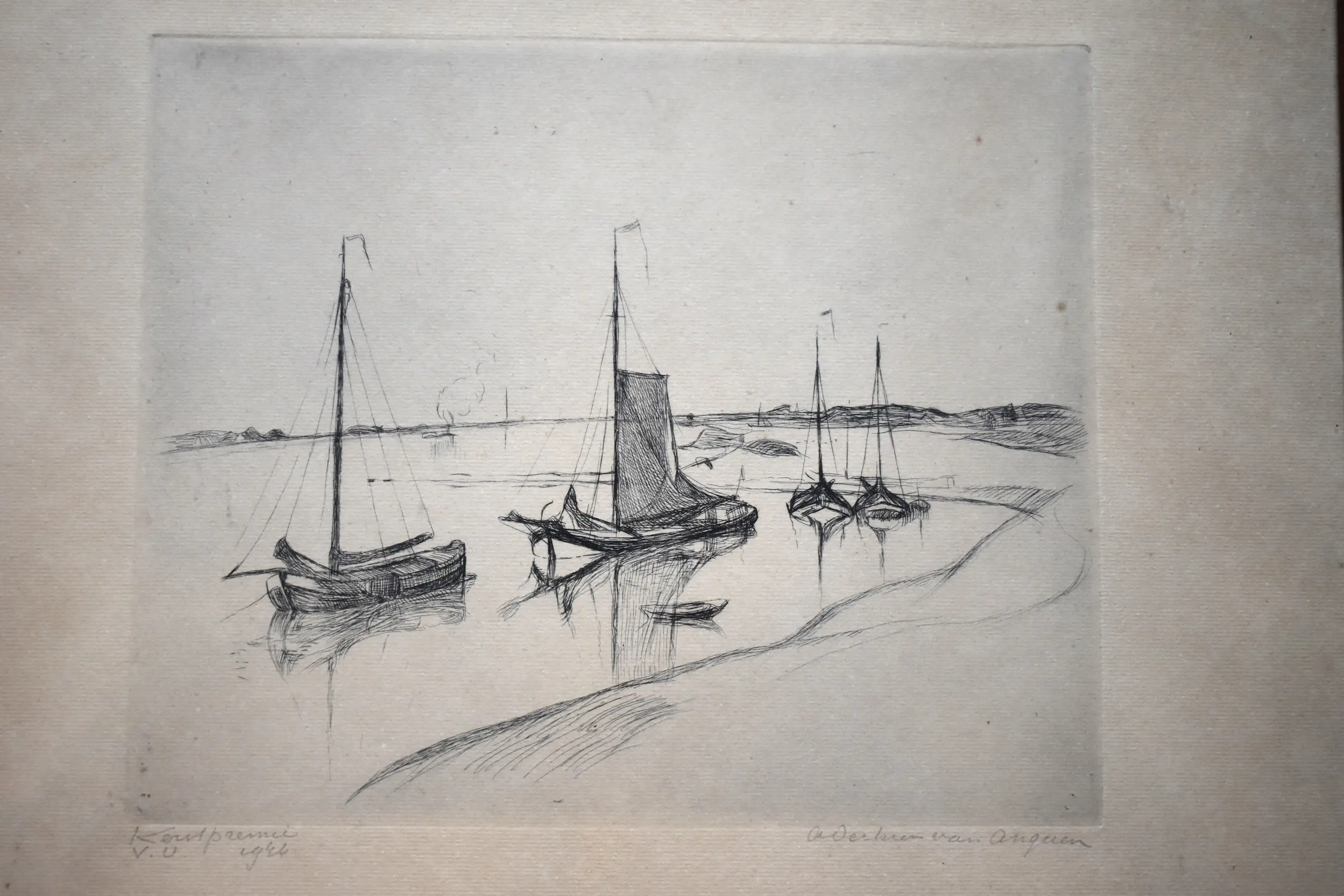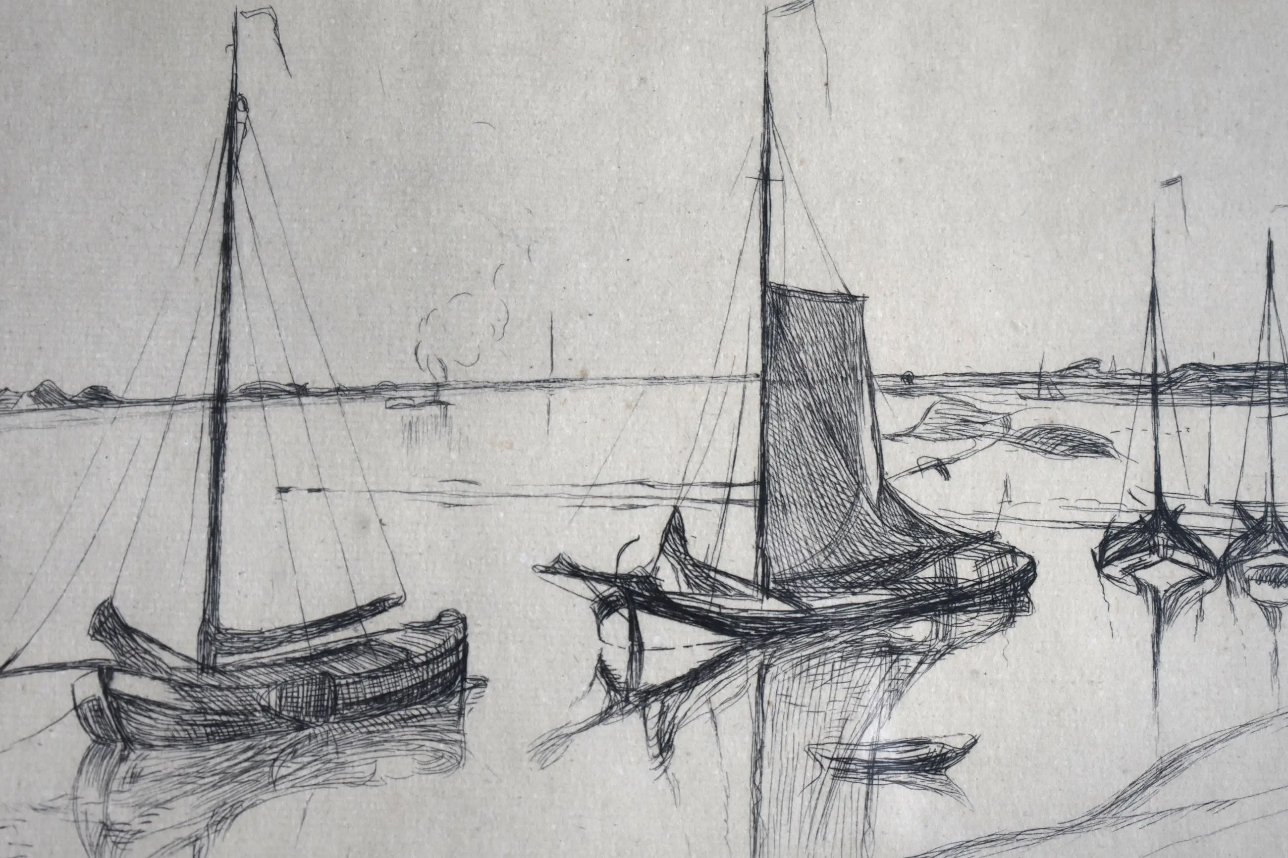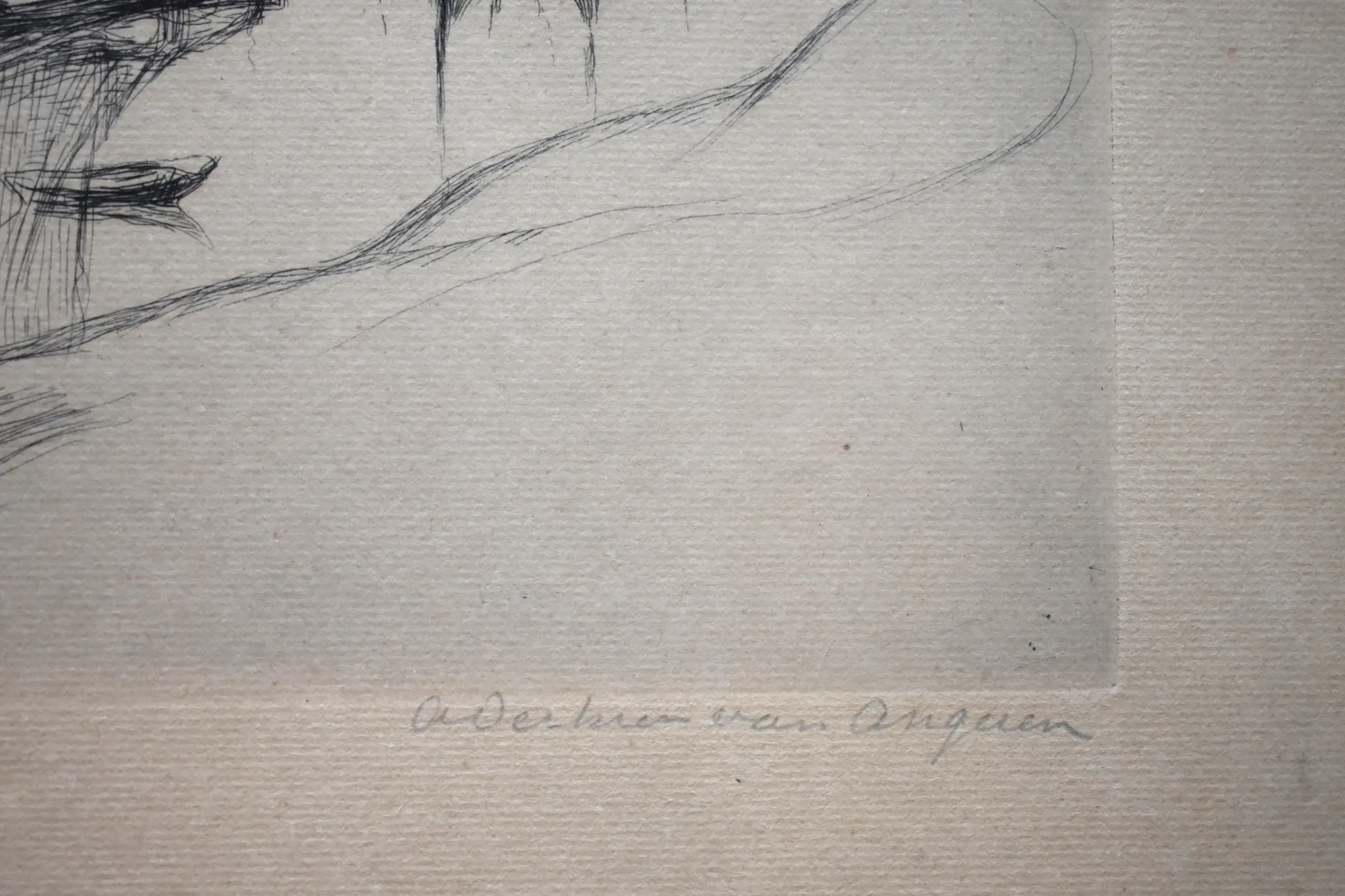 Antoon Derksen van Angeren heeft vele etsen gemaakt. Deze ets was een eerbetoon aan de kunstenaar, die dit werk mocht maken in opdracht van de Maatschappij voor nijverheid en handel die dit werk als kerstgeschenk uitdeelden. Mooie frisse haarscherpe ets in oorspronkelijke eikenhouten lijst.