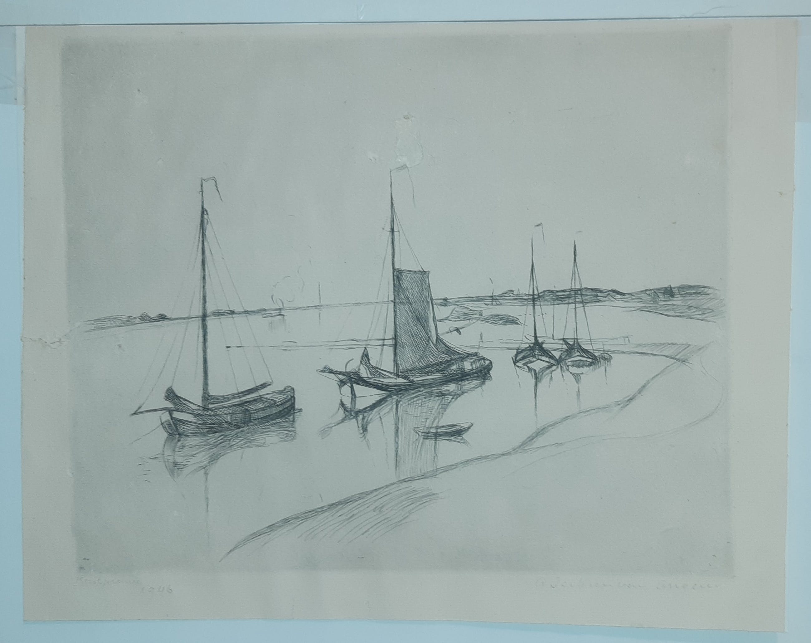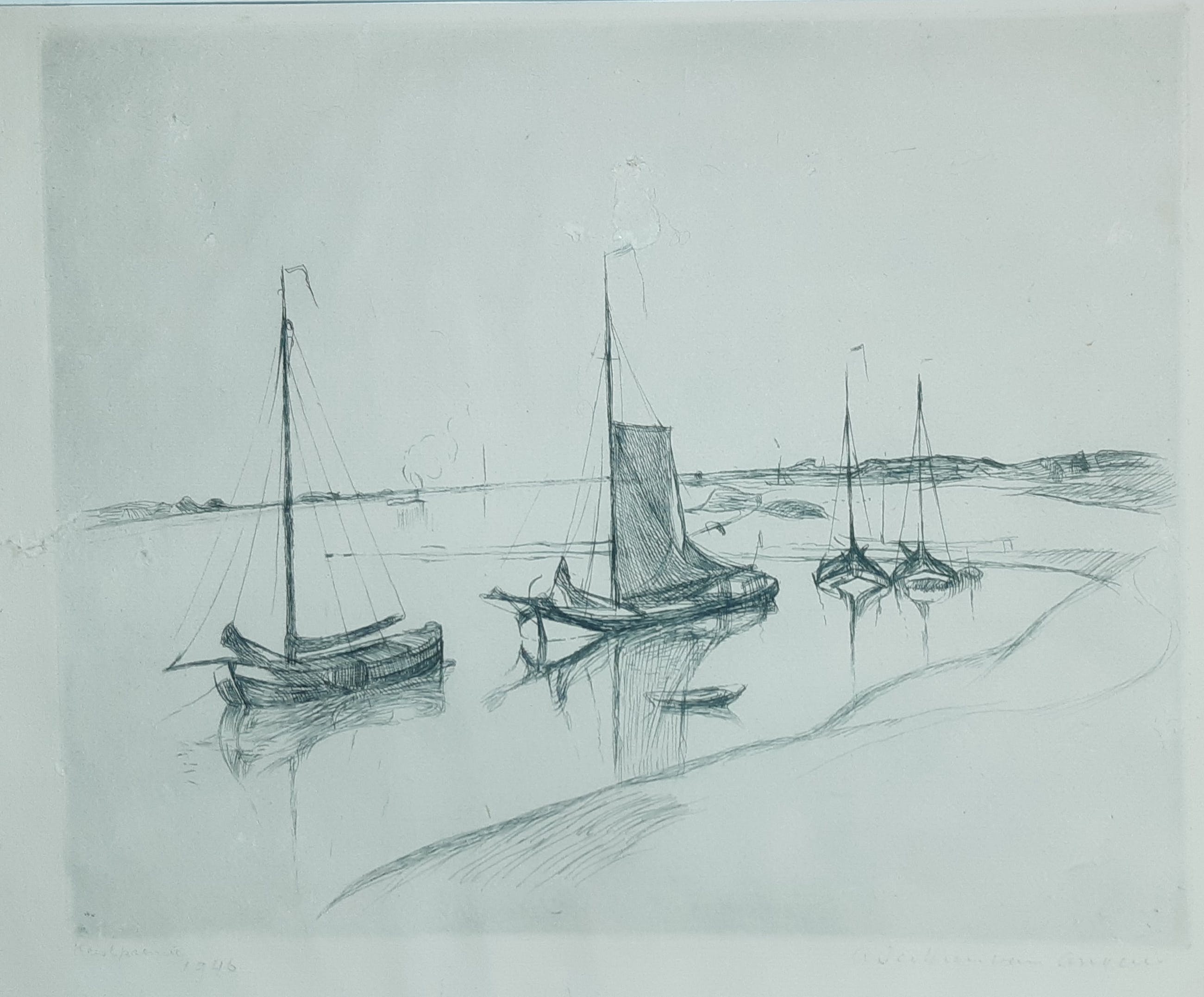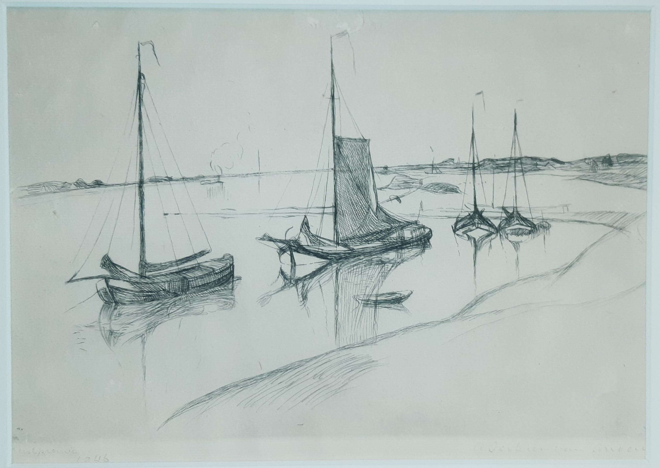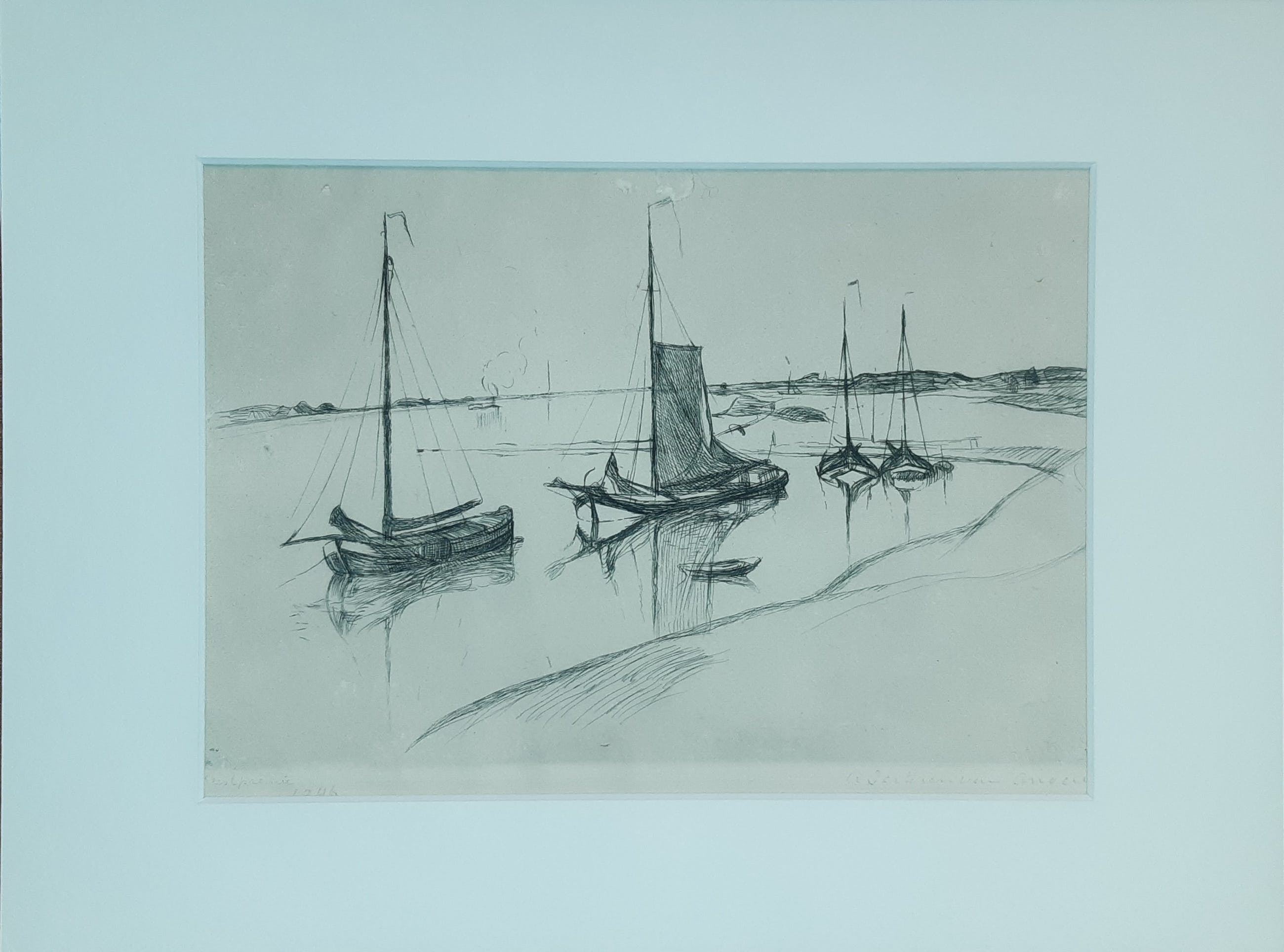 Zeilschepen liggend aan de oever; Antoon Derkzen van Angeren (1878 – 1961)