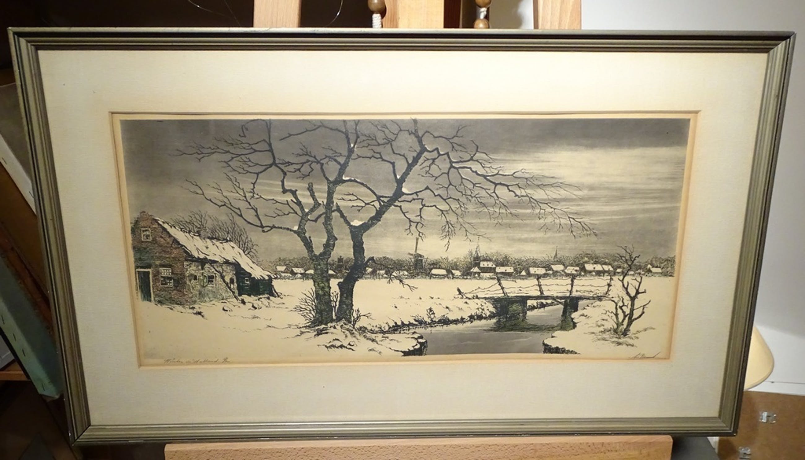 Gesigneerd met potlood rechtsonder en linksonder getiteld: Winter in Holland