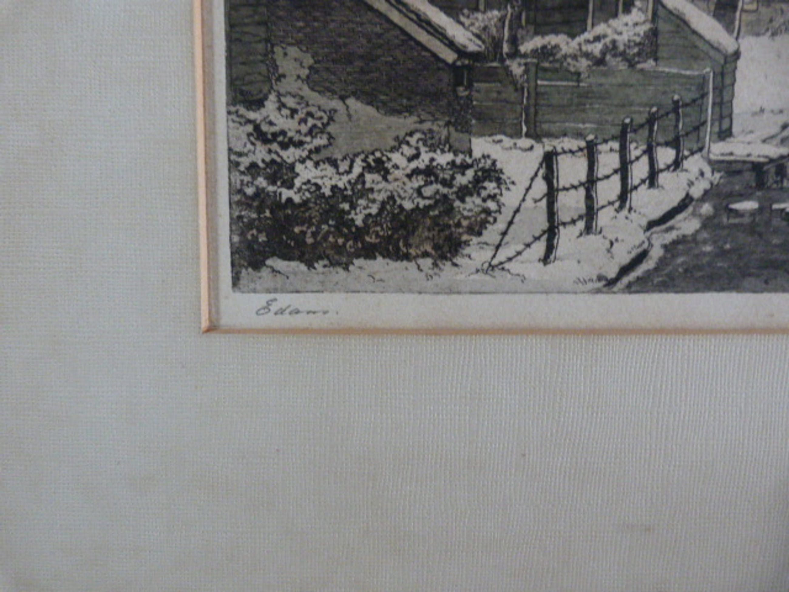 Antoon van Hemert ( Den Bosch 1883 - 1944 Utrecht ). --------------------------------------------------------------------- 1. Edam. Ets : 29 x 60 cm. Met passe-partout : 45 x 75 cm. Rechtsonder met de hand in potlood gesigneerd. Linksonder met potlood betiteld. 2. Boerderij in de winter. Ets : 12,5 x 32 cm. Met passe-partout : 26 x 43 cm. Rechtsonder met de hand in potlood gesigneerd.