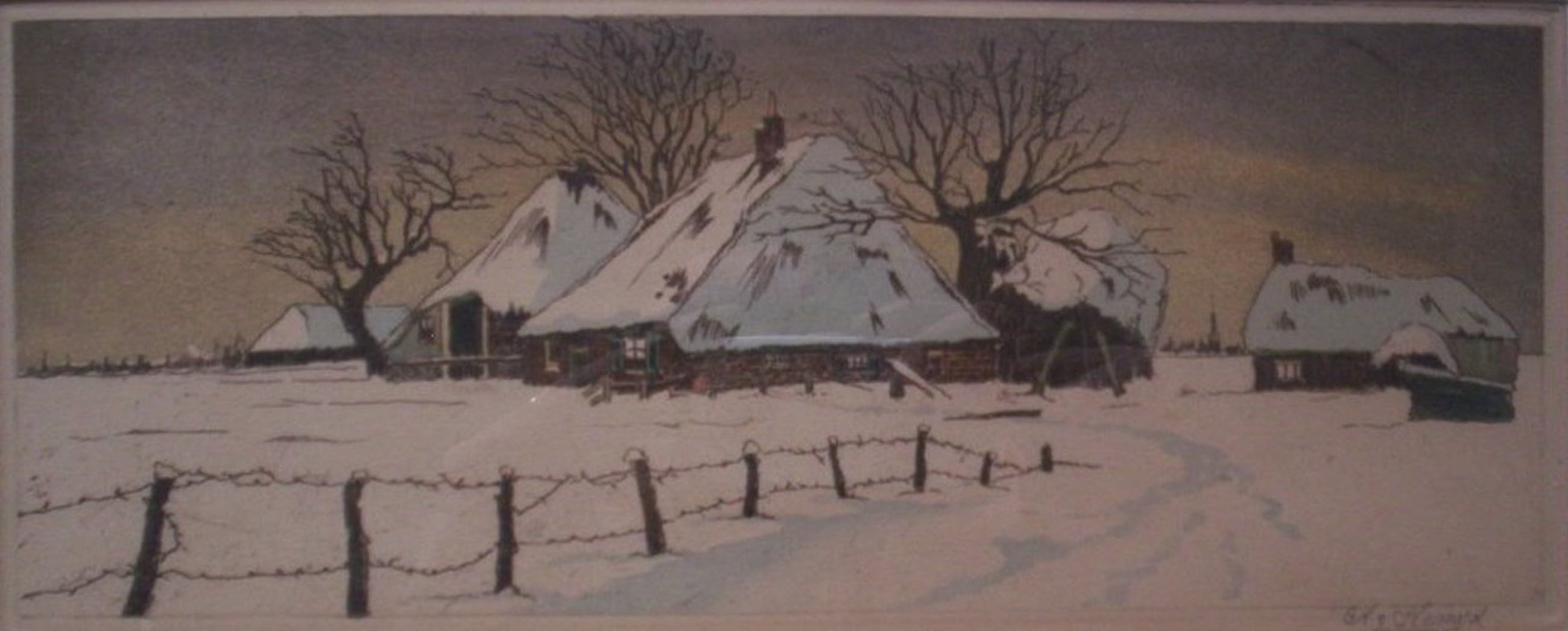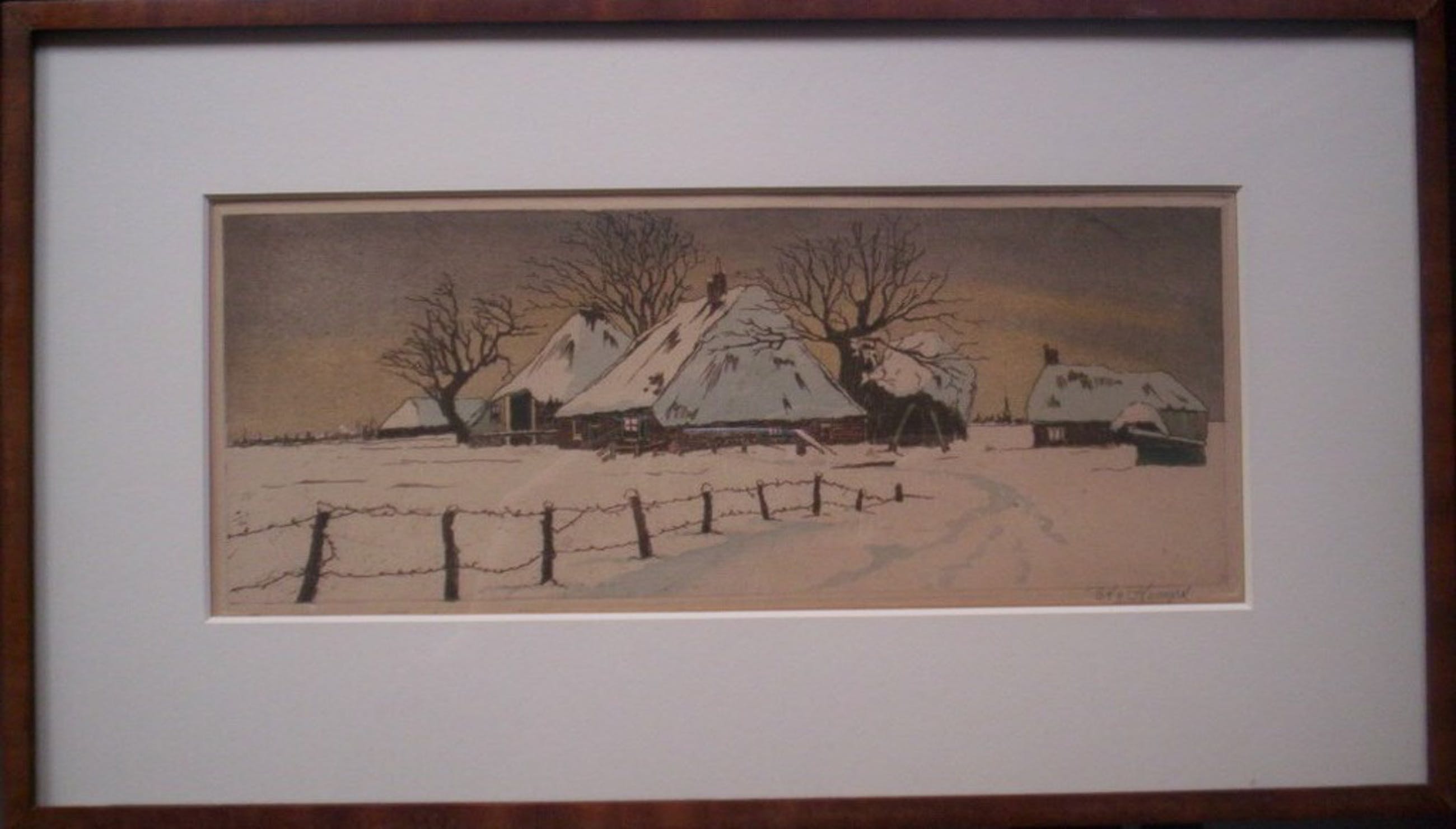 Anton Willem Joseph Marie werd op 9 februari 1883 in Den Bosch geboren en overleed op 15 februari 1944 in Utrecht.Hij woonde en werkte o.a. in Den Bosch,Amsterdam,Amersfoort en Utrecht.Gaf o.a. les aan de H.B.S. te Utrecht. Kleurenets. Gesigneerd met potlood A. van Hemert.Voorzien van nieuw passe-partout. Afmetingen inclusief lijst:45 x 26 cm.