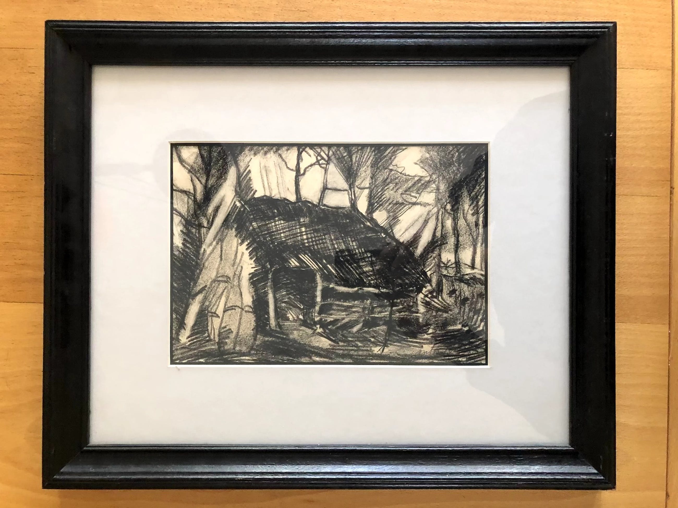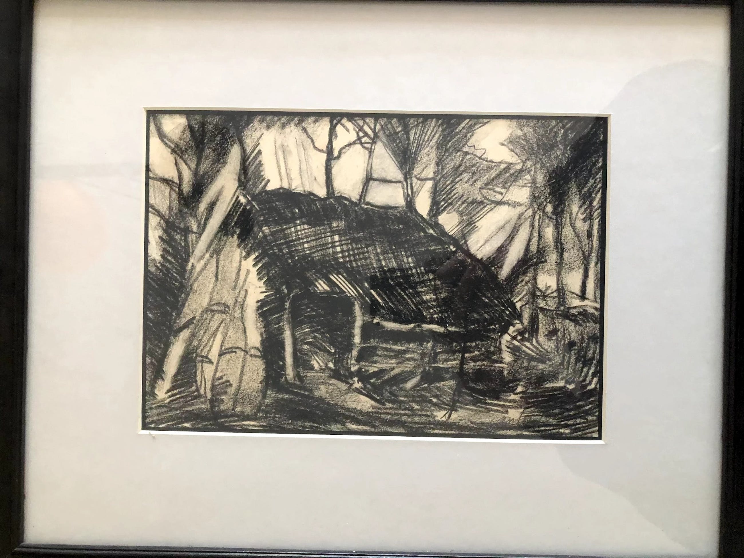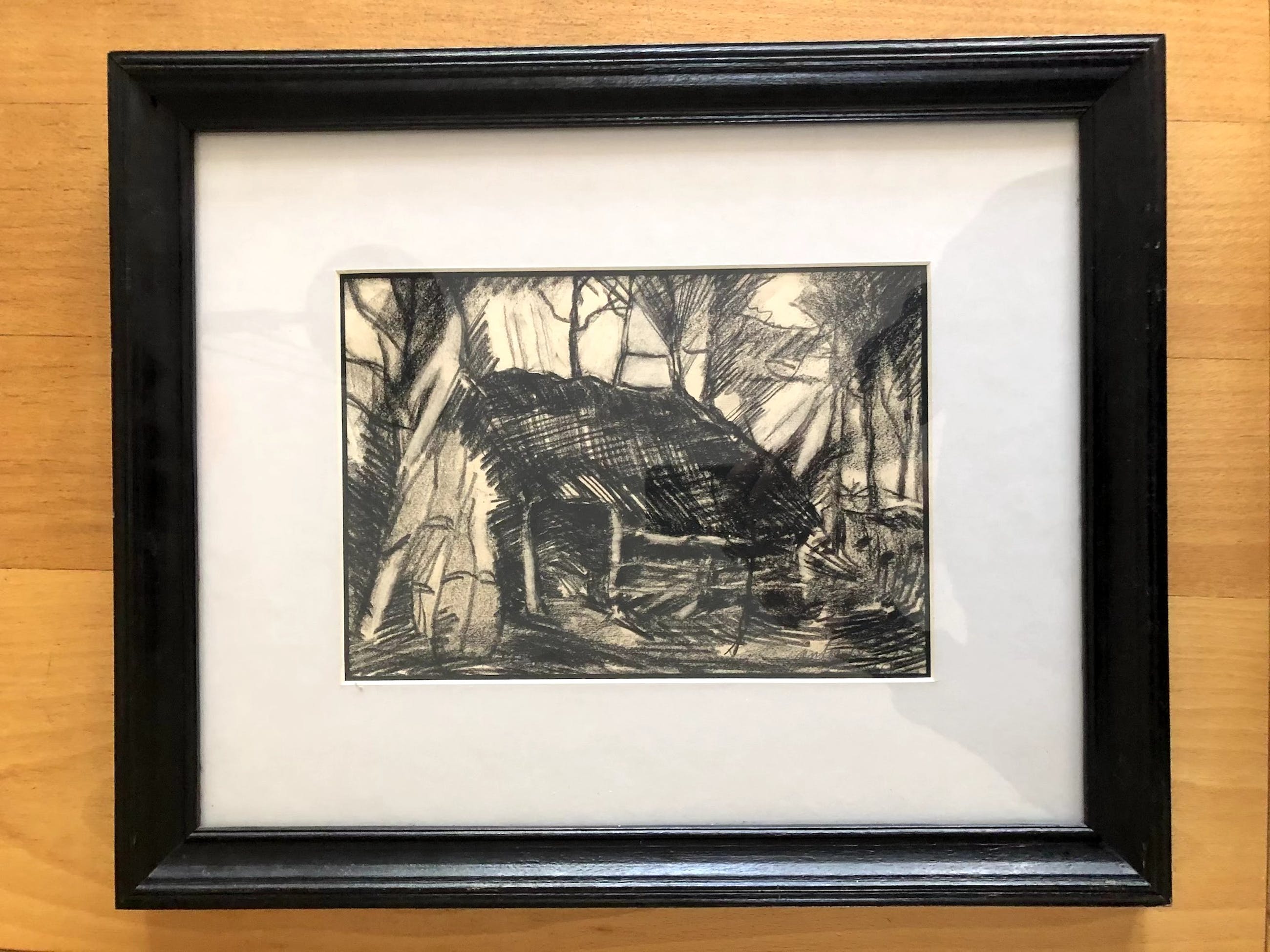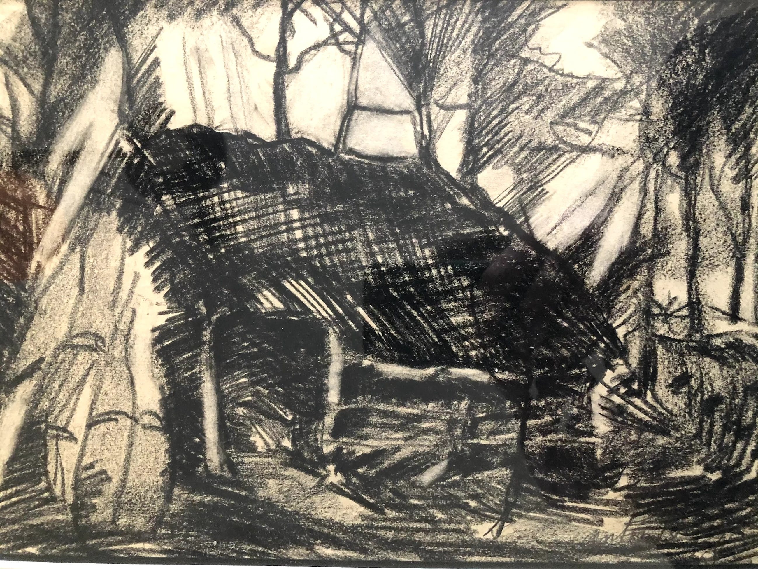 34 D5 Antoon Kruijsen Boerderij Krijttekening 19 x 27 cm 39 x 48 cm Herkomst: Peter van den Braken Centrum te Sterksel