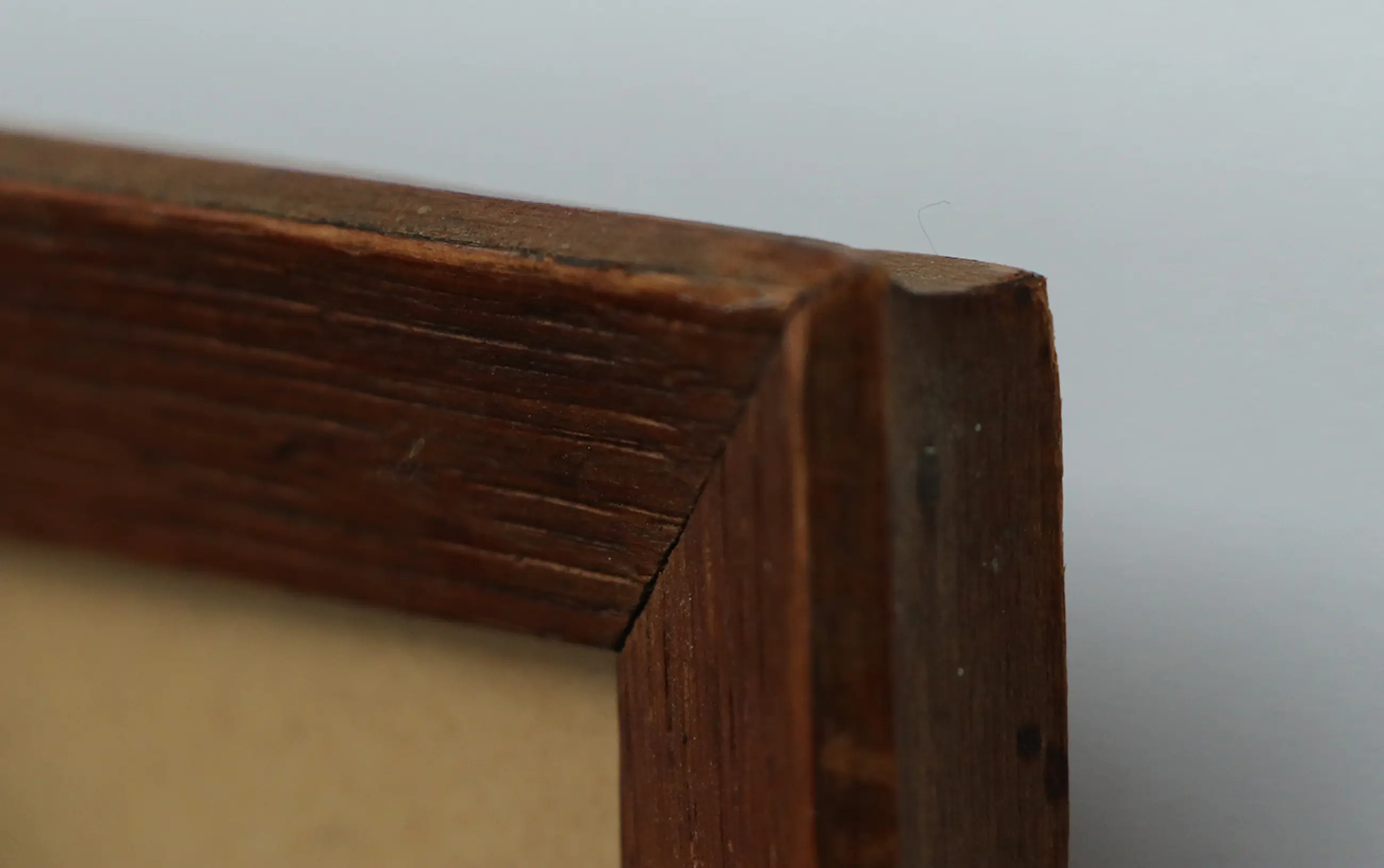 De tekening is goed beschermd geweest achter glas. Parssepartrout is vergeeld en heeft een vlek. De lijst is simpel en heeft lichte tijdsschade.