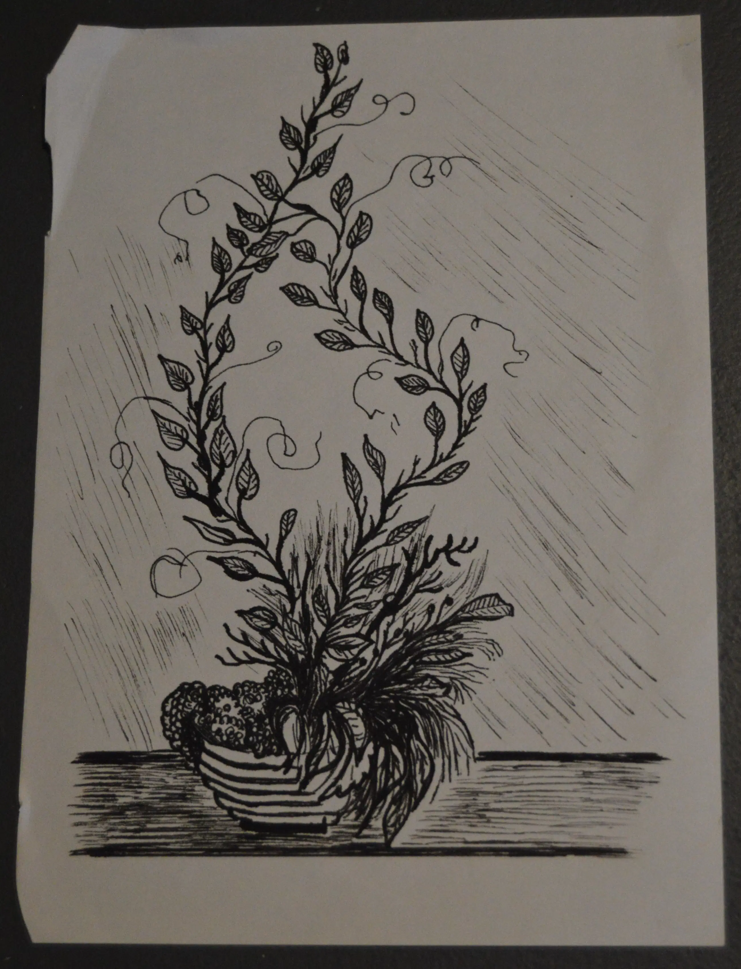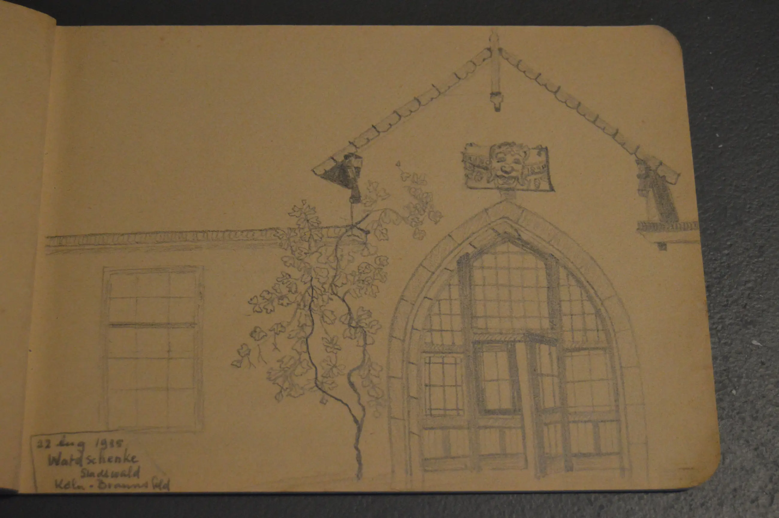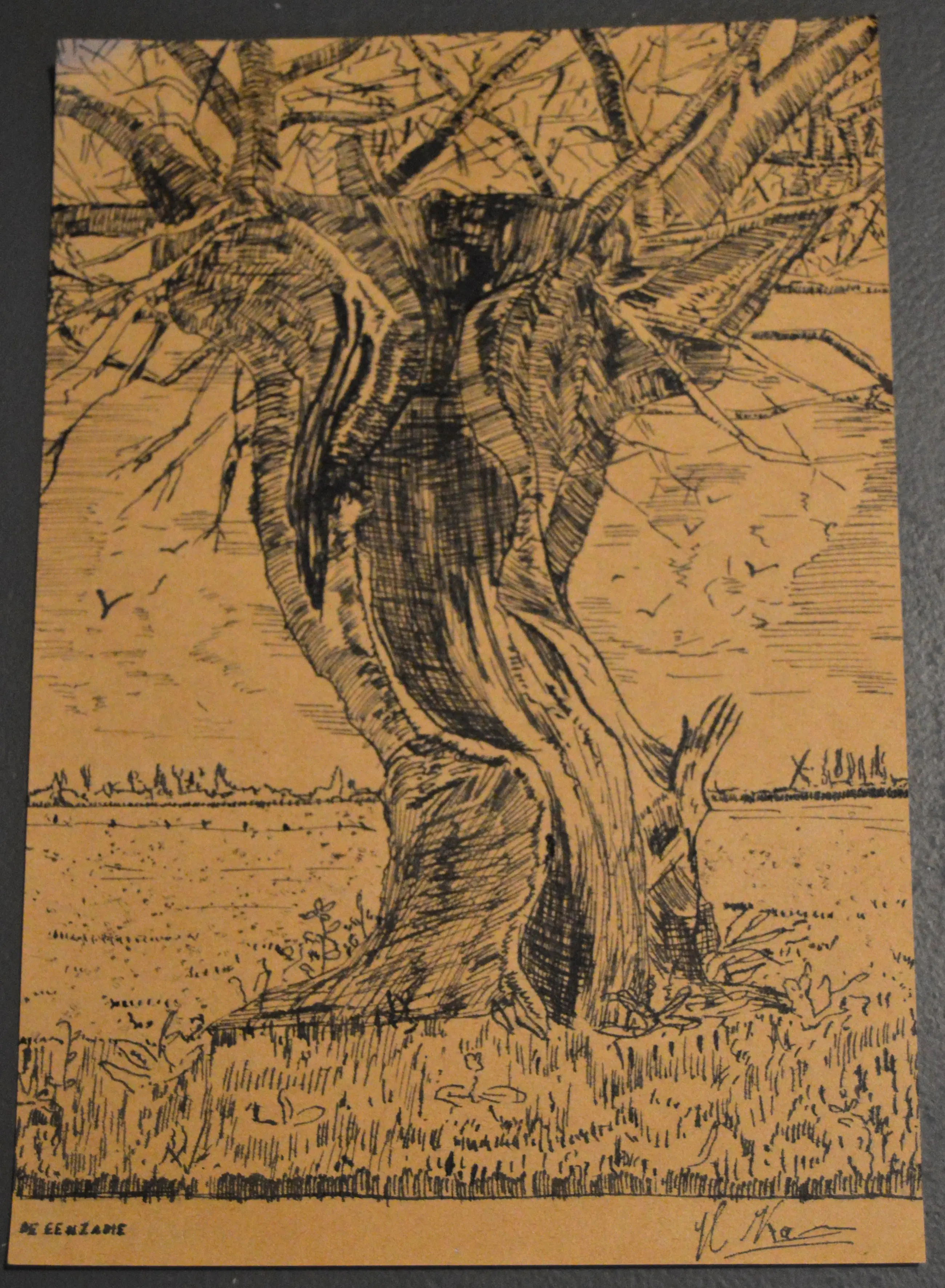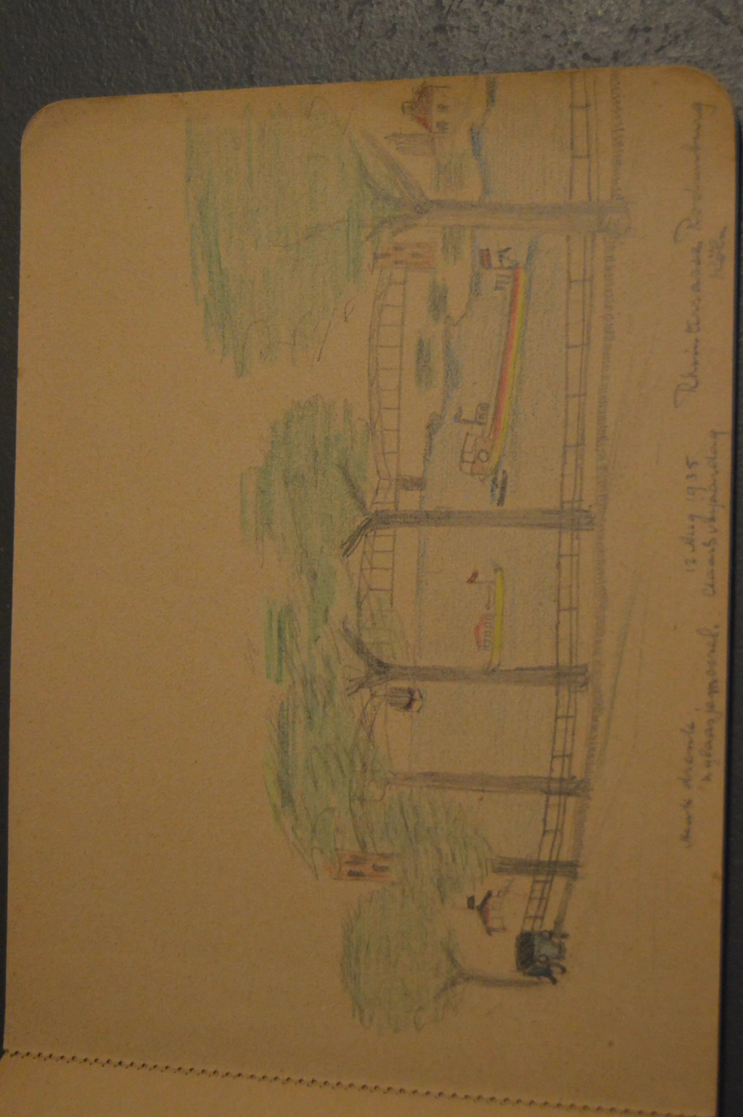9 {ingekleurde} tekeningen en een schetsboek uit ca 1930. vnl gesigneerde werken. Helaas meest onduidelijk. Landschap Markus potlood, 29 x 20 cm. water met vogels. Anssems, inkt en waterverf.18 x 18 cm. De eenzame. Potlood. 22 x 15 cm. Plantenbakje. 20 x 15 cm. Heuvel papierkorf. 1926. Potlood. 22 x 14 cm. Mediterraan, ingekleurde tekening. Ploon 1999. 28 x 20 cm. Ezel ingekleurd. inkt. 27 x 19 cm. Koe, ingekleurde ets. Yvonnen 1985. 6 x 5 cm Vaas met bloemen. litho. 25 x 18cm. Schetsboekje met 16 pagina's schetsen en tekeningen. Meest gedateerd en beschreven