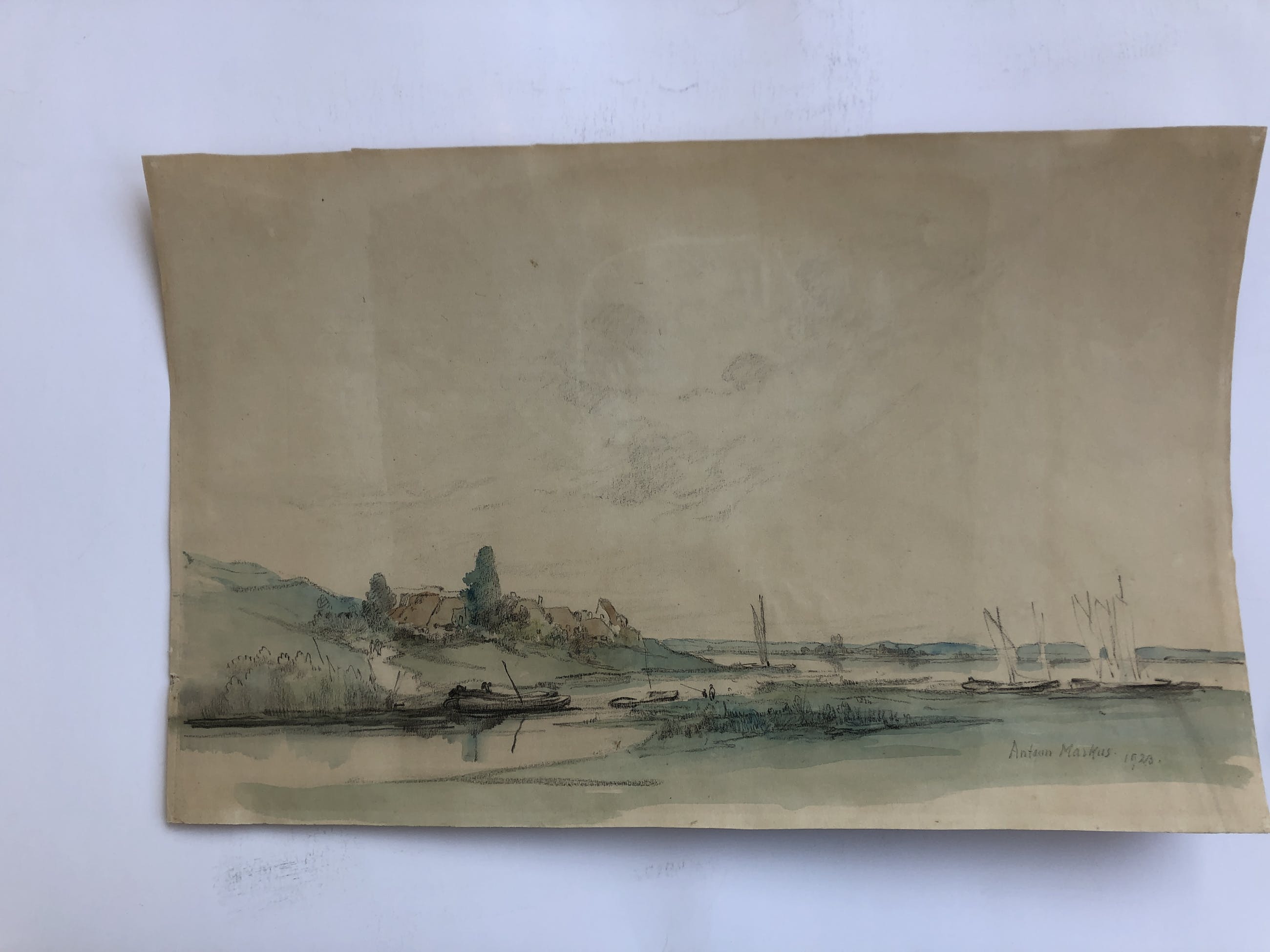 Aquarel, krijt en potlood van Antoon Markus in redelijke staat maar duidelijk ouderdomsporen. Vandaar lage instapprijs. U kunt het werk vooraf komen bekijken bij galerie Rotor in Gorinchem en na afloop van de veiling ophalen of per aangetekende post toegestuurd krijgen. In overleg kunt u uw aankopen laten opslaan in onze verwarmde opslagruimte en ze in een later stadium ophalen.