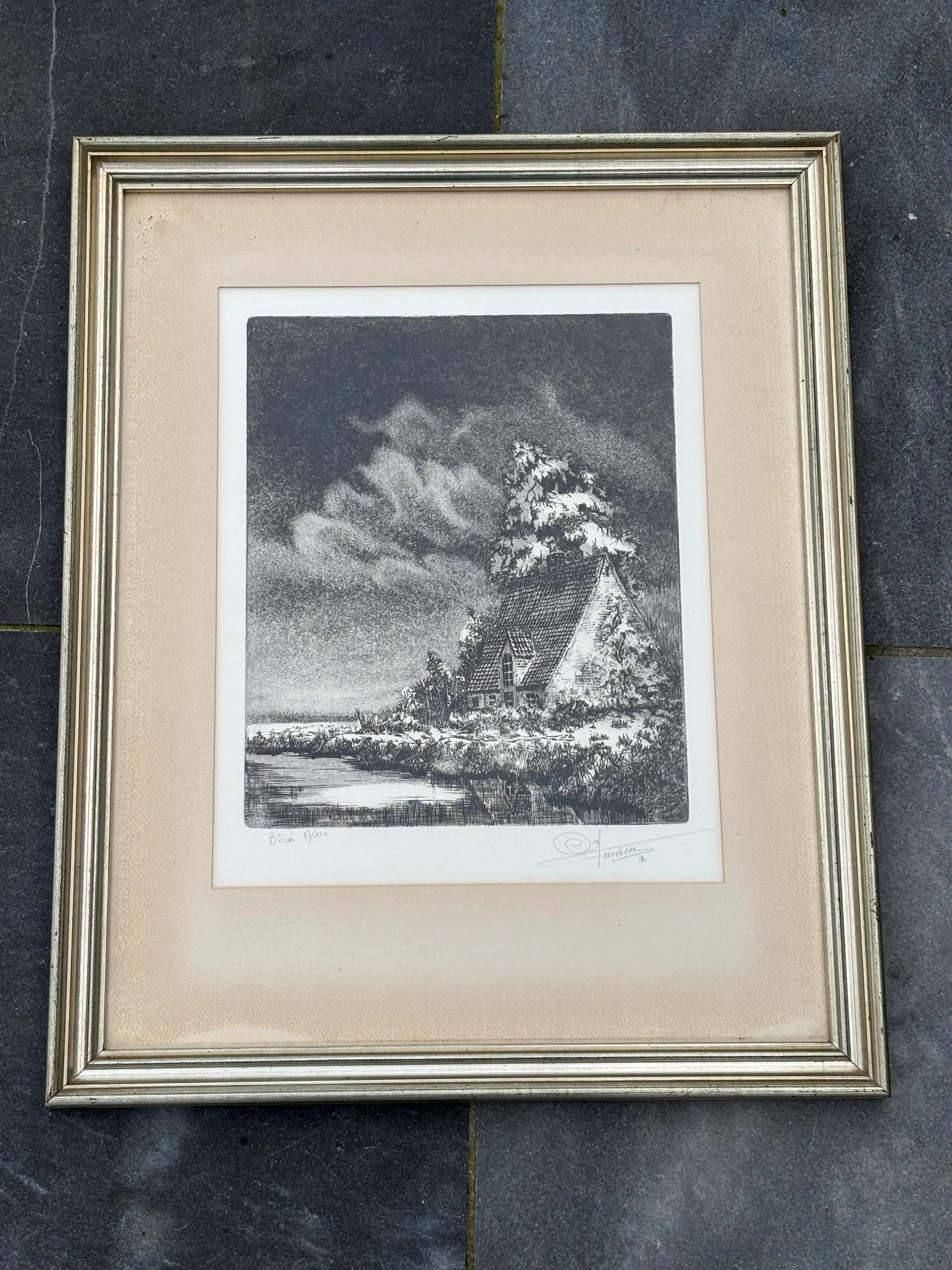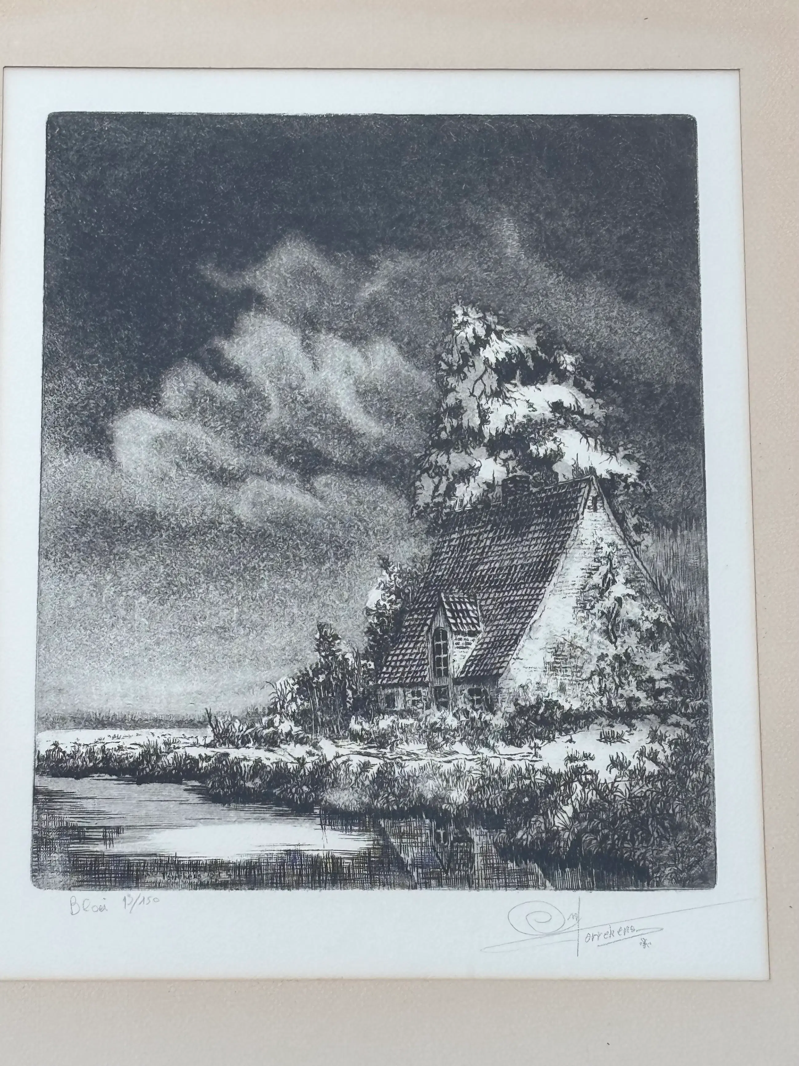 Ets van de Belgische etser en schilder Antoon Torrekens (geboren te Aalst in 1951). Goede staat Gesigneerd in potlood + 13/100 genummerd in potlood + getiteld in potlood “Bloei” Afmetingen met kader 54 x 44 cm zonder kader 29,5 x 24,5