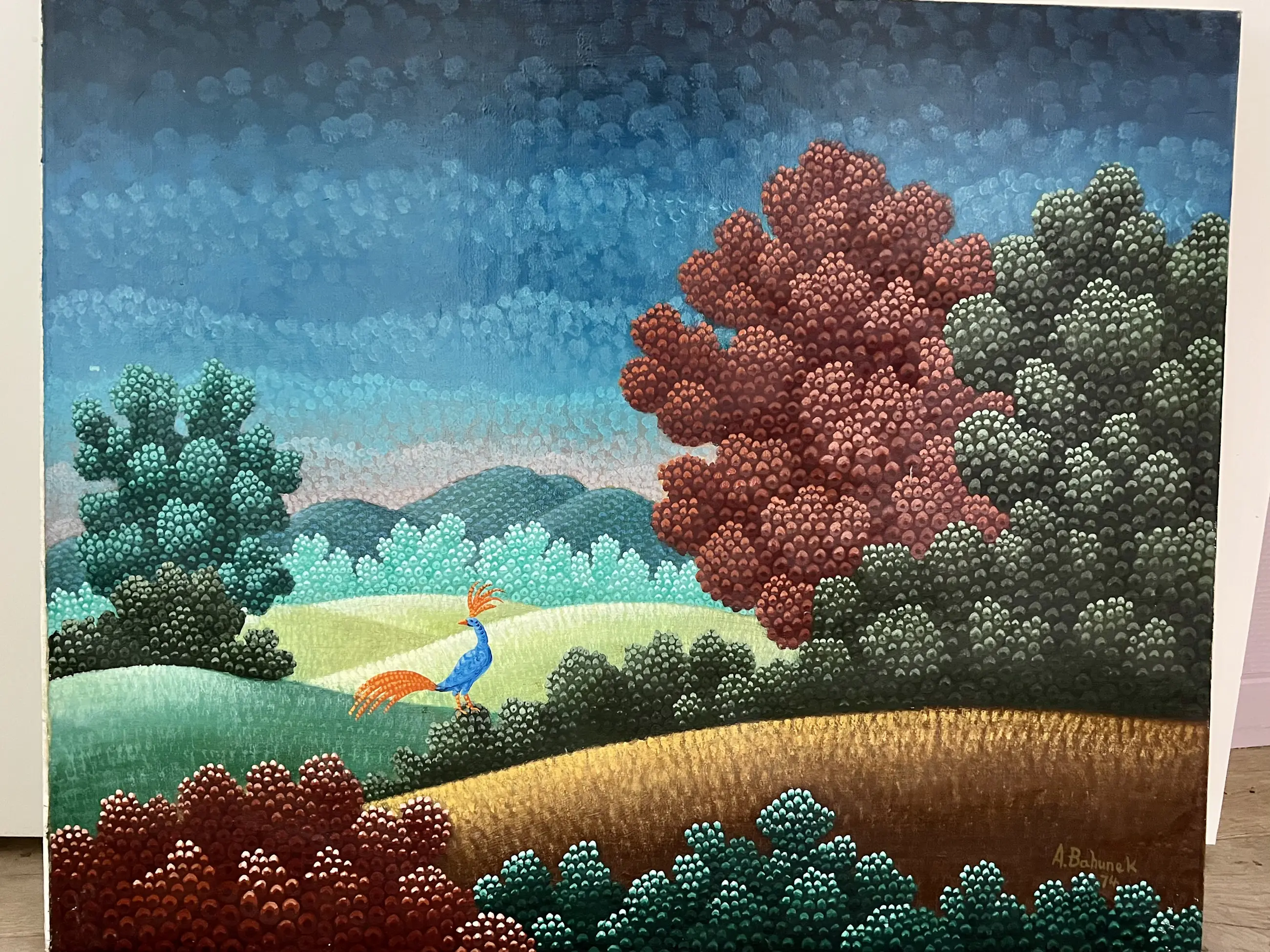 Origineel olieverf schilderij met signatuur 1974 van een landschap
