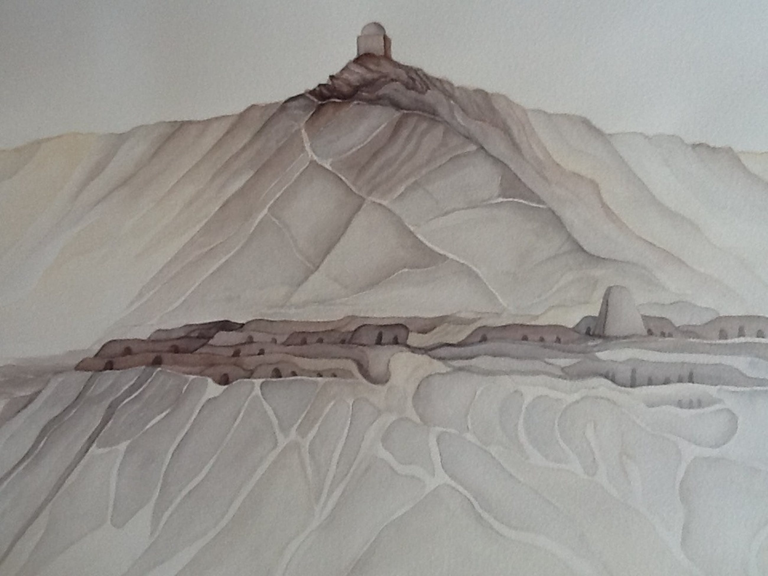 Grote aquarel getiteld ASWAN, 1974