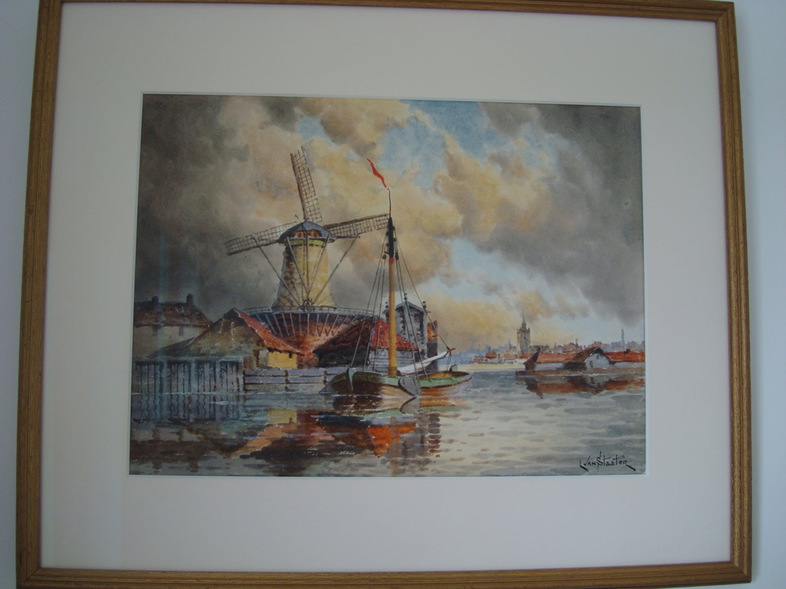Afmeting aquarel 30 cm x 40 cm. Totale afmeting inclusief (orgineel) passe-partout 49 cm x 59 cm. Werk is r.o. gesigneerd met L. van Staaten, een pseudoniem wat hij gebruikte tijdens zijn periode in Londen. Het aquarel verkeert in een bijzonder goede conditie, geen vlekken of verkleuringen etc. zichtbaar. Ook de kleuren zijn erg mooi gebleven. Let wel: dit is een orgineel werk en geen reproductie, litho of iets dergelijks! Het werk is opnieuw ingelijst waarbij gebruik gemaakt is van zuurvrij passe-partoutkarton. Dat geldt zowel voor het passe-partout als voor het opvulkarton en het achterkarton dat bij inlijsten wordt toegepast. Ook is de glasplaat vervangen door museumglas 92% UV-werend. Museumglas is gemaakt van een extra heldere glassoort. Hierdoor komen de kleuren veel mooier tot uiting. Het heeft tevens een anti-reflexlaag, waardoor het niet spiegelt. Alle rekeningen worden bij aankoop meegeleverd.