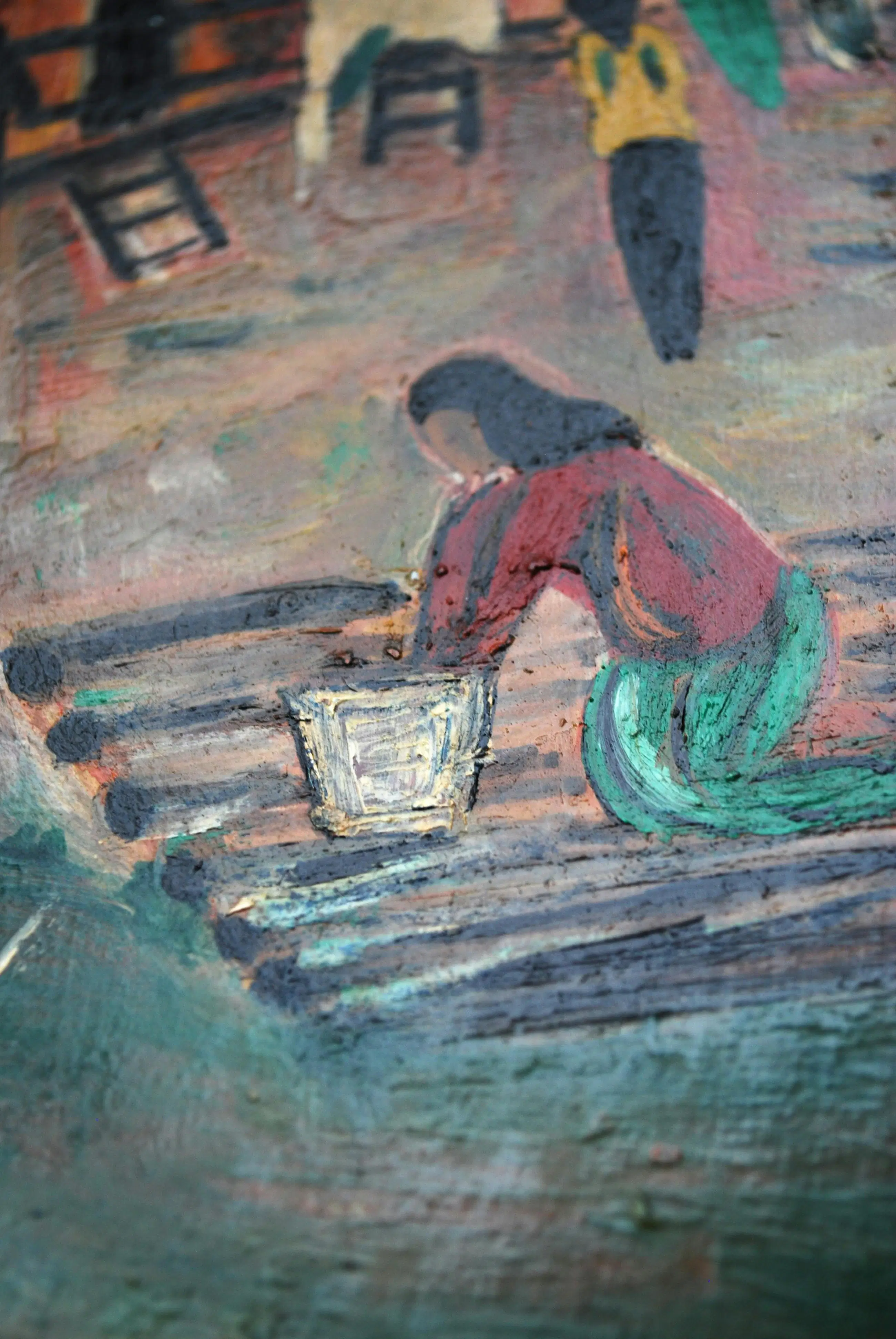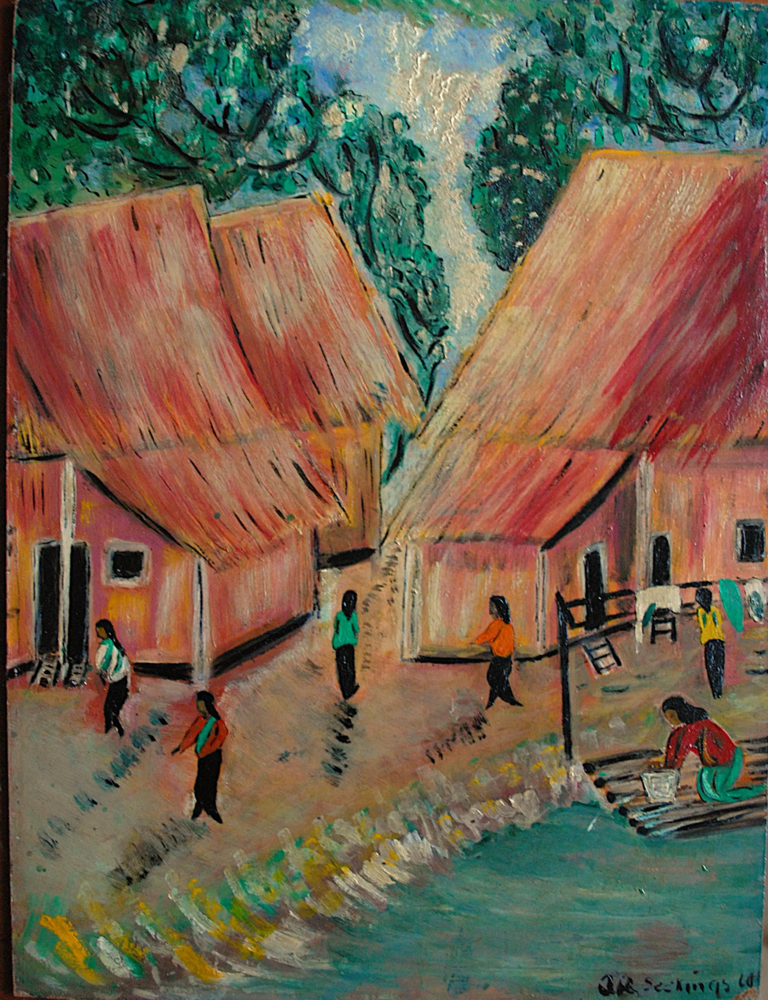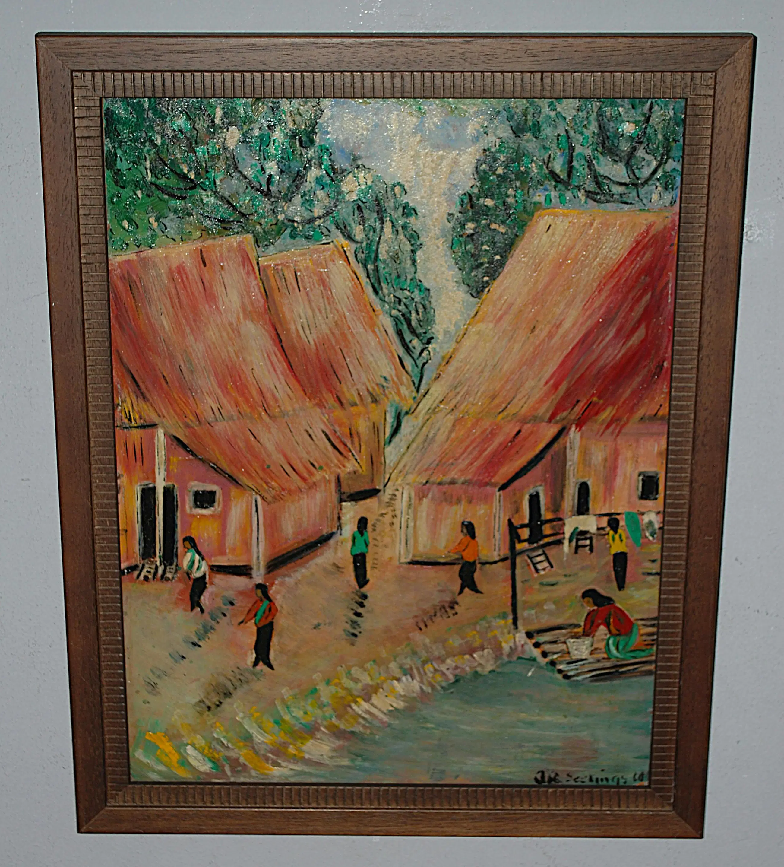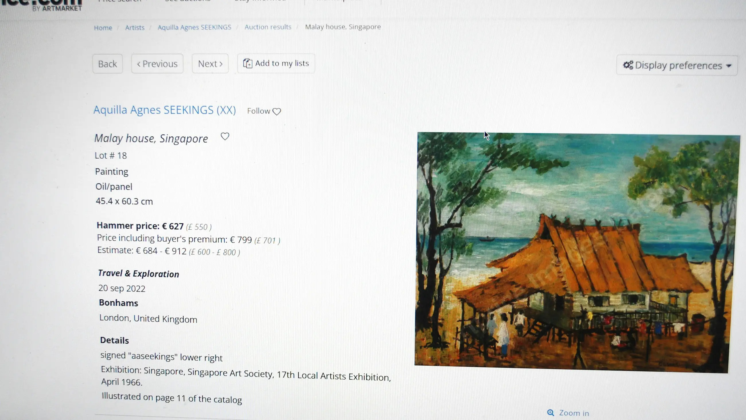 Board, geplaatst in in mooie houten lijst. Gesigneerd r.o. Jaartal is/lijkt op '66. Mogelijk was dit schilderij onderdeel van een expositie in Singapore van de Singapore Art Society in 1966. Toegevoegd ter illustratie: een tweetal recente taxaties en veilingresultaten.