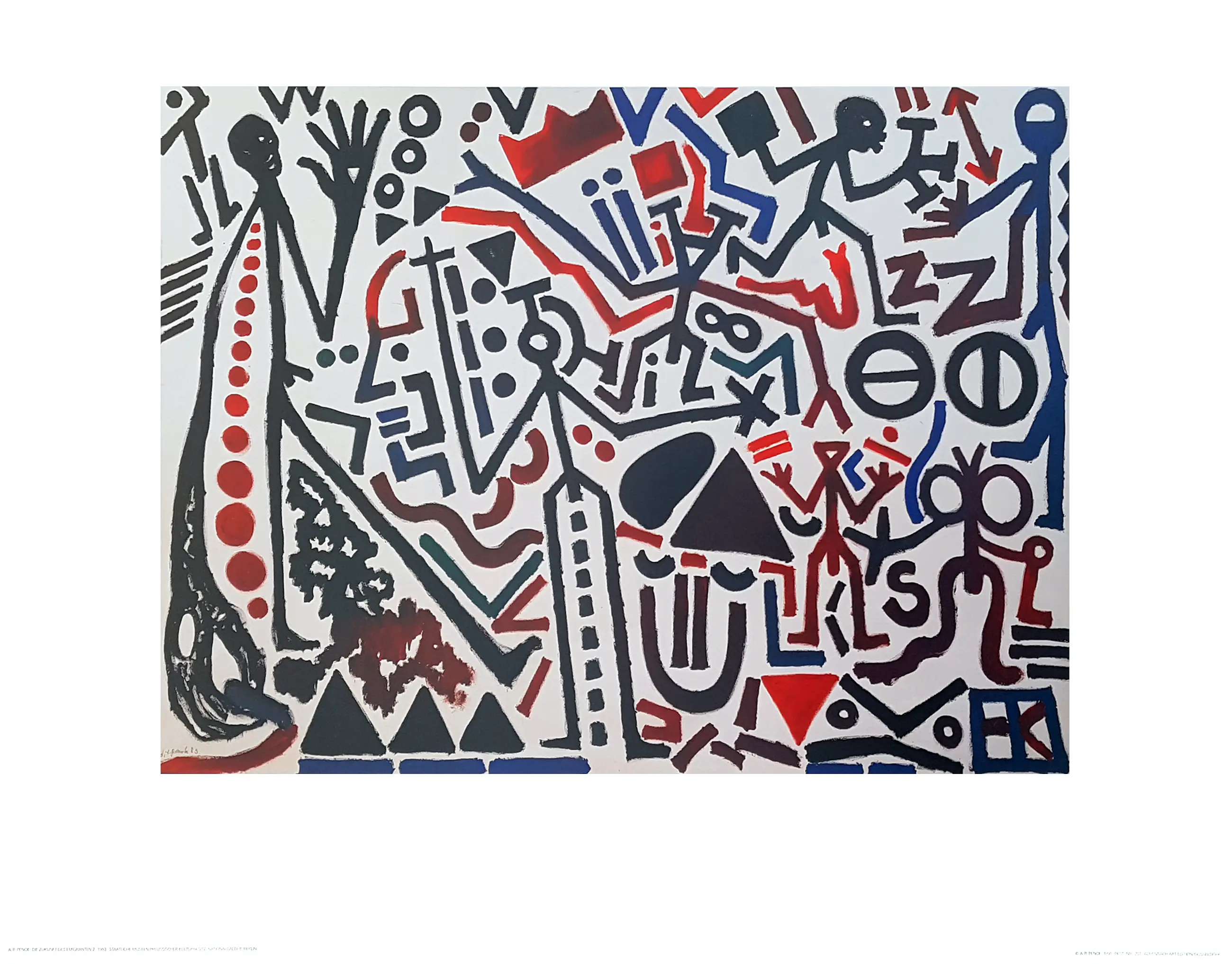 Motief: 50 x 67 cm op 70 x 90 cm wit, mat gecoat karton (ca. 210 g/m²), kleine informatie over de kunstenaar, titel en copyright op de onderste rand van het vel