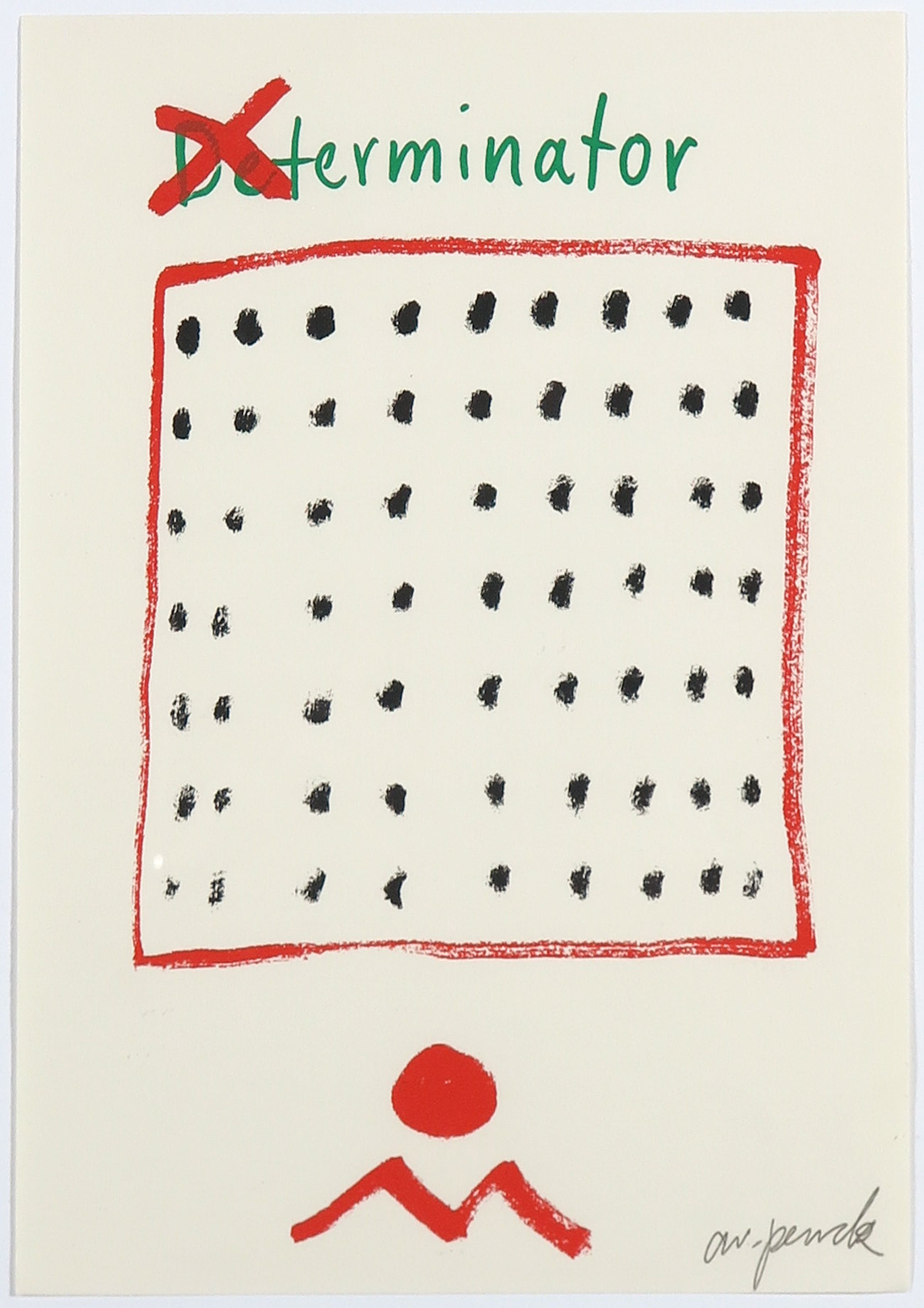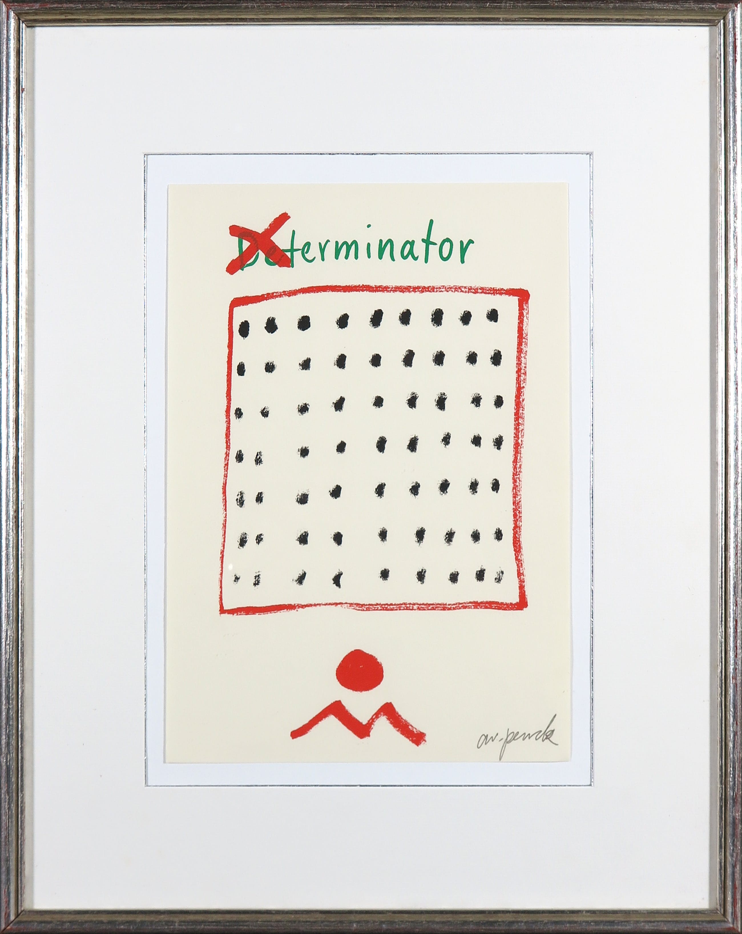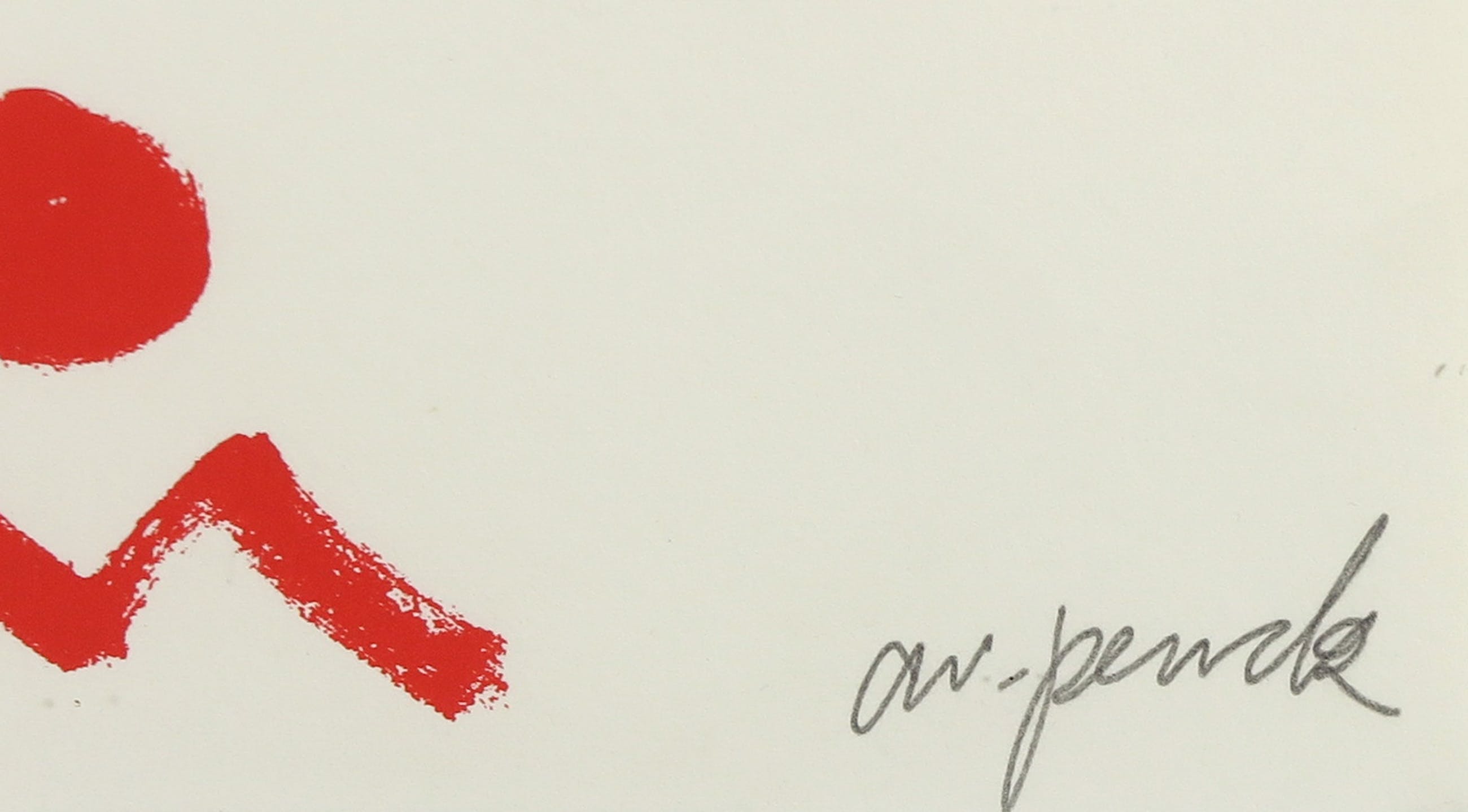 Netjes ingelijste litho, handgesigneerd door Penck. Ingelijst in zilverkleurige houten lijst met passe-partout met zilverkleurige rand.