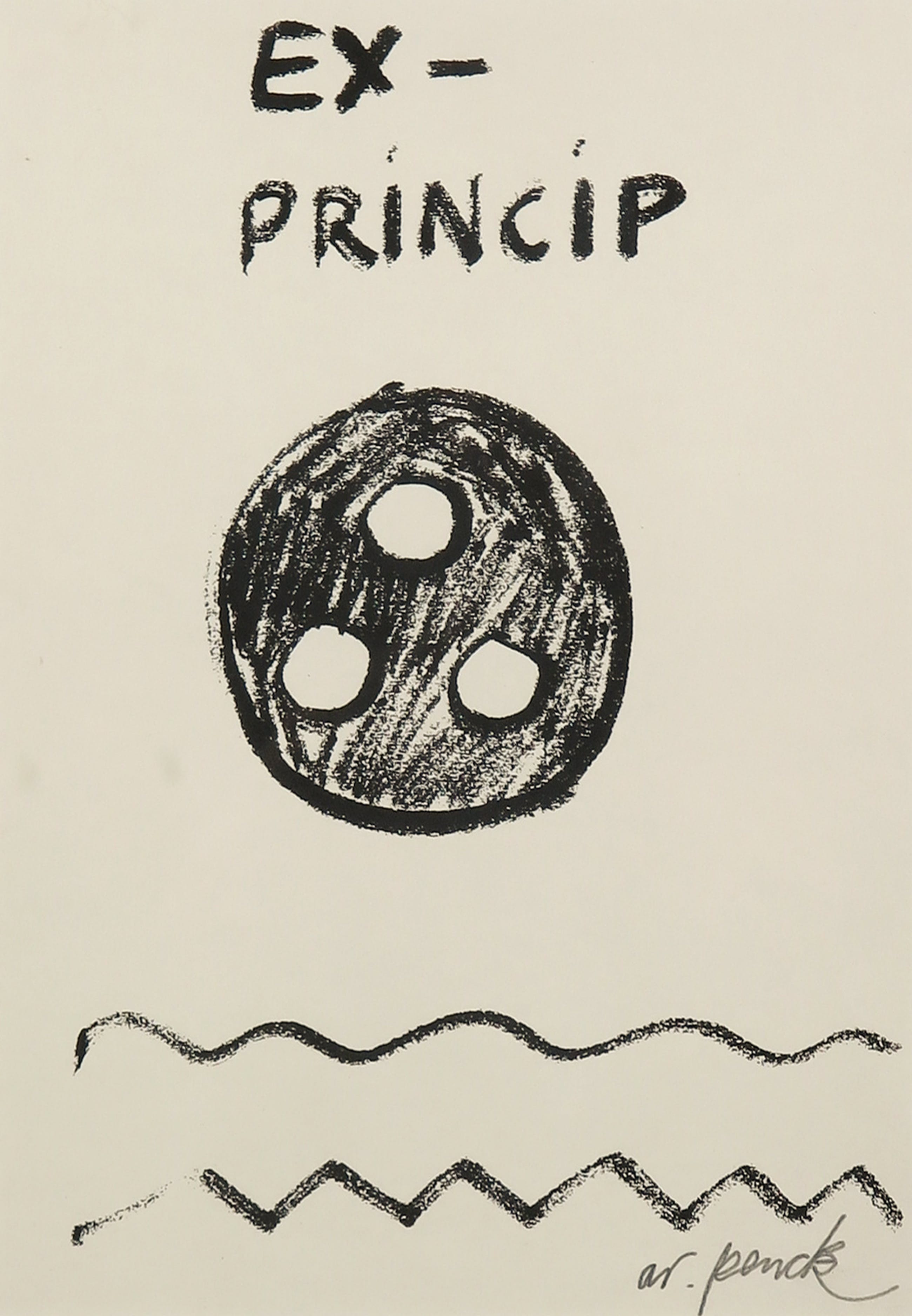 Zeldzame handgesigneerde litho, getiteld Ex-Princip. Deze litho komt uit een serie van 200 exemplaren, waarvan maar een klein aantal met de hand gesigneerd is.