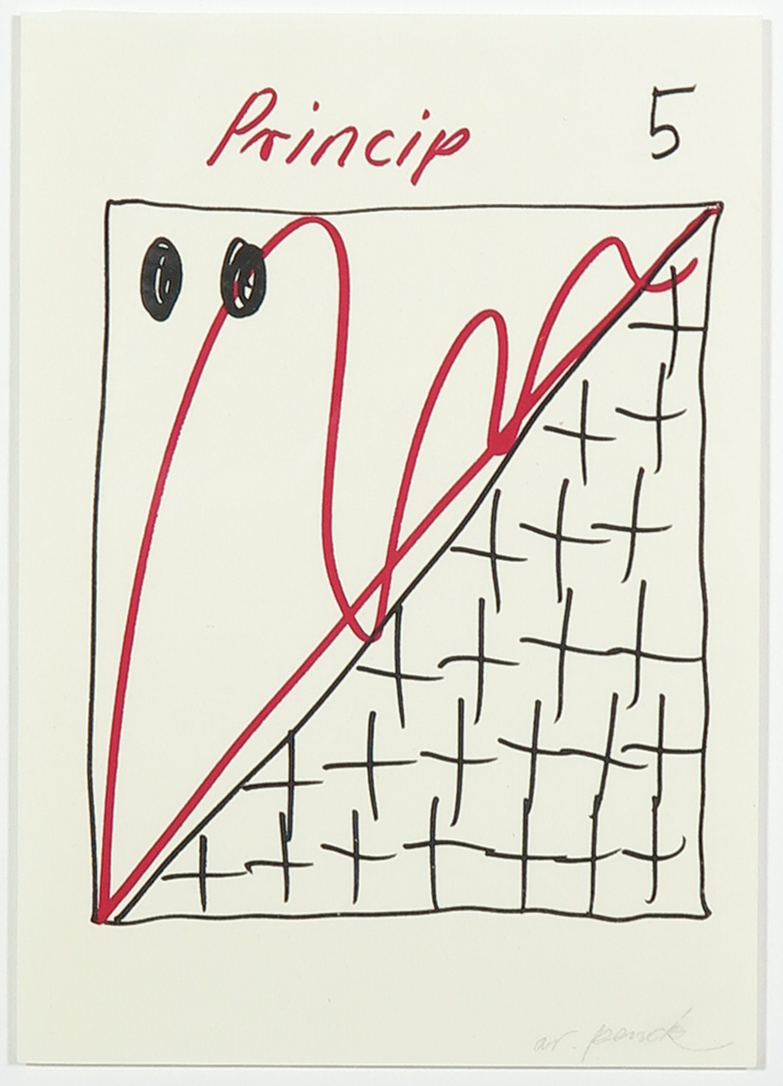 Zeldzame handgesigneerde litho, getiteld Princip 5. Deze litho komt uit een serie van 200 exemplaren, waarvan maar een klein aantal met de hand gesigneerd is.