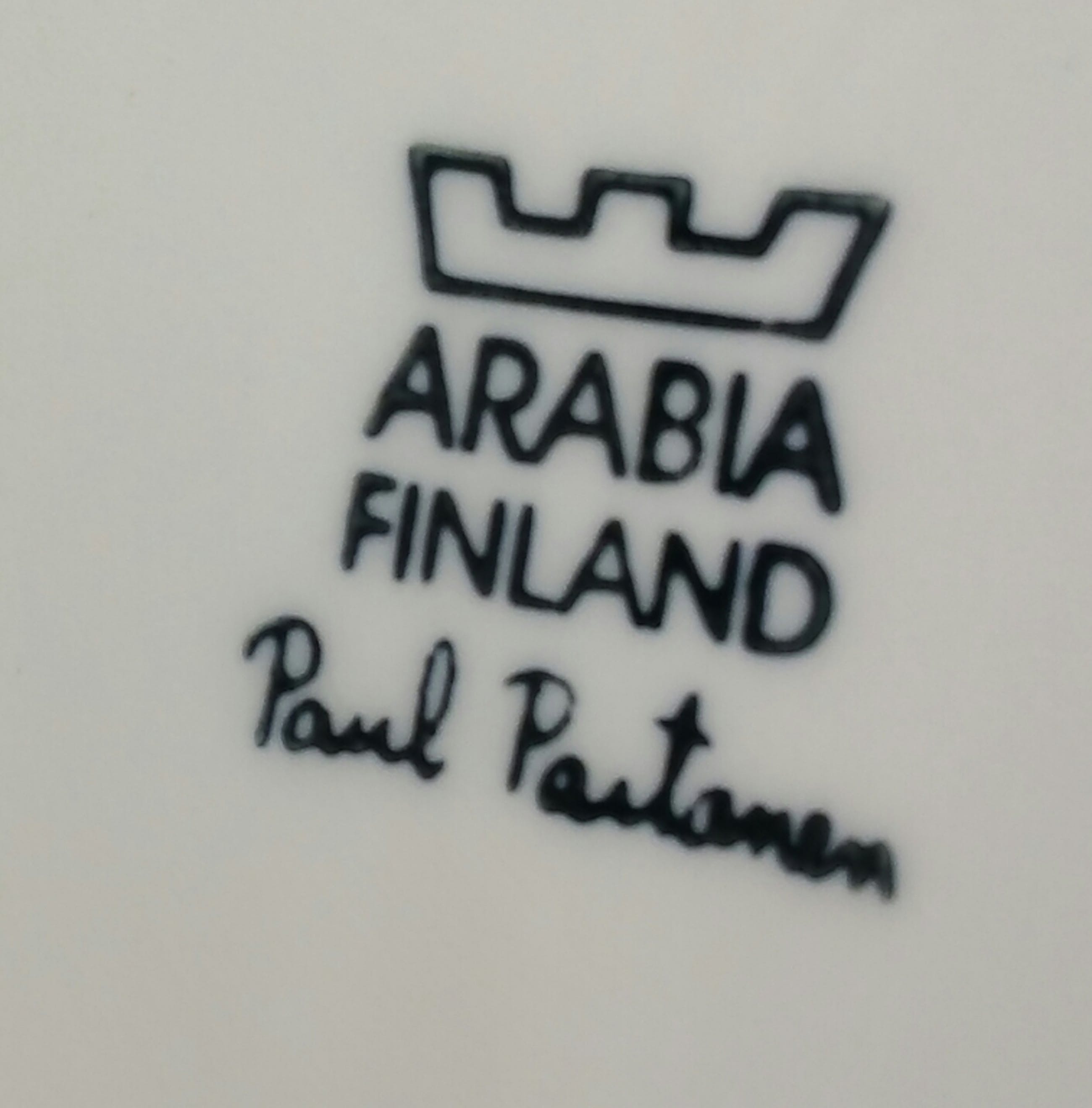 Abstracte design vaas van Arabia. Hoogte 25 cm. In uitstekende conditie. Gemerkt en signatuur van ontwerper Paul Partanen.