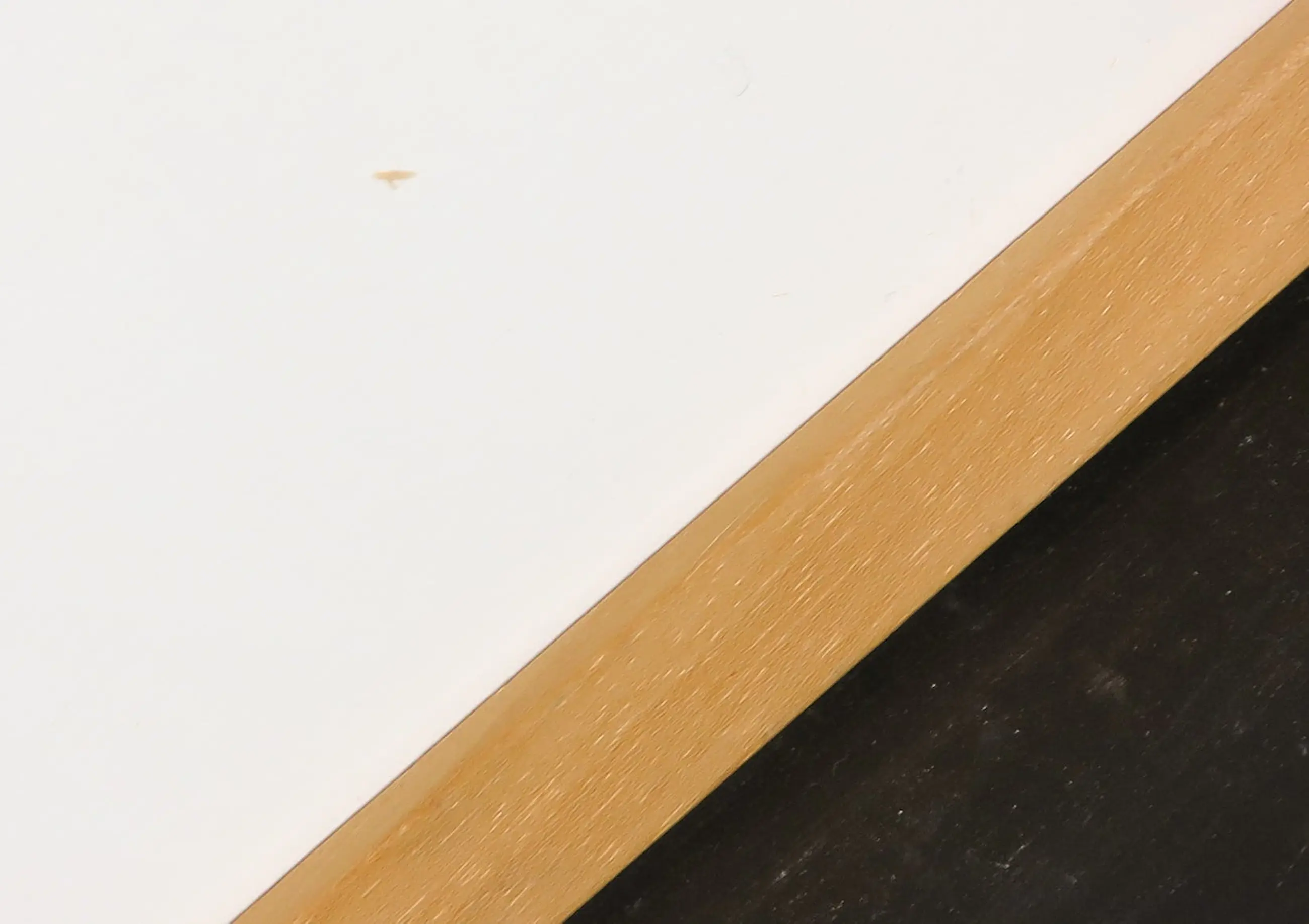 | Enkele vuiltjes achter de (plexi)glasplaat. Daarnaast een restant van een sticker. | |
