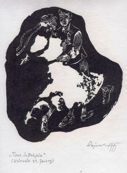 Archibald Bajorat - Kalevala 21. Gesang, Tanz in Pohjola. Holzschnitt, 1975