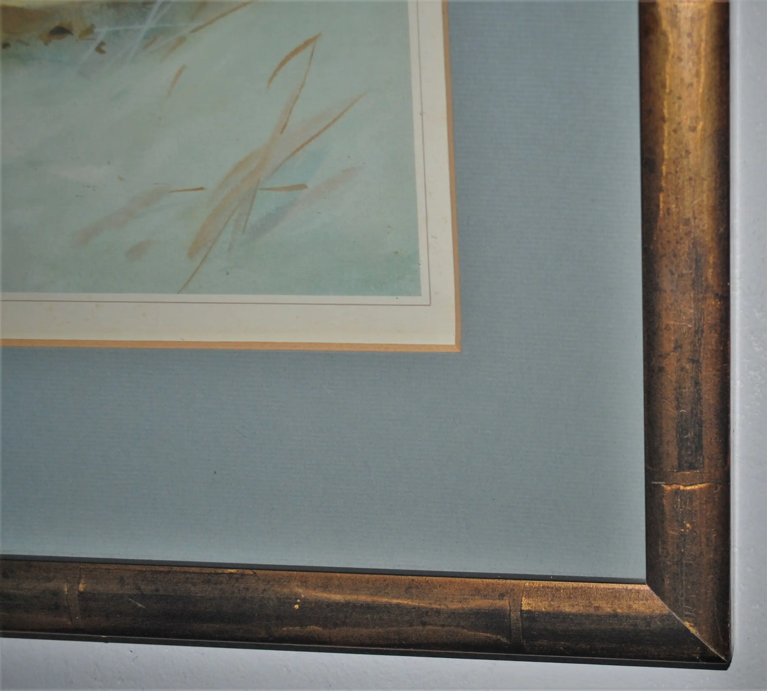 Achter glas, in een fraaie houten lijst met lichte slijtschade.