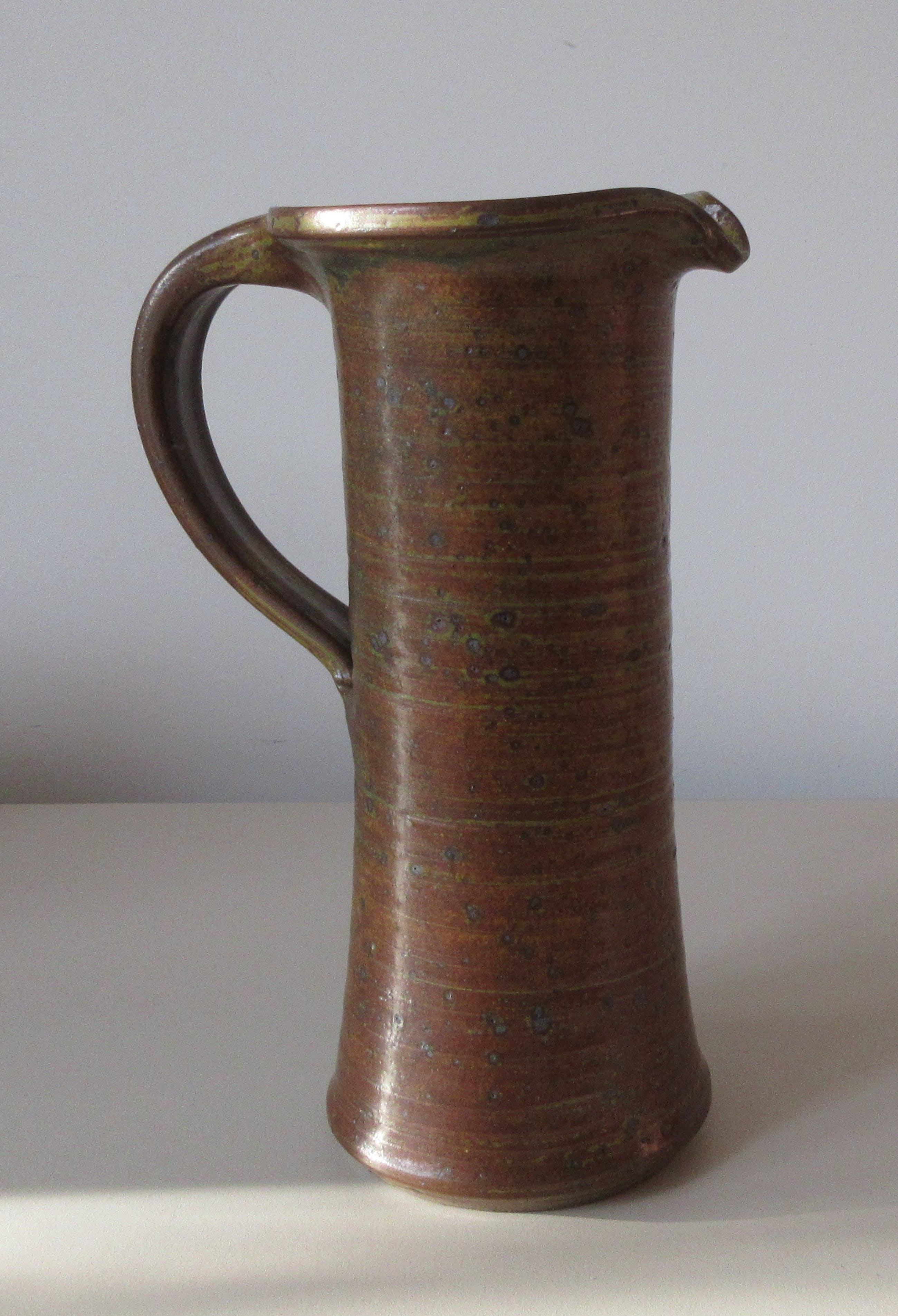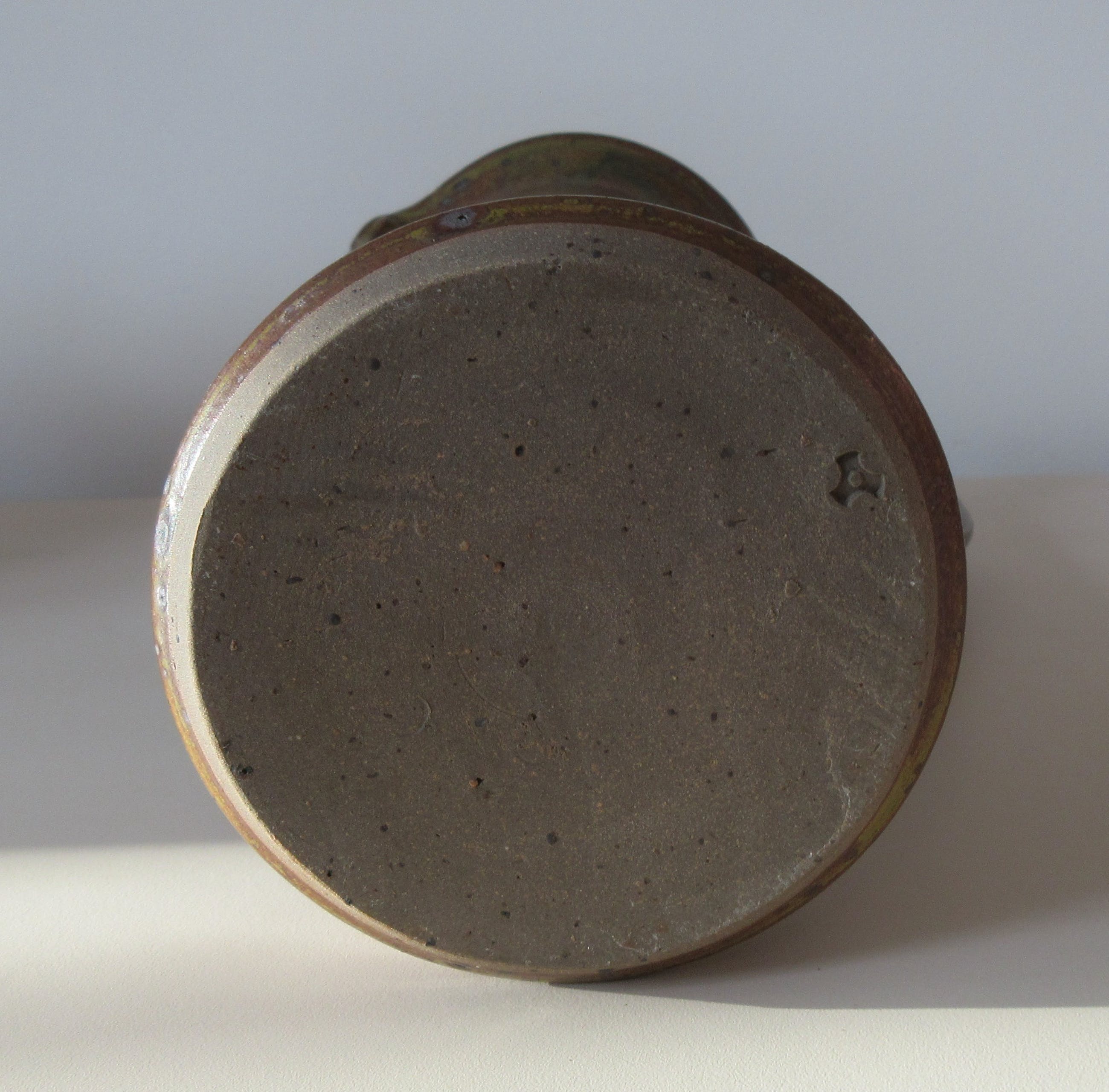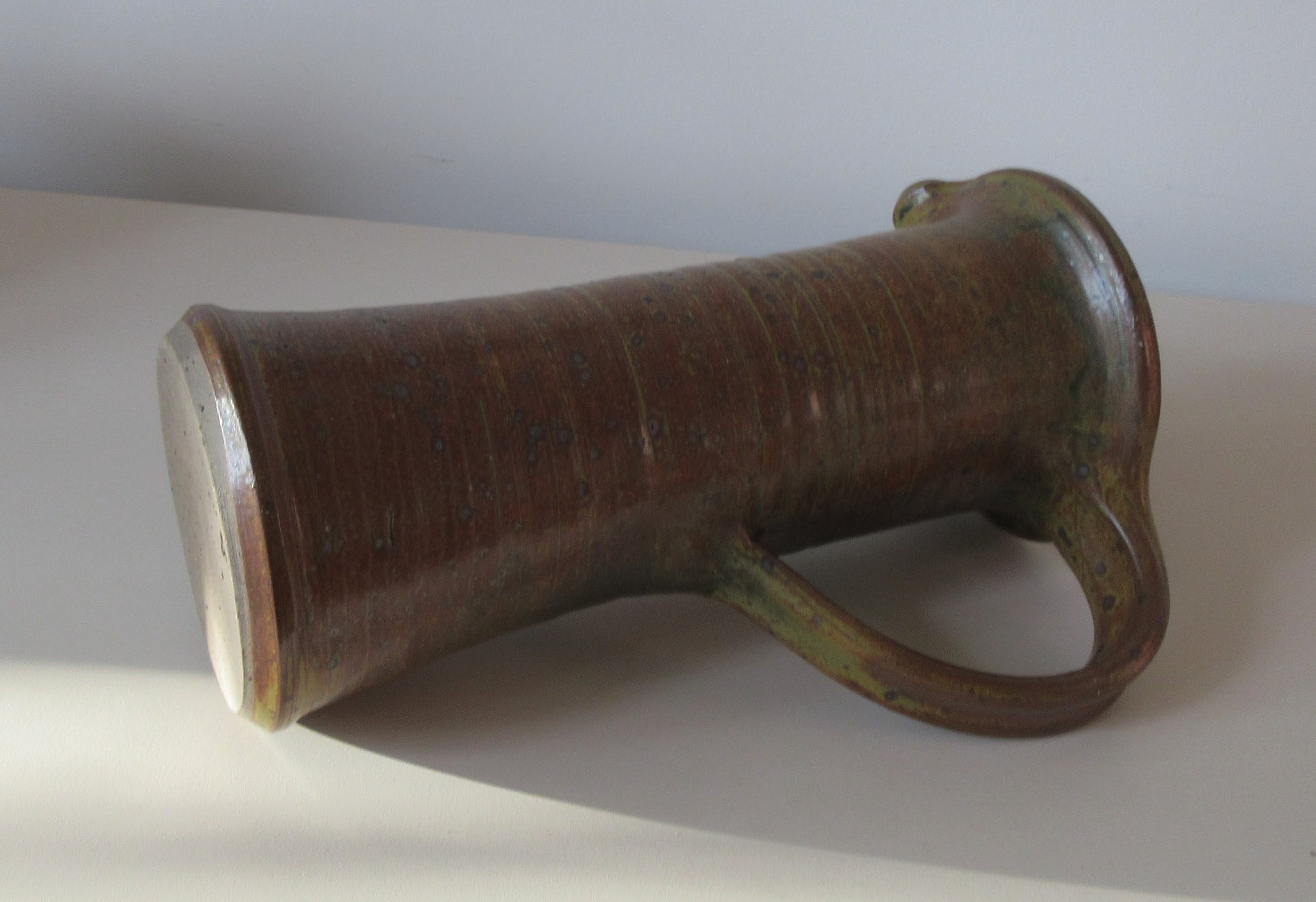 Steengoed kan met bruin groen mat glazuur gemaakt in eigen Atelier De Ringeloor door kunstenares Ardine Spitters. De kan is perfecte conditie en voorzien van ingedrukt merk.