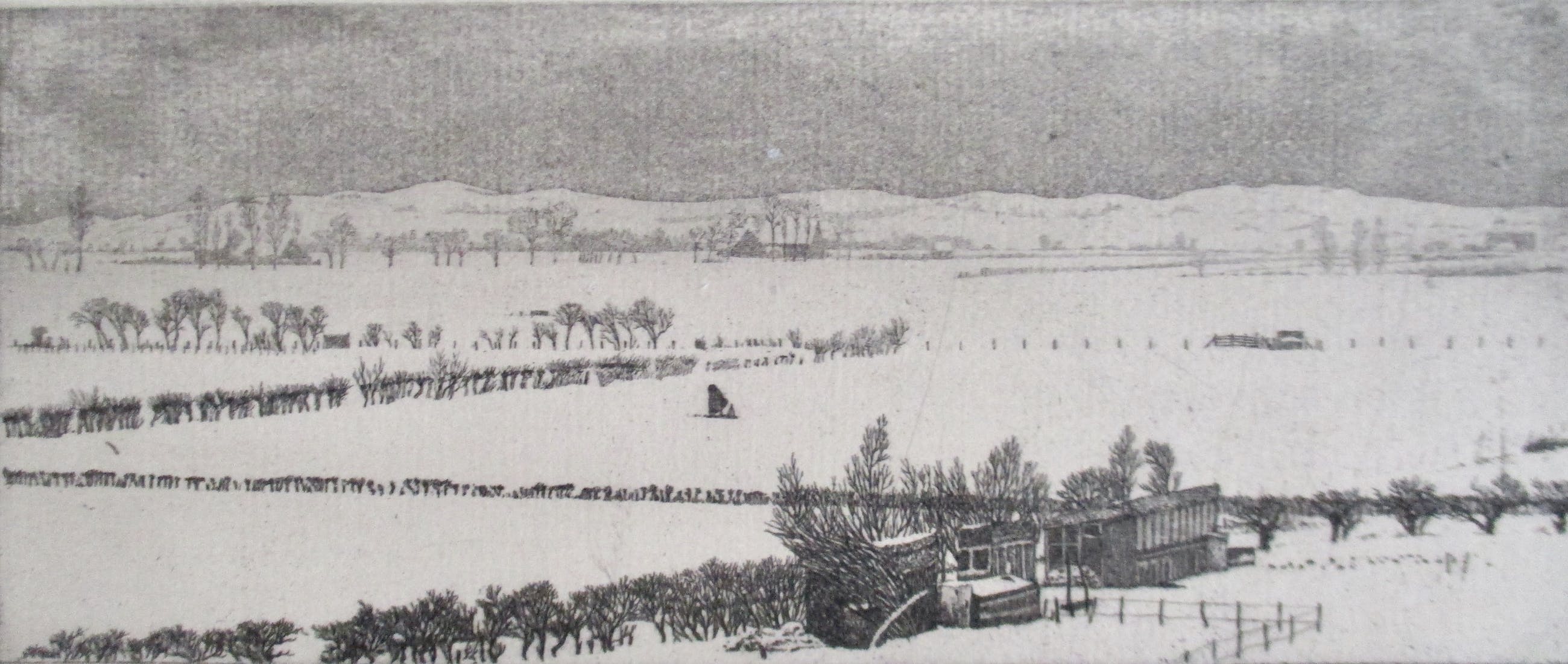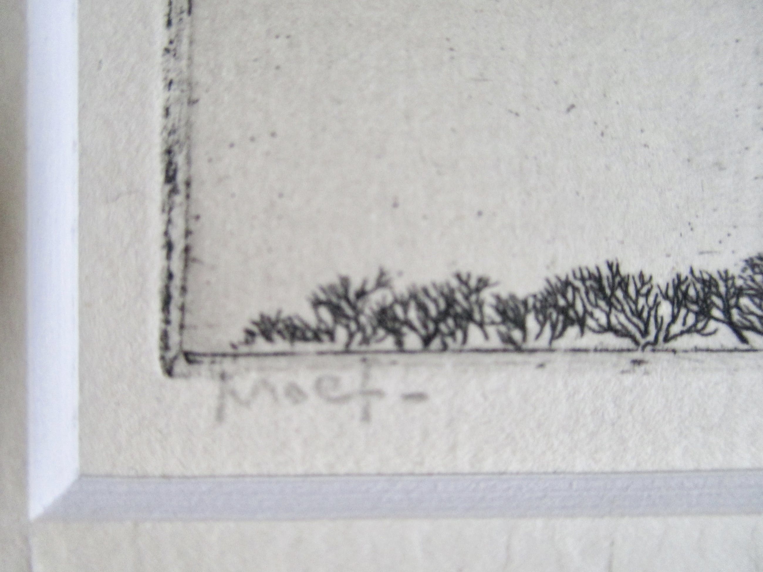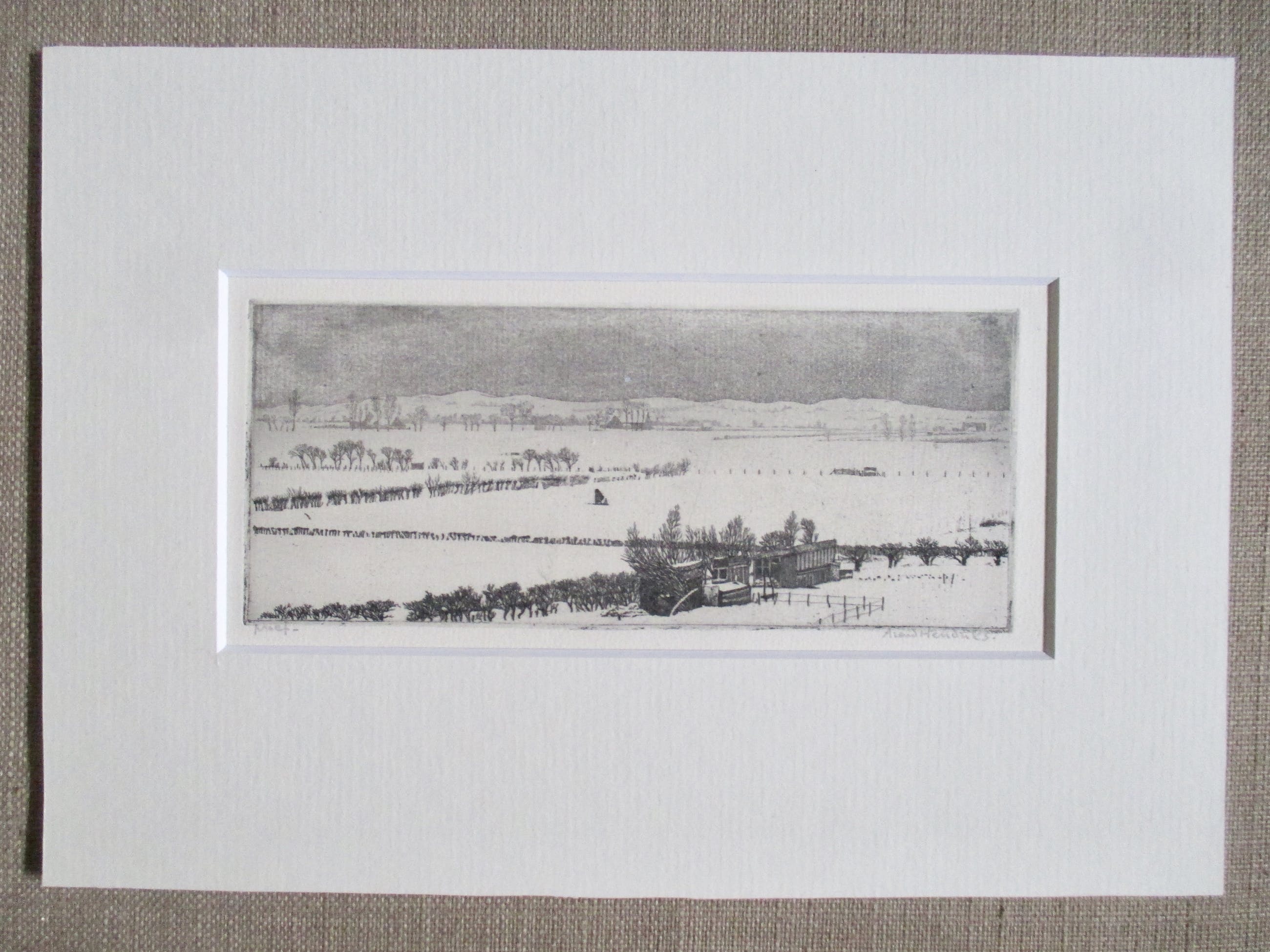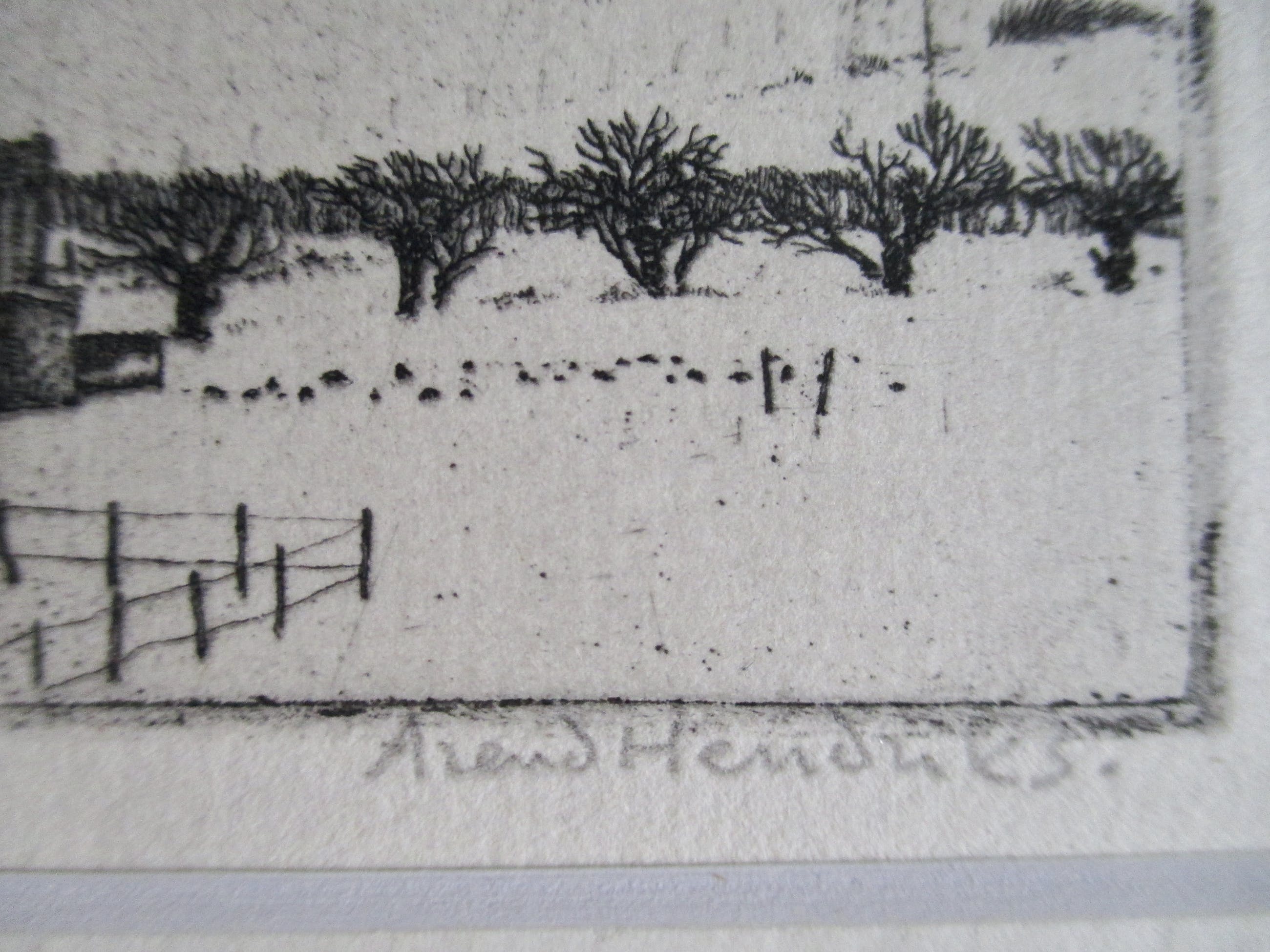 Ets van Arend Hendriks, gesigneerd in potlood. geplaatst (getipt) in passe-partout. verzending tussen twee plaatjes, 5,10