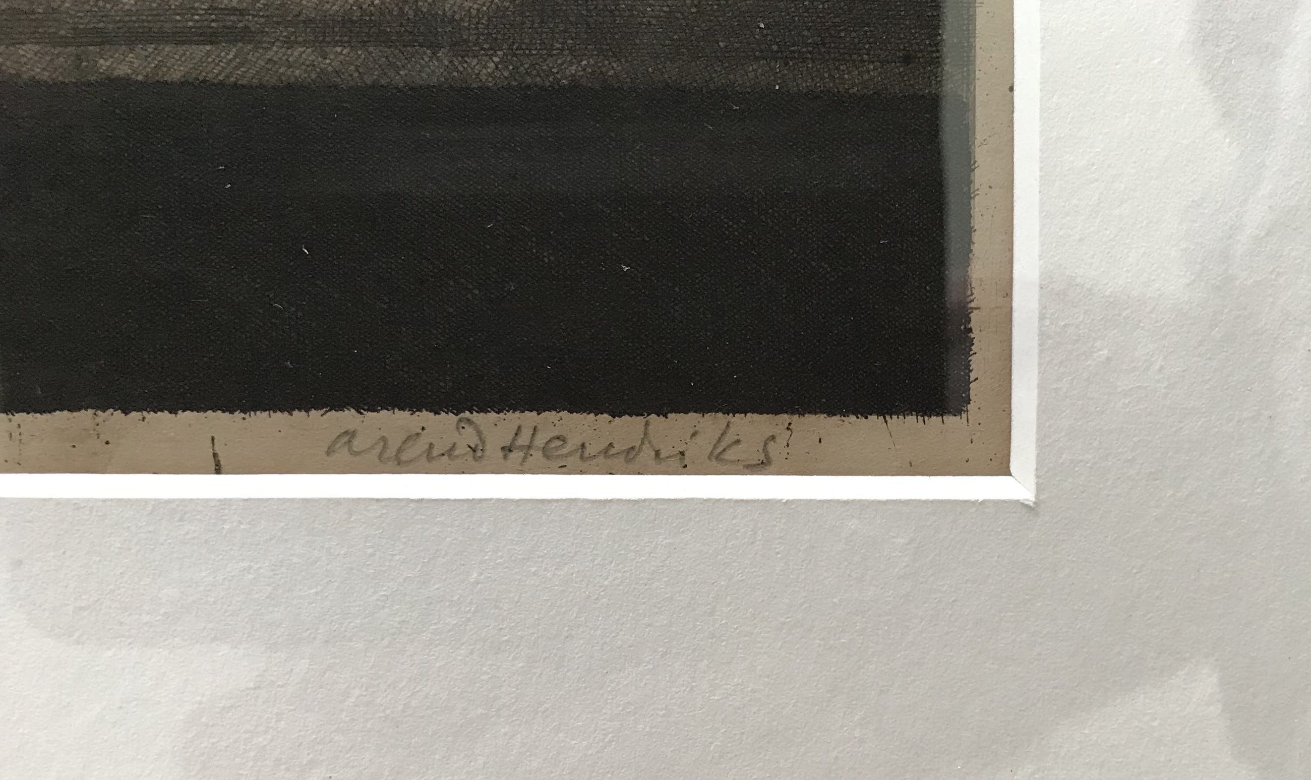 Een verfijnde en zeer gedetailleerde ets/aquatint van Arend Hendriks, meester-etser uit de eerste helft van de vorige eeuw. Ingelijst met een smetteloos zuurvrij passe-partout.