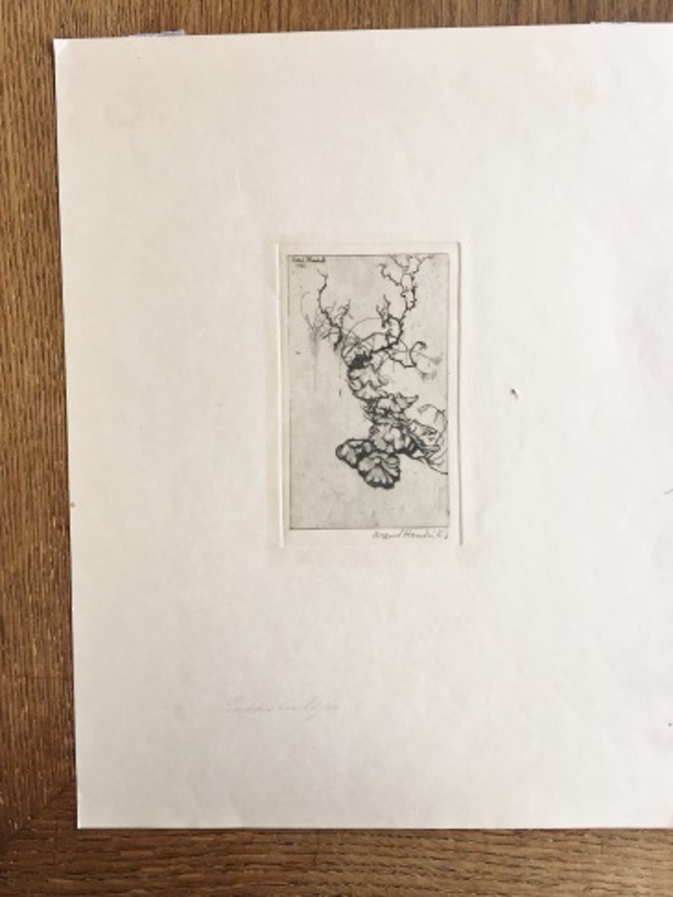 “Paddestoeltjes”, ets 11 x 6,3 cm, gesigneerd “Arend Hendriks 1923” in de