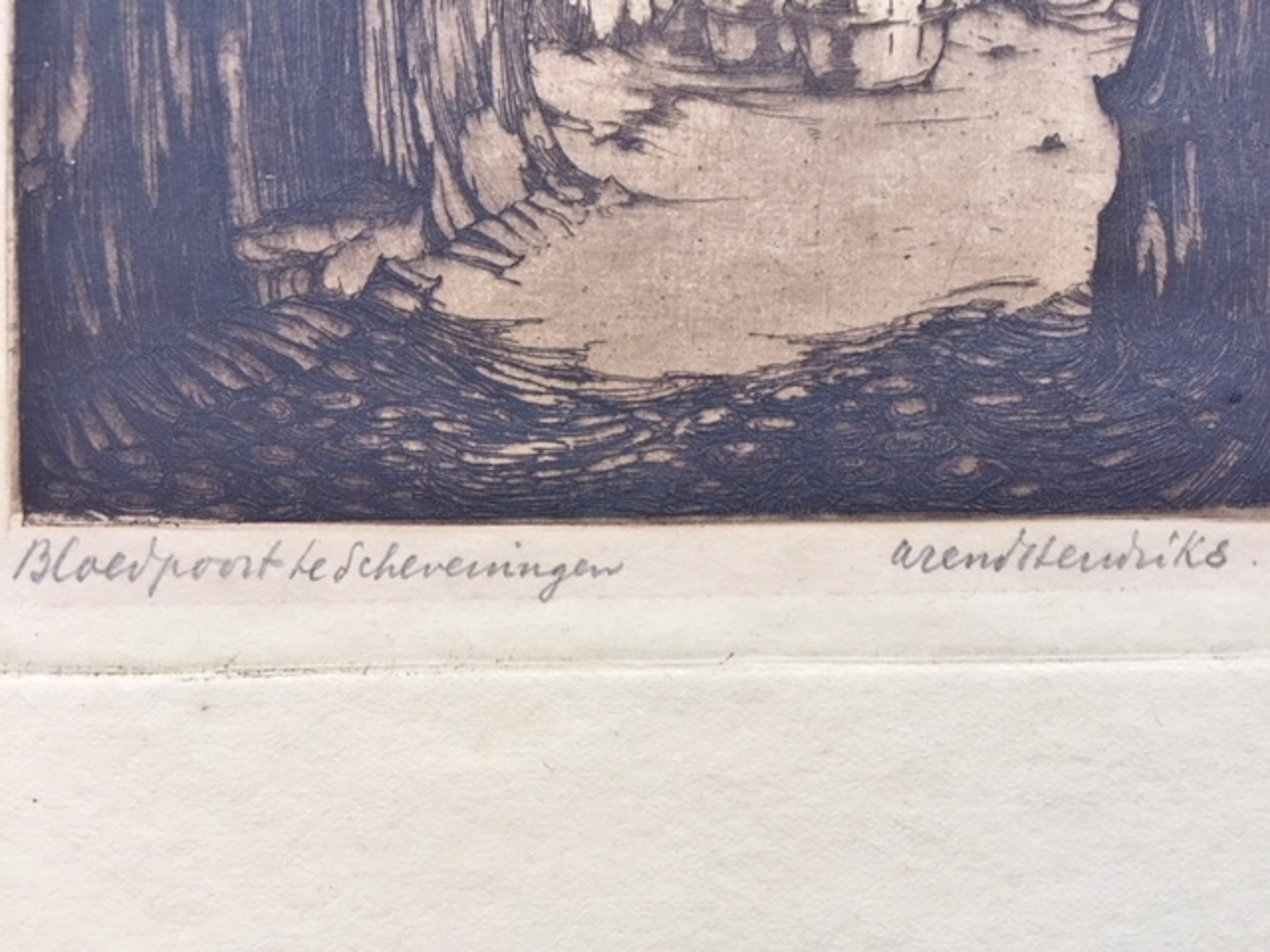 cm, gesigneerd in potlood r.o. en signatuur “Arend Hendriks” in de plaat,