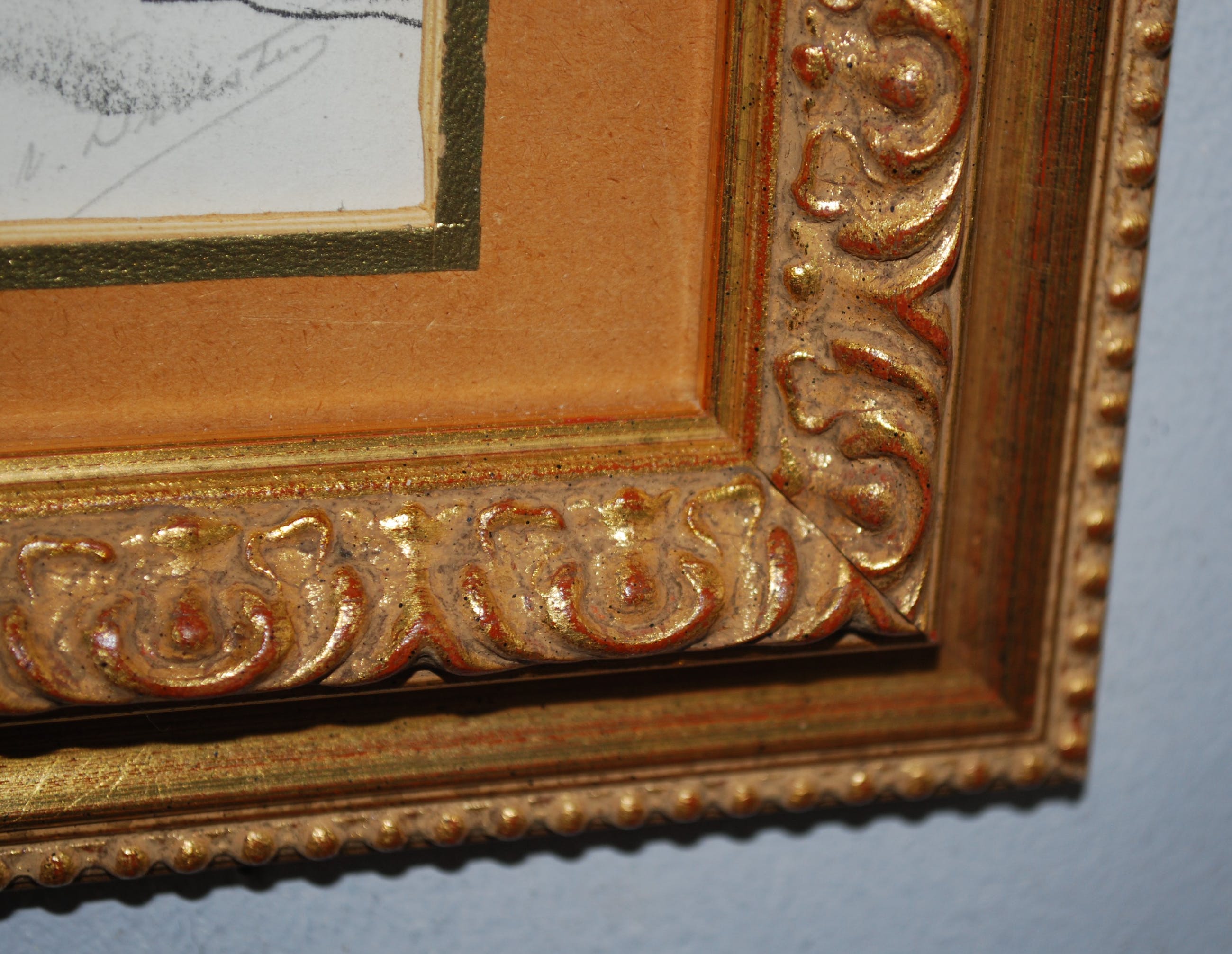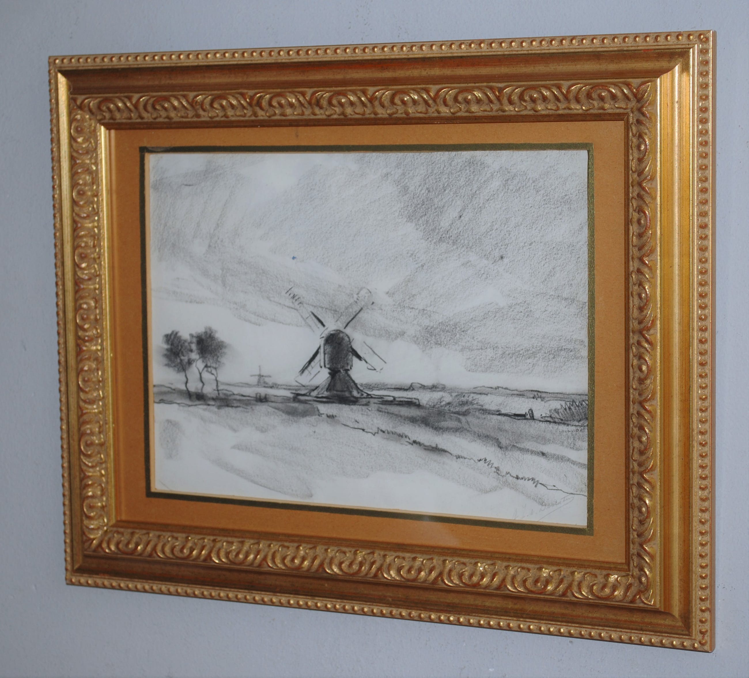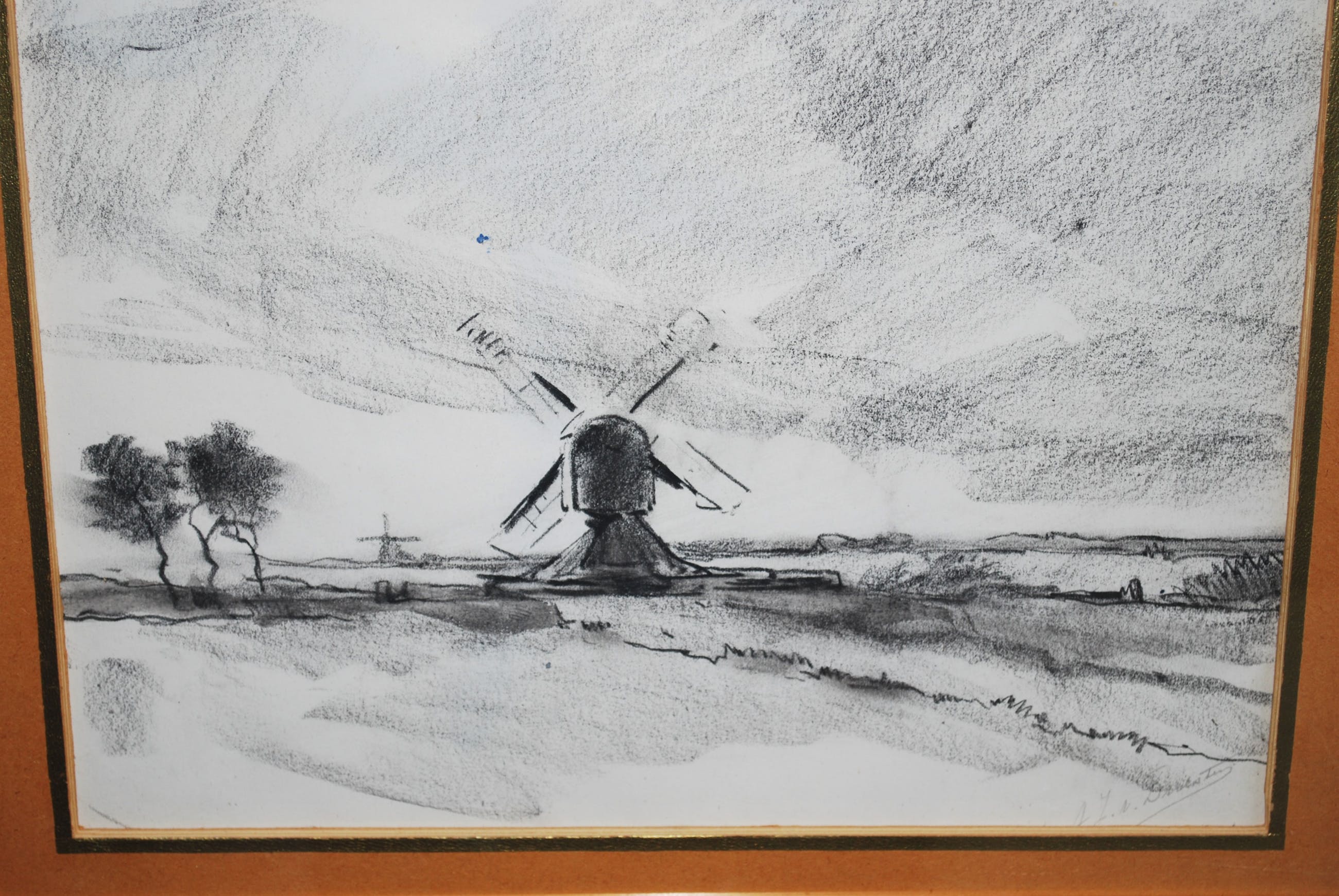 Blad is licht bevestigd achter het originele passepartout. Het blad is ontzuurd en is niet (meer) vergeeld. Potlood gesigneerd r.o.