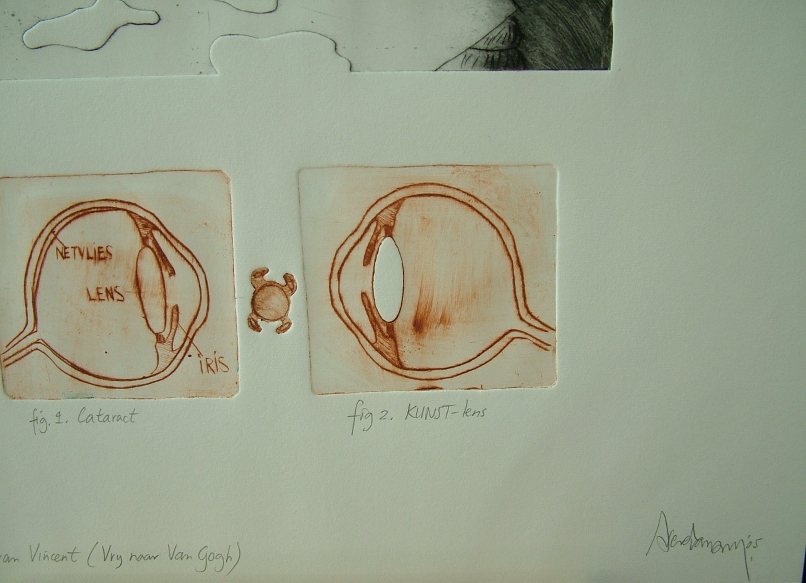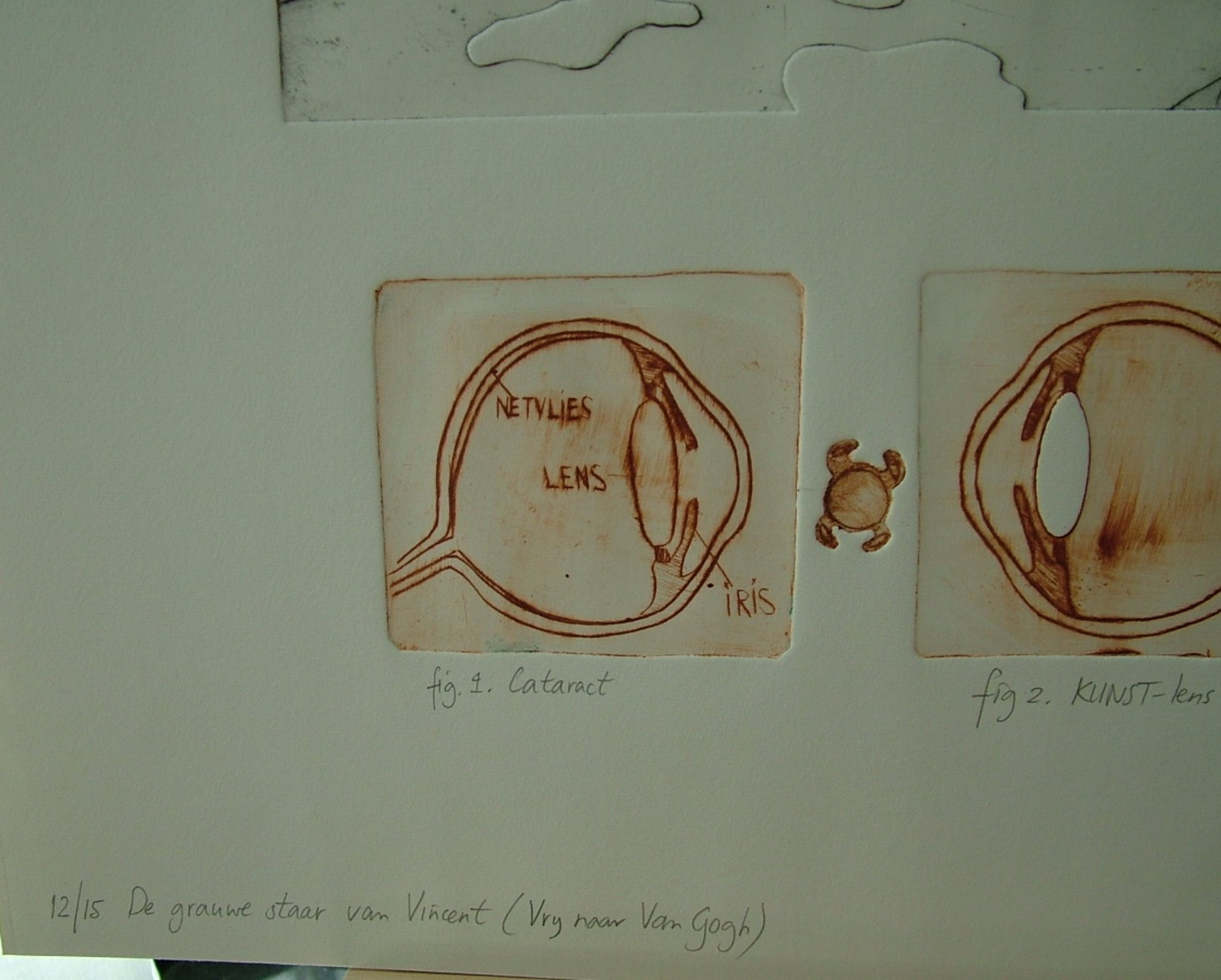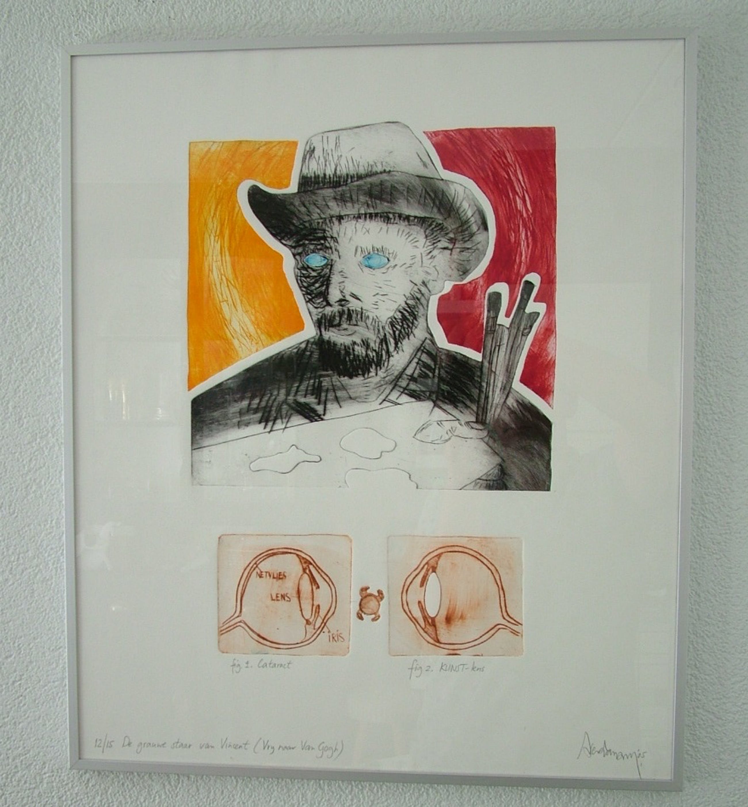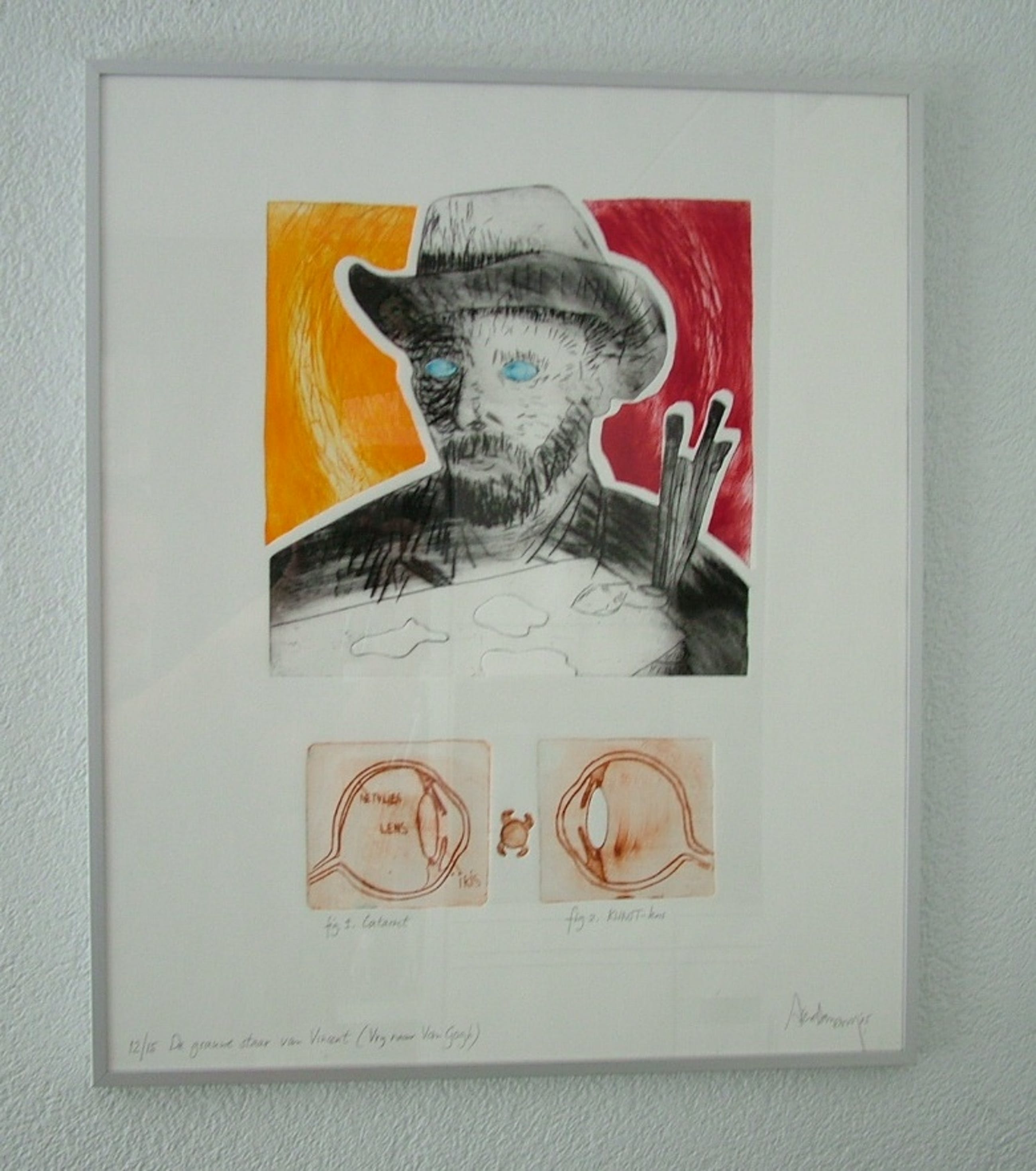 1 x Arend Gideon van Dam Kleuren ets op papier, getiteld "De grauwe staar van Vincent" 9/15