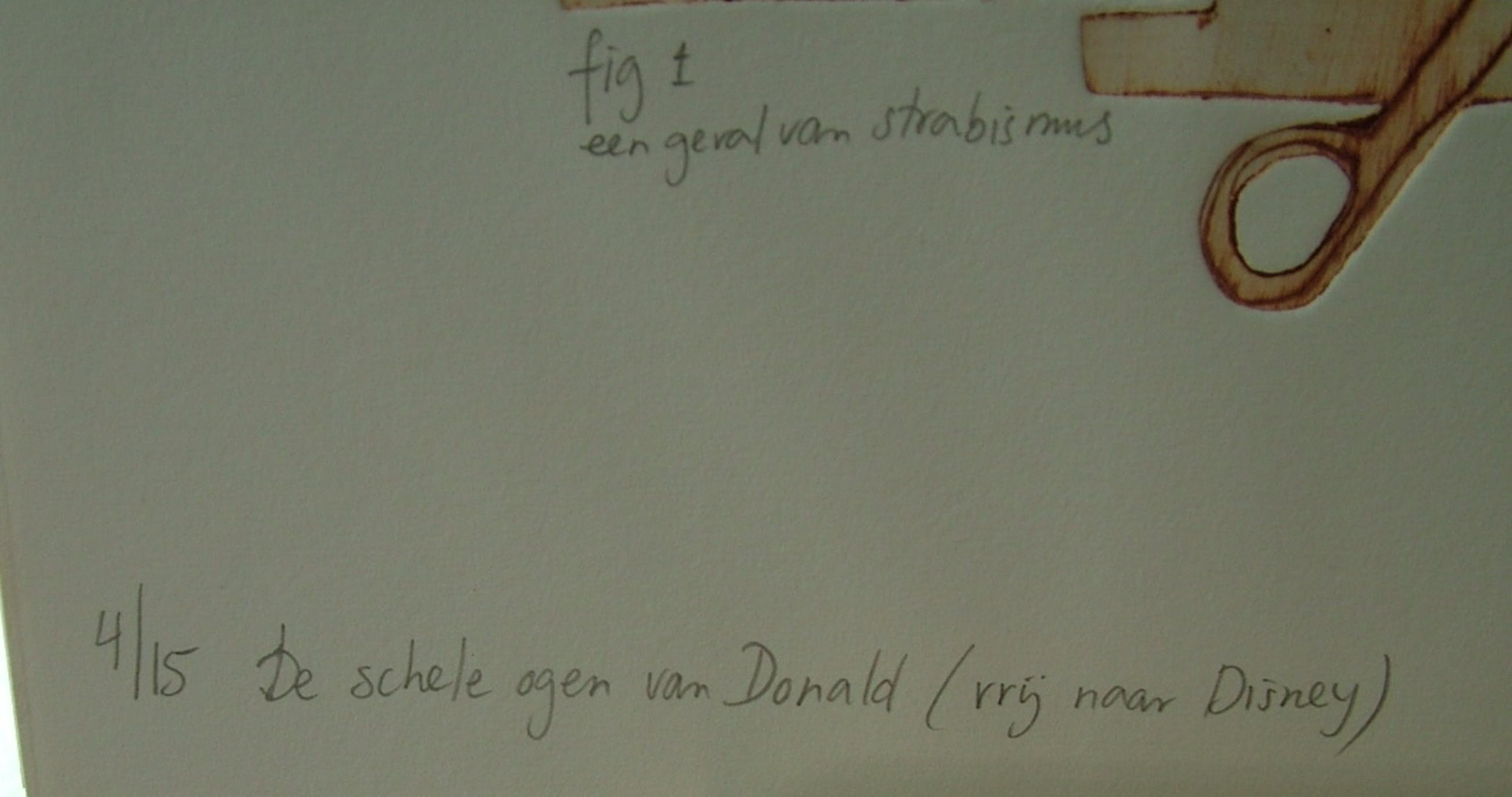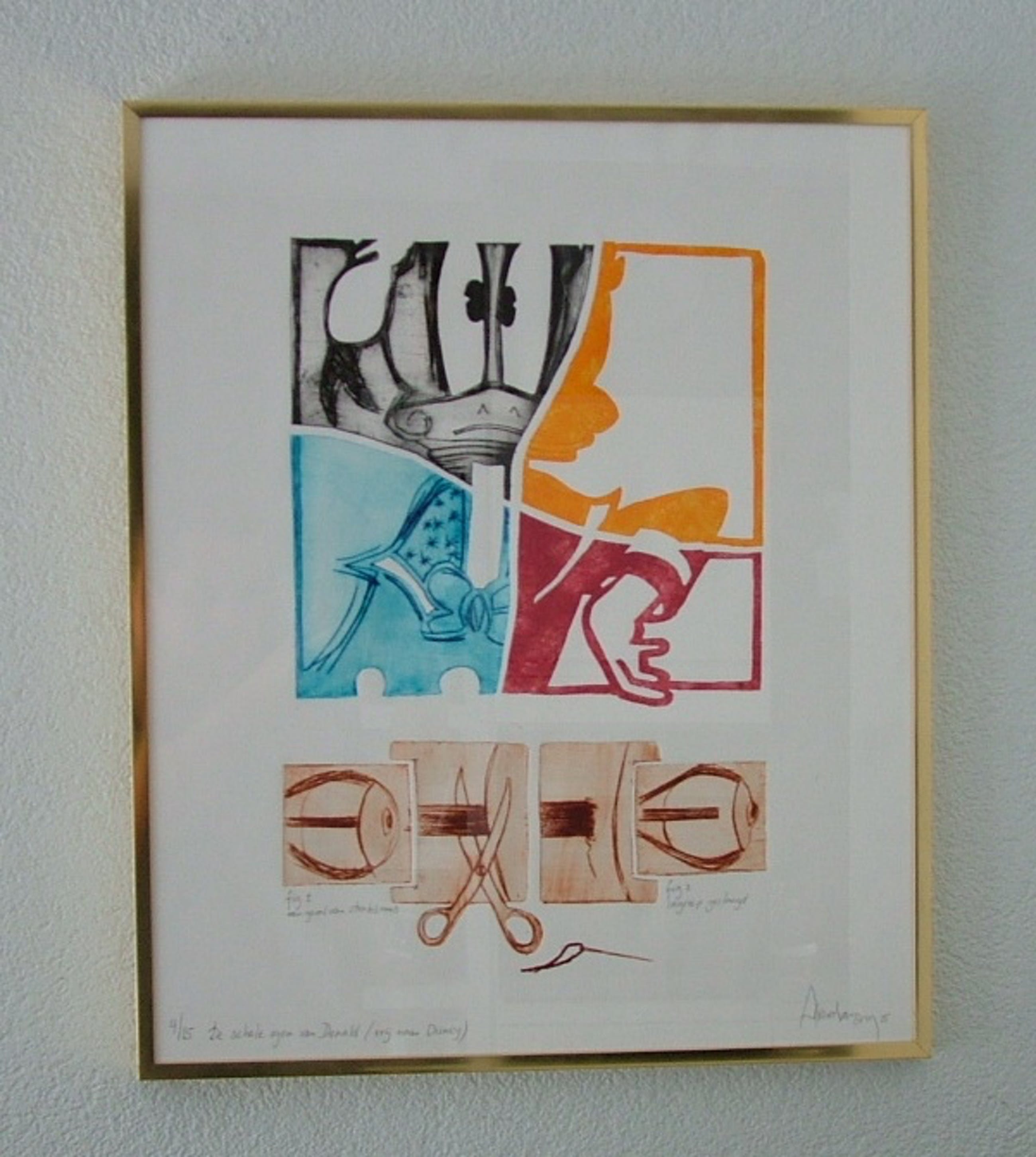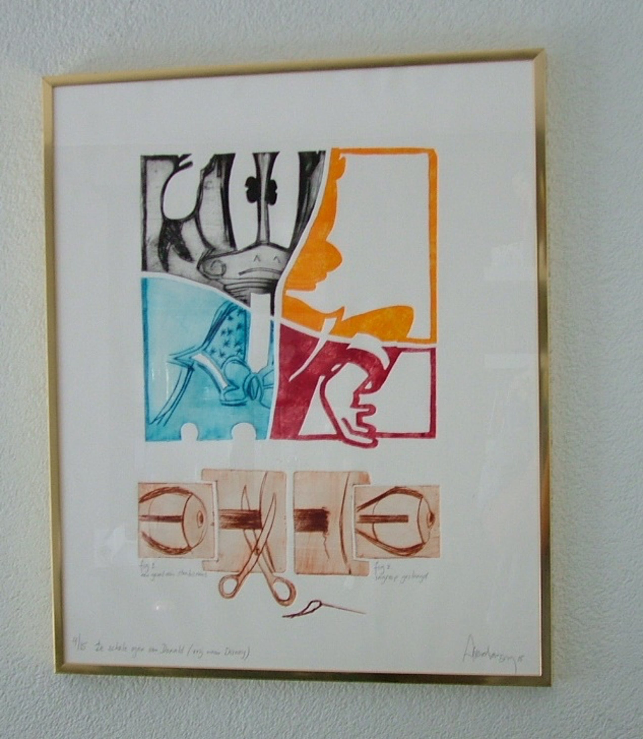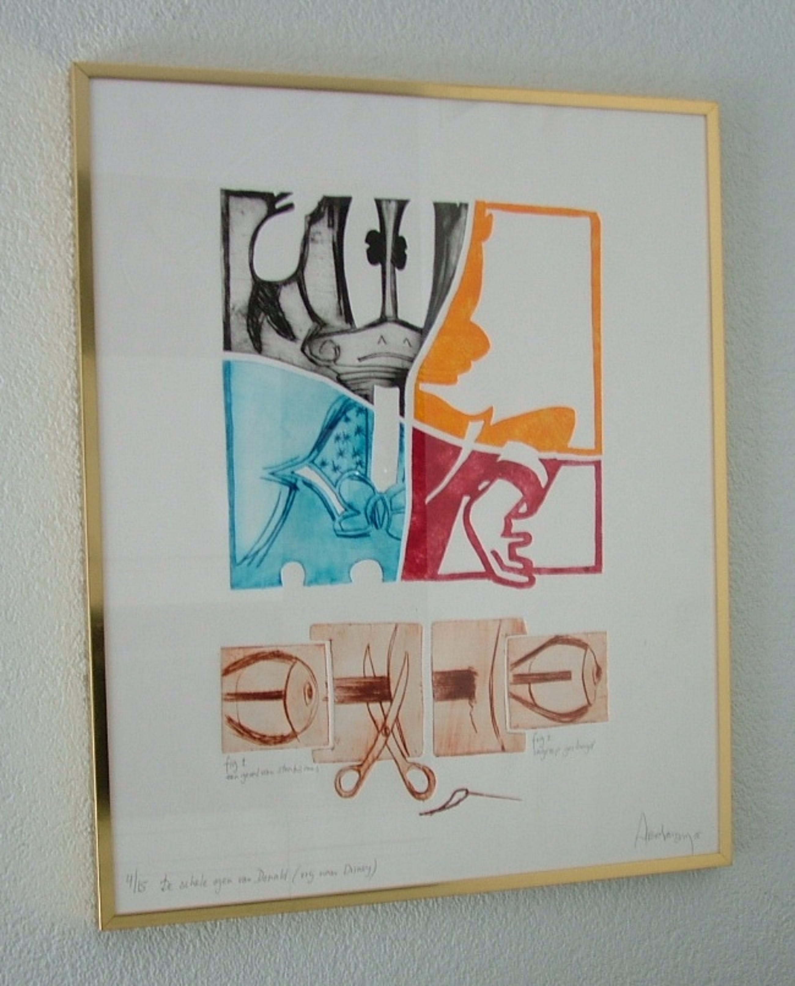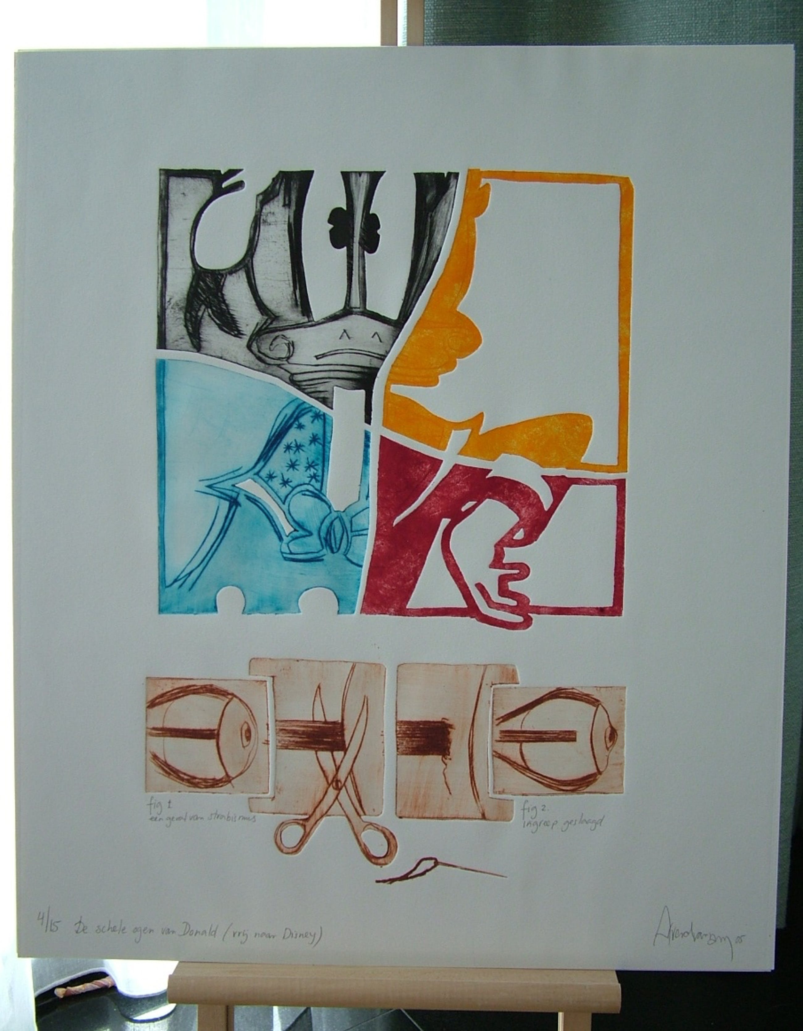 1 x Arend Gideon van Dam Kleuren ets op papier, getiteld "De schele ogen van Donald" 4/15
